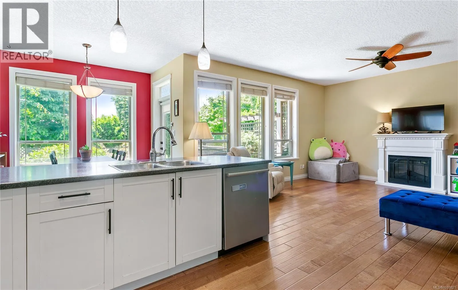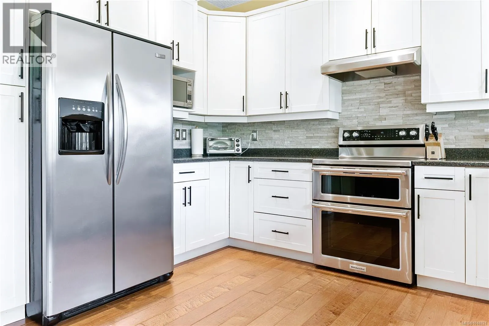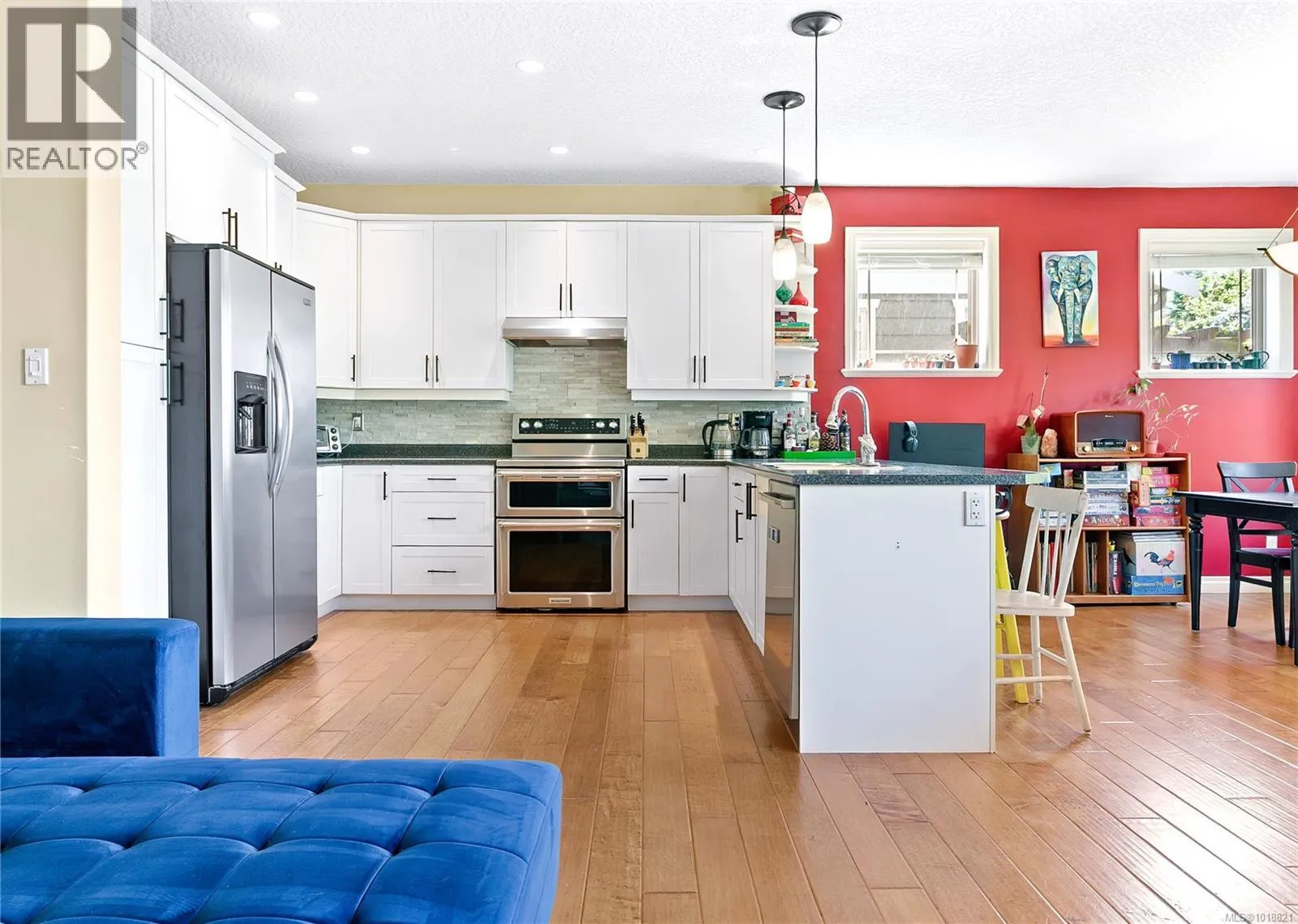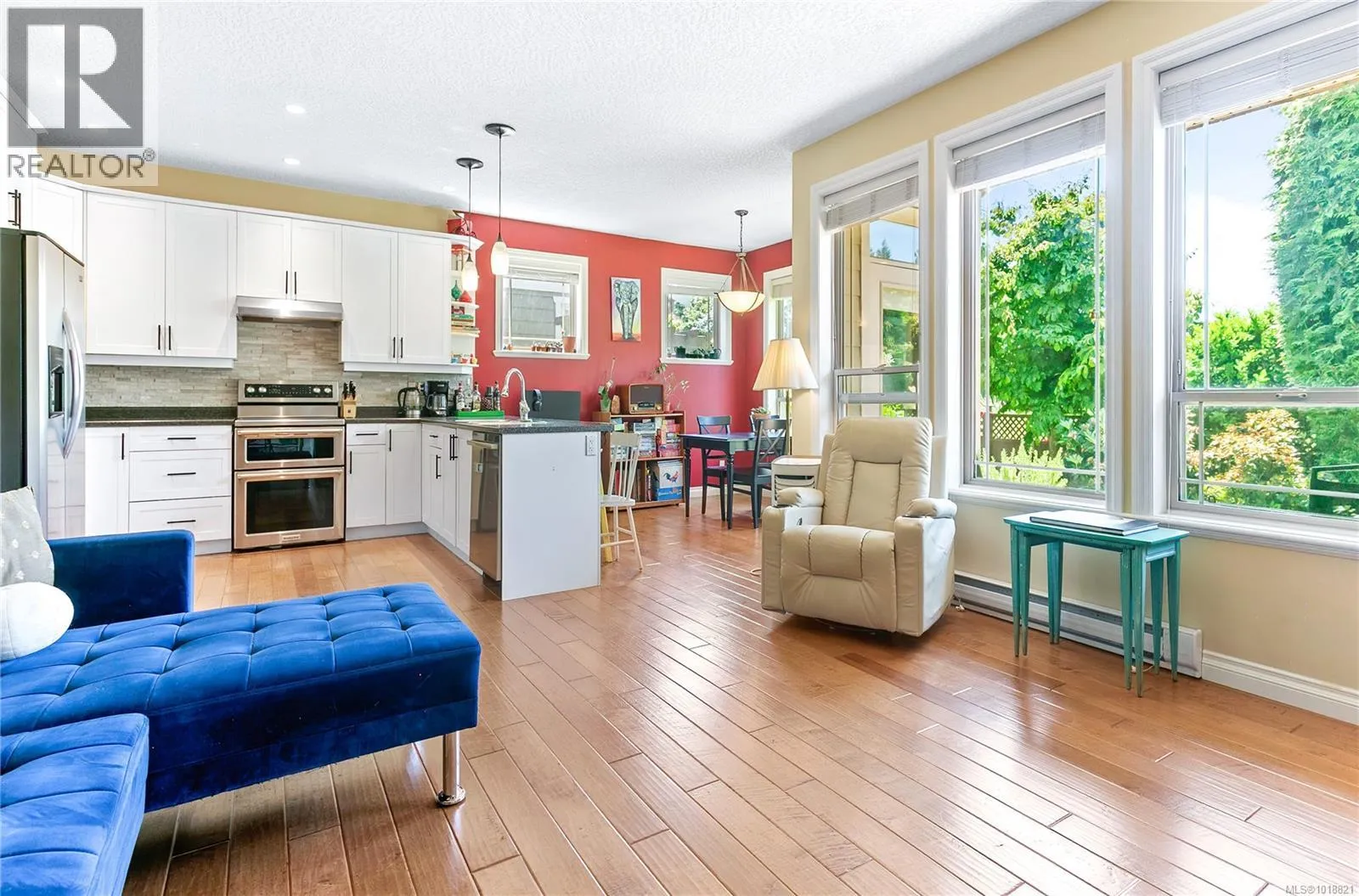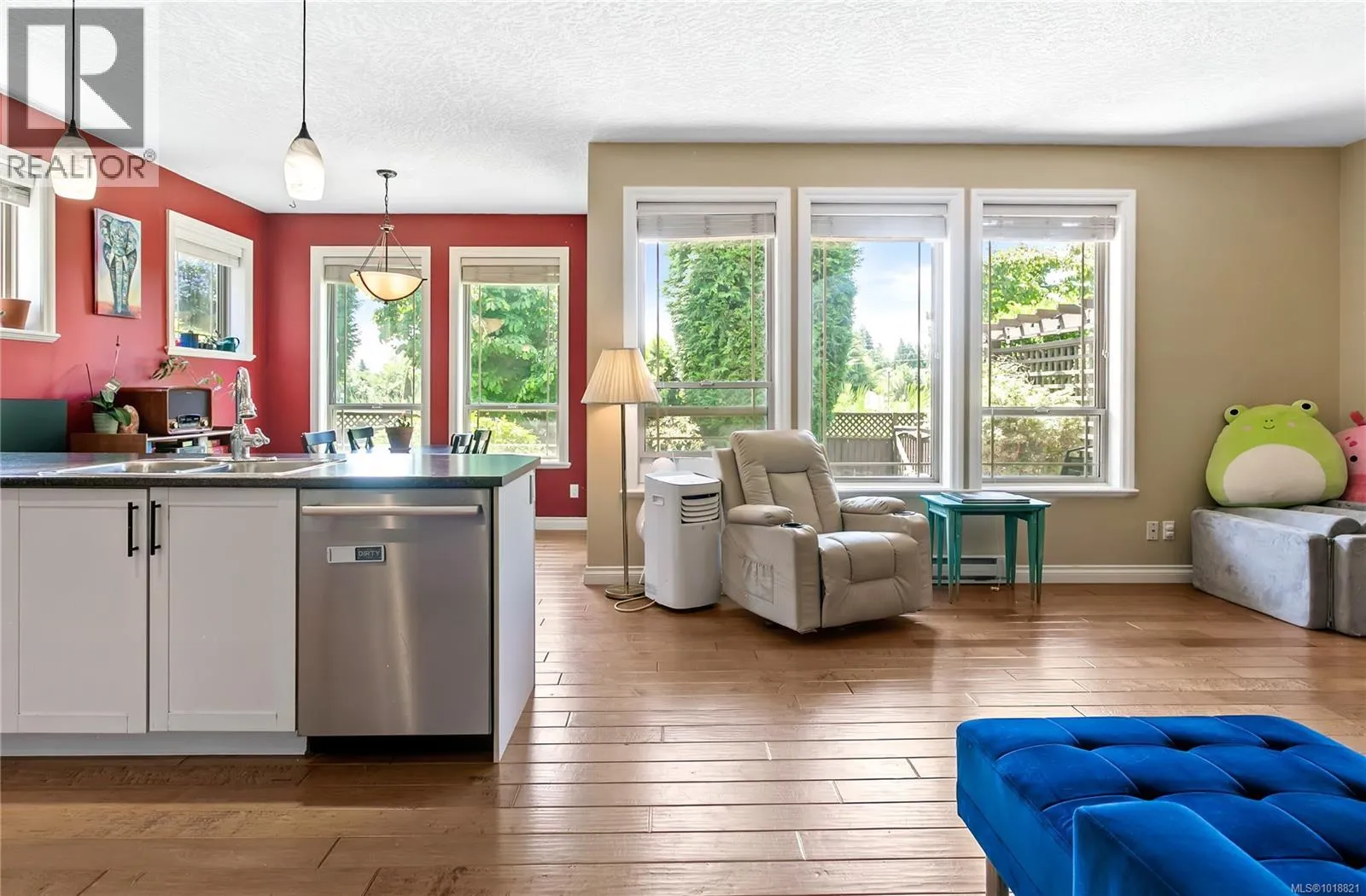 Welcome to 105â6591 Arranwood Drive, a bright and beautifully maintained 3-bedroom, 2.5-bath townhome in the heart of Sookeâs vibrant seaside community. This end-unit residence offers an open-concept main floor with engineered hardwood floors, perfect for both family living and entertaining. The modern kitchen features shaker-style cabinetry, stainless steel appliances, a breakfast bar, and a dedicated dining area. Enjoy abundant natural light and easy indoor-outdoor flow to the fully fenced, south-facing backyardâideal for kids, pets, and summer lounging. Upstairs, the spacious primary bedroom includes a walk-in closet and a luxurious ensuite with separate tub and shower. Two additional bedrooms, a full bath, and a laundry room complete the upper level. With a single garage for parking and storage, pet-friendly bylaws, and rentals allowed, this home is a fantastic opportunity for first-time buyers or investors alike. Located within walking distance to schools and shoppingâdonât miss your chance to make this home yours! (id:27476)
