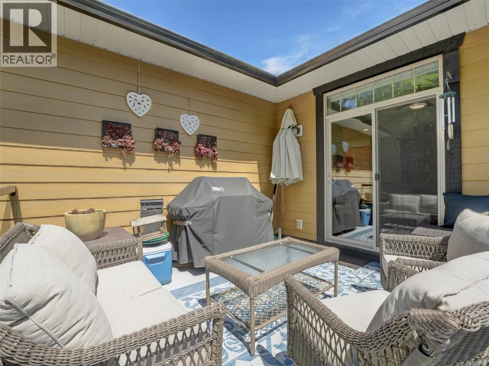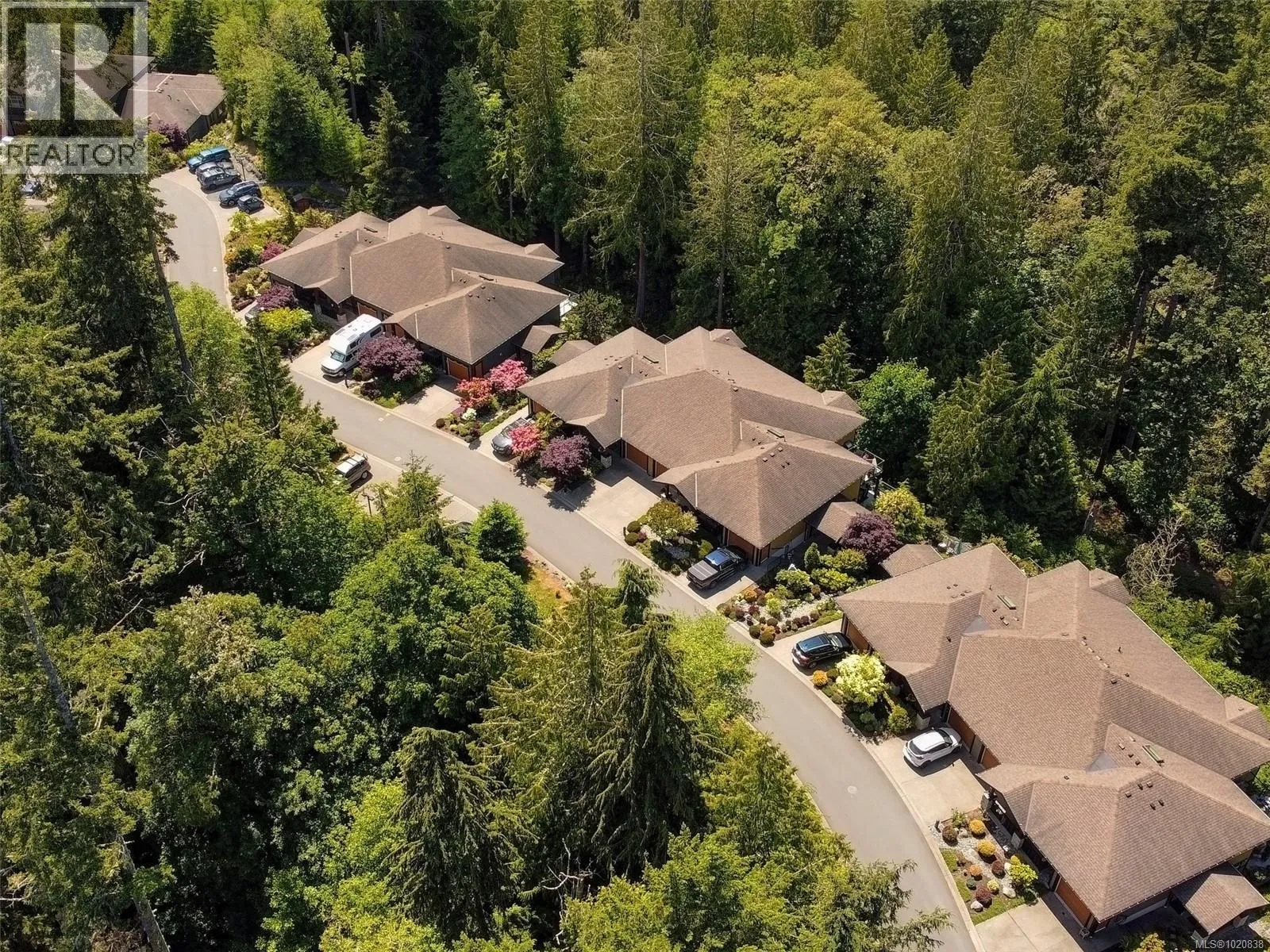 Welcome to The Pointe â a West Coast-inspired enclave of townhomes, privately tucked away amongst 7 tranquil acres along Demamiel Creek. Located within a meticulously landscaped complex, this beautifully appointed single-level home features 2 bedrooms plus den and 2 bathrooms spanning across 1500+ sq.ft. The home's open concept layout offers a seamless flow between the kitchen, dining space and living area with gas fireplace. The kitchen features stainless steel appliances, newer subway-tiled backsplash and quartz counter tops, perfect for entertaining guests. Ample windows throughout the homeâs living space frame a picturesque forest oasis while allowing ample natural light to flood the heart of the home. The spacious primary bedroom features a walk-through closet, leading to the ensuite bathroom. Finishing off the interior space is the second bedroom, the den, the main bathroom and laundry. Bask in the sun while enjoying the sights and sounds of the forest canopy from the home's private southwest balcony. With direct access from the dining area, the balcony is also equipped with a gas outlet for BBQs; making it a true extension of your home-living experience. All this, plus a single-car garage, additional driveway parking and ample visitor parking make this strata property a truly elevated offering in today's marketplace. (id:27476)