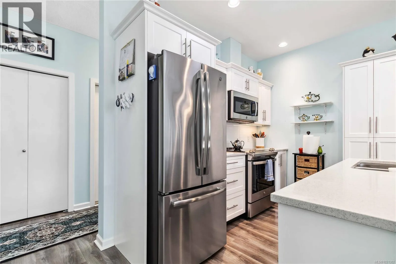 ONE LEVEL LIVING in Sooke's premier gated community, RiversEdge Village at Sunriver Estates. This beautifully updated & meticulously maintained 3bed, 2bath, 1,196sf executive rancher exudes street appeal & is located on a sunny, level, masterfully landscaped & fenced/gated lot just steps to parks & walking trails & only mins to Sooke Town Centre. Step thru the front door & be impressed w/the gleaming floors awash in light thru a profusion of picture windows & enhanced by airy 9' ceilings. Chef's kitchen w/quartz counters & island w/brfst bar, tile backsplash, dual sinks & stainless steel appliances + pantry. Inline dining area & large living rm w/cozy gas fireplace open thru sliders to private backyard featuring expansive concrete patio, garden beds, easy-care synthetic lawn & putting green. 4pc main bath&3 spacious beds incl primary w/walk-in closet& 3pc ensuite. 2 Sun Tunnel skylights, garage + crawlspace for storage! Common clubhouse w/guest room & common RV parking! (id:27476)