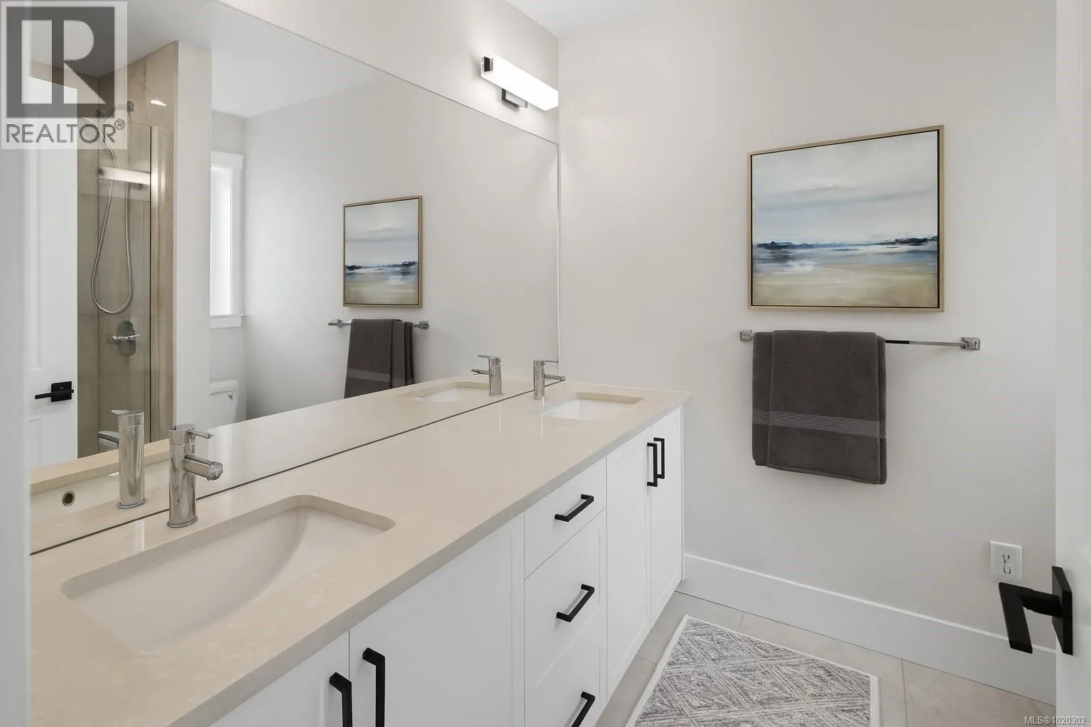 This beautifully designed 3-bedroom, 3-bathroom half duplex offers contemporary living in the heart of Sookeâs sought-after Woodland Creek neighbourhood. Perfectly positioned on a quiet, family-friendly cul-de-sac & steps from parks, trails, & schools, this home blends modern style with functionality. The bright, open-concept main level features a stunning kitchen with quartz countertops that carry through to the herringbone tile backsplash, complemented by under-cabinet lighting & high-end appliance package. The inviting living room showcases a feature fireplace with custom millwork & tile surround. Upstairs, the light-filled second level offers 3 well-appointed bedrooms, including a beautiful Primary with a spa-inspired ensuite featuring heated tile floors, a walk-in shower with floor-to-ceiling tile, & quartz countertops. Stylish, comfortable, & ideally locatedâThe Sitka is a standout and affordable opportunity to reside in one of Sookeâs most popular communities.OPEN HOUSE Sun 1-3pm (id:27476)
