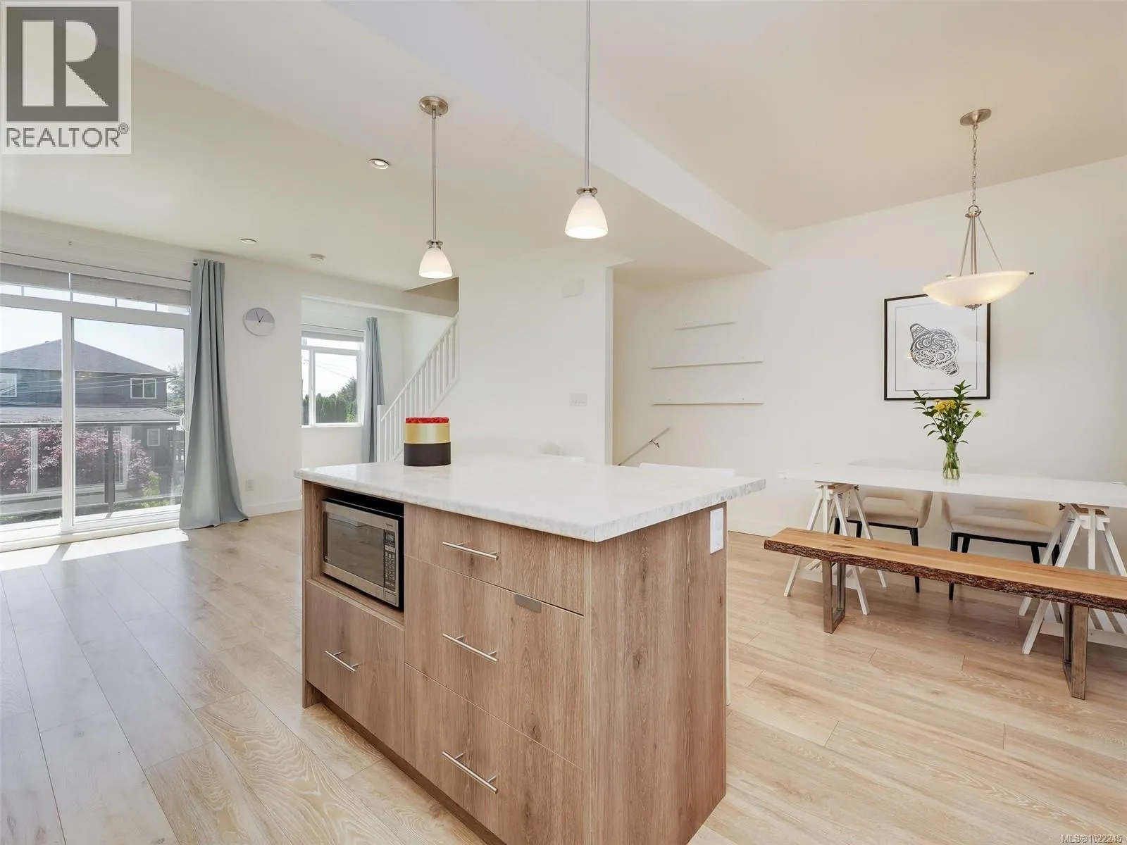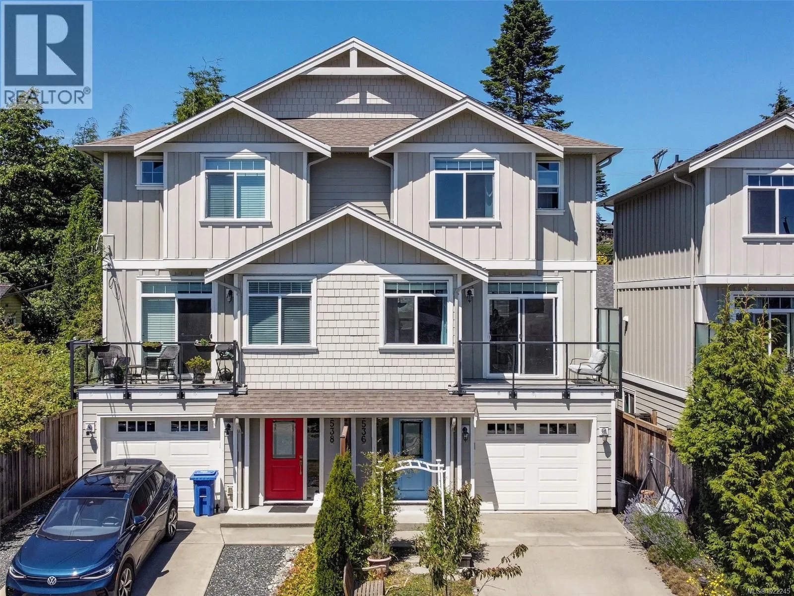 Ocean & East Sooke VIEWS! Spacious, sparkling & affordable, 3 bed, 3 bath, 1590sf strata duplex conveniently located just a short stroll to waterfront, schools, bus & only mins to Sooke Centre. Bright, open floor plan awash in light thru picture windows & enhanced by airy 9ft ceilings. Kitchen w/soft close cabinets, island w/breakfast bar, dual SS sinks, tile backsplash & SS appliances. Large inline dining rm for family dinners. Living rm w/cozy electric fireplace opens thru sliders to oceanview deck - perfect for BBQs or to just relax & enjoy the uplifting views over the Sooke Harbour. Up: Oceanview master bedroom & 3pc ensuite bathroom, 2nd bedroom & 4pc main bathroom. Down: 3rd bedroom, 3pc bathroom, laundry & garage w/laminate flooring. You will love the Hot Tub in the fenced/gated back yard. Single garage & driveway parking- room for your RV or Boat. Strata Fee is the Annual Shared Building Insurance. A great value in today's real estate market! (id:27476)