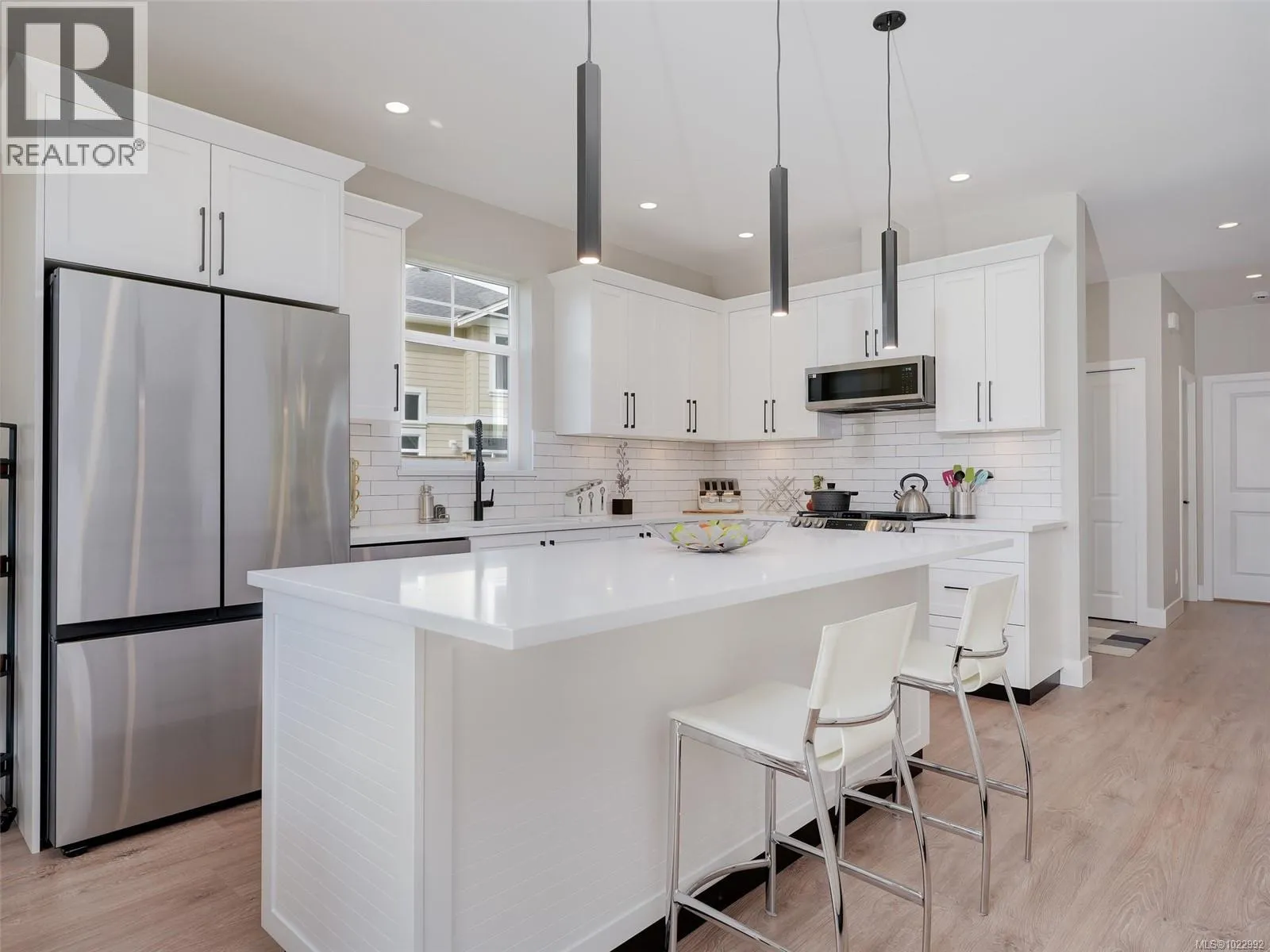 Why opt for a used property when you can purchase a new one? You'll not only save the Property Purchase Tax but you'll also enjoy the benefits of modern energy efficiency. And First Time Buyers are exempt of the GST. This two-level family home has over 2200 sqft of functionable living space with an open concept design offering a convenient office/den and laundry on the main. The spacious kitchen features custom shaker cabinets, quartz countertops, and a family sized island. The three bedrooms and flex/family room are all on the 2nd floor with the primary bedroom boasting a walk-in closet and an ensuite featuring heated tile floors, his and her sinks, quartz counters, separate shower, and soaker tub. Other features include a generous patio off the main living area and 2 balconies on the 2nd level for quite enjoyment. Plenty of parking for family, friends and guests or room for a Carriage house. Amenities such as parks, trails, sports fields, and schools all within walking distance. (id:27476)