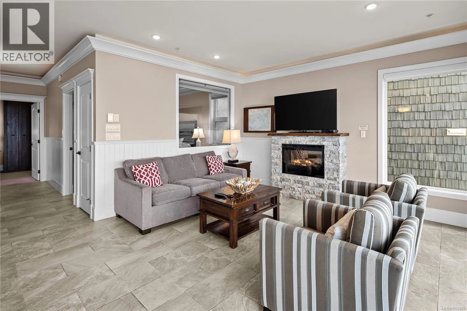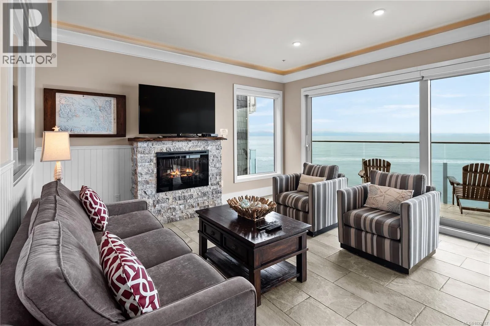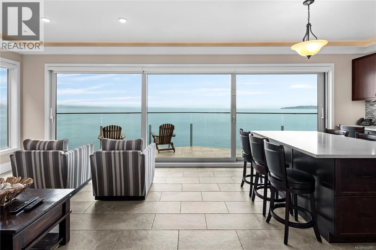 Discover a rare opportunity to own a fully furnished, oceanfront home with exceptional short-term rental income potential. Located in the sought-after Sookepoint development on Vancouver Island, this two-bedroom, two-bath residence offers refined coastal living with panoramic views across the Salish Sea to the Olympic Mountains. Ideal as a vacation rental or a full-time home, the open-concept layout features floor-to-ceiling glass doors opening to a signature prow-shaped deckâperfect for enjoying the ocean air. The kitchen is beautifully appointed with granite countertops, stainless steel appliances, and custom cabinetry. A luxurious primary suite boasts a spa-like ensuite with heated floors, a soaker tub, and walk-in shower. The second bedroom and bath provide comfort and flexibility for guests. Enjoy lock-and-leave convenience, professional strata management, and strong revenue potential from short-term rentals in a world-class oceanfront setting. A turn-key investment in lifestyle and value. (id:27476)