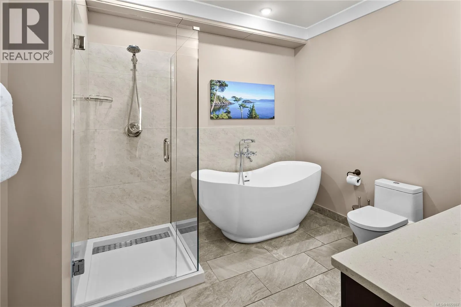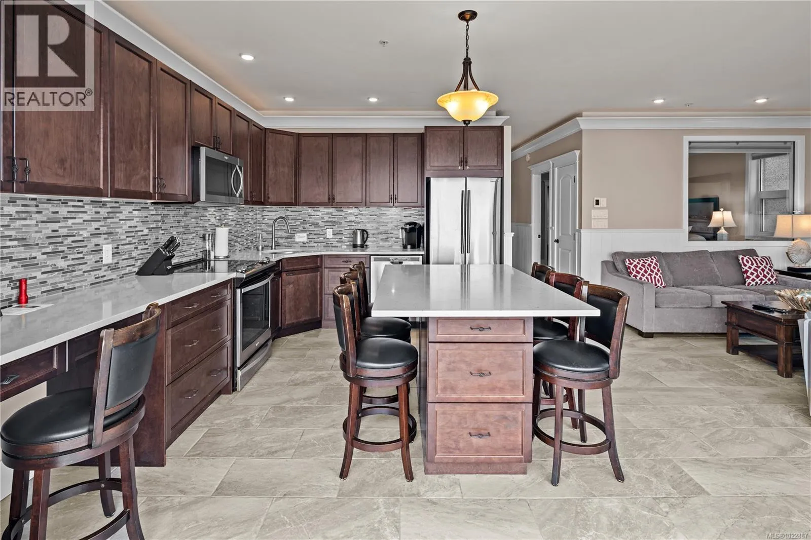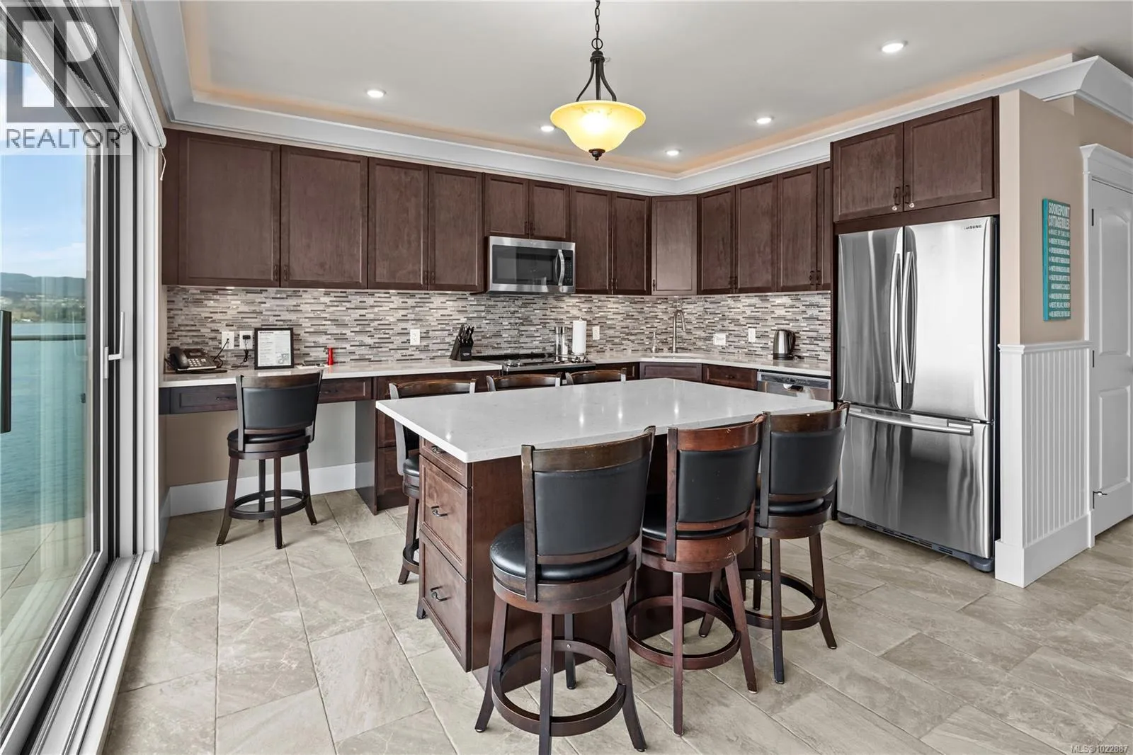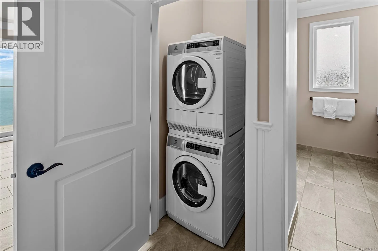 Discover a rare opportunity to own a fully furnished, oceanfront home with exceptional short-term rental income potential. Located in the sought-after Sookepoint development on Vancouver Island, this two-bedroom, two-bath residence offers refined coastal living with panoramic views across the Salish Sea to the Olympic Mountains. Ideal as a vacation rental or a full-time home, the open-concept layout features floor-to-ceiling glass doors opening to a signature prow-shaped deckâperfect for enjoying the ocean air. The kitchen is beautifully appointed with granite countertops, stainless steel appliances, and custom cabinetry. A luxurious primary suite boasts a spa-like ensuite with heated floors, a soaker tub, and walk-in shower. The second bedroom and bath provide comfort and flexibility for guests. Enjoy lock-and-leave convenience, professional strata management, and strong revenue potential from short-term rentals in a world-class oceanfront setting. A turn-key investment in lifestyle and value. (id:27476)
