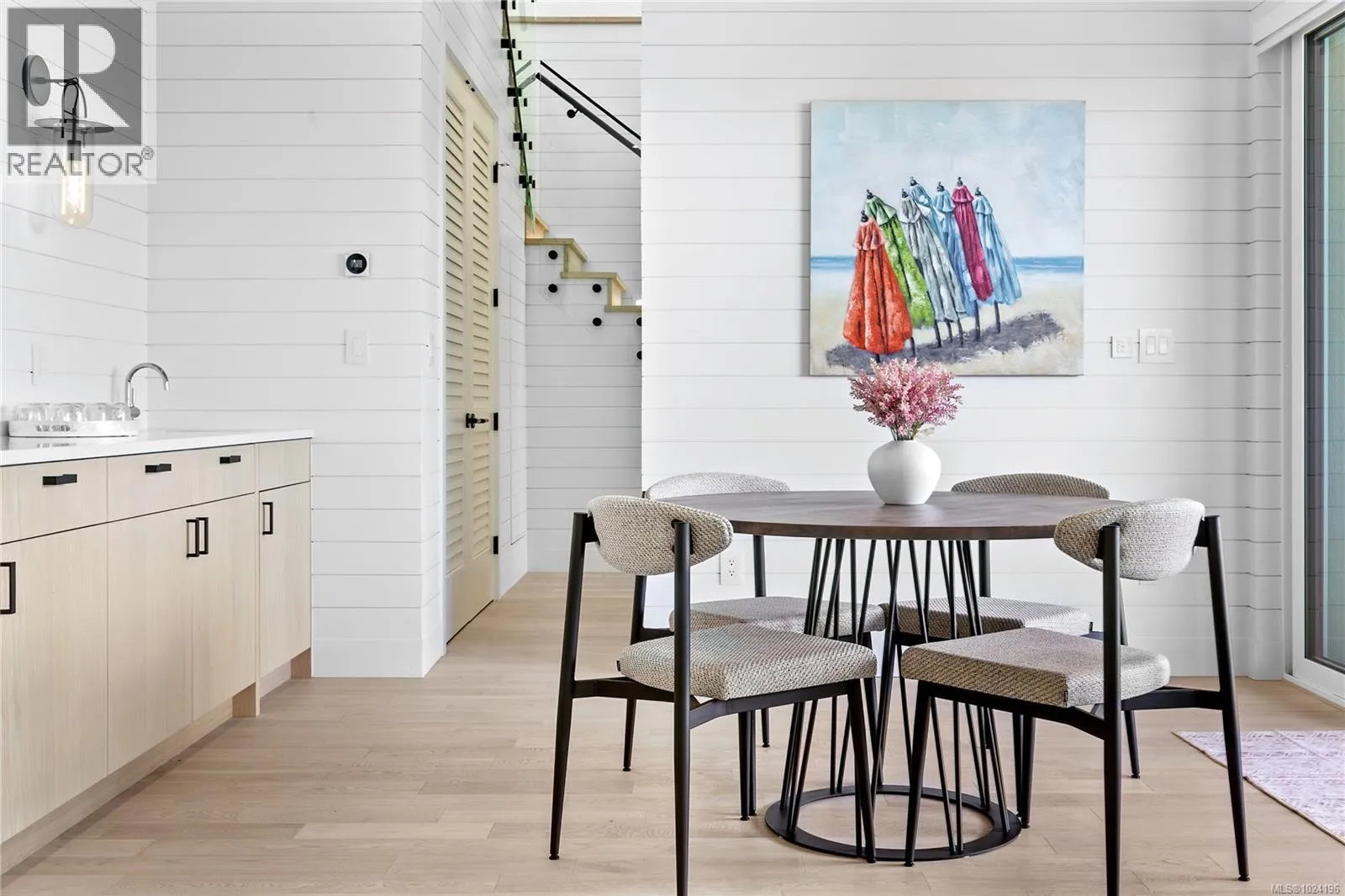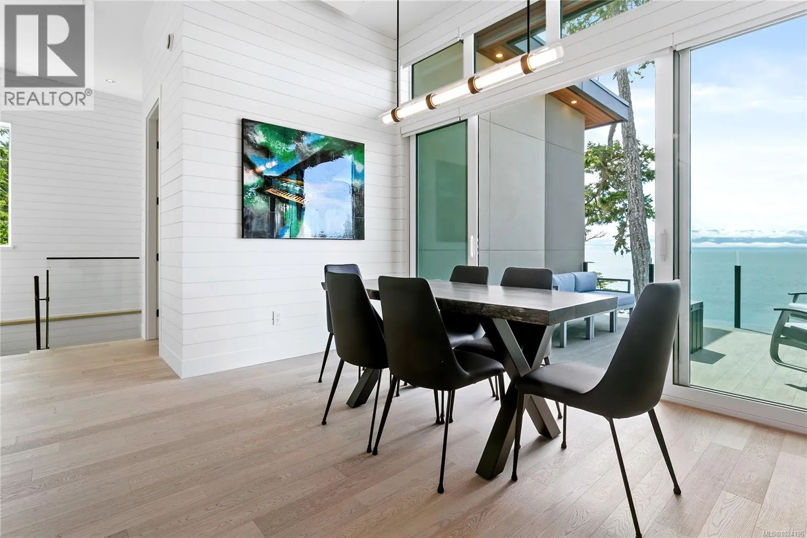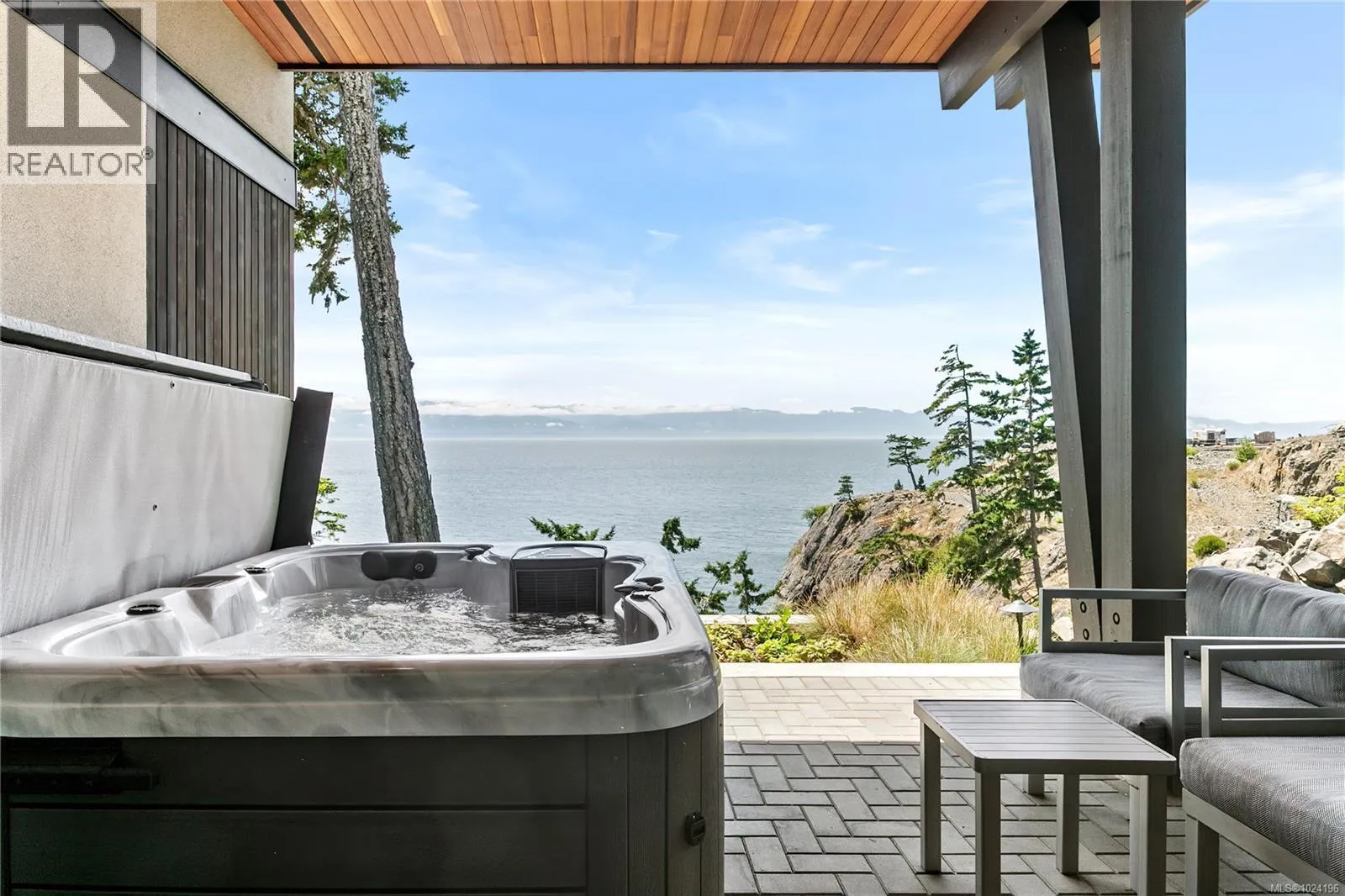 Experience unmatched coastal living in this west coast contemporary waterfront home along the stunning Juan de Fuca Strait. Completed in 2024, this 2,866 sq. ft. architectural residence features three spacious bedrooms, four bathrooms, and a versatile den perfect for a home office. Offered fully furnished (optional), itâs one of only seven custom oceanfront homes in Sookeâs first-of-its-kind luxury development. Interiors by Jenny Martin Design feature shiplap accents, panel-ready appliances, and refined millwork for ample storage. Enjoy an open-concept layout with ocean views, a designer kitchen, and fireplaces that add warmth and ambiance throughout. Dual laundry areas offer added convenience, while the advanced heating and cooling system provides individual climate zones. Whether as a full-time residence or a turn-key retreat, every detail is thoughtfully curated for coastal elegance and modern comfort. (id:27476)