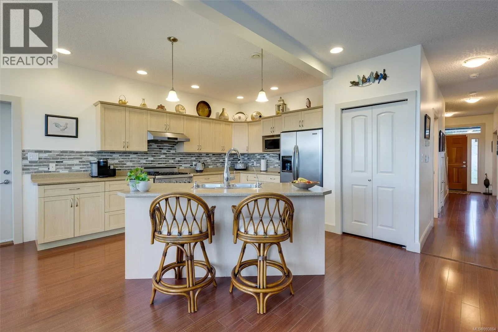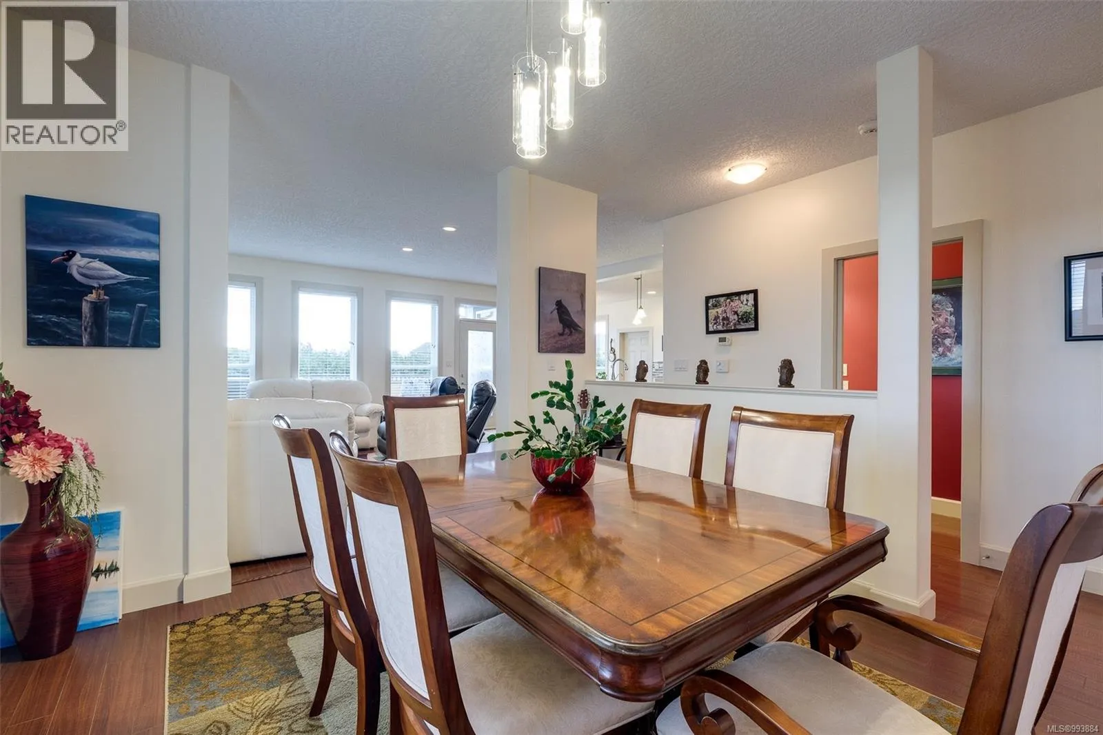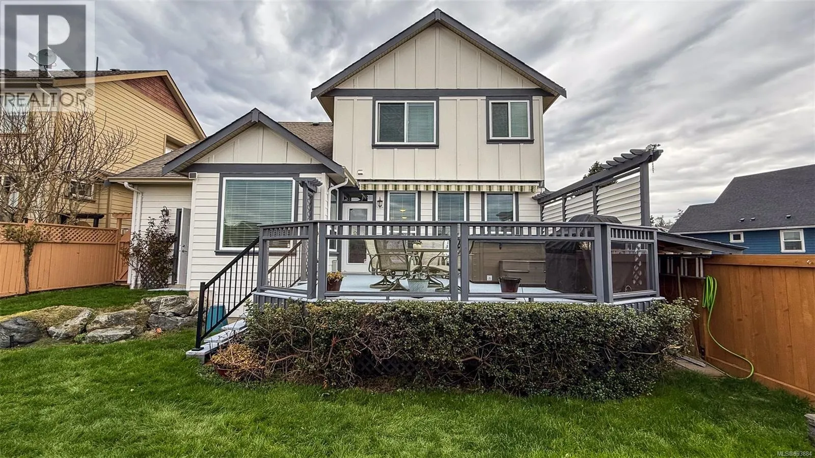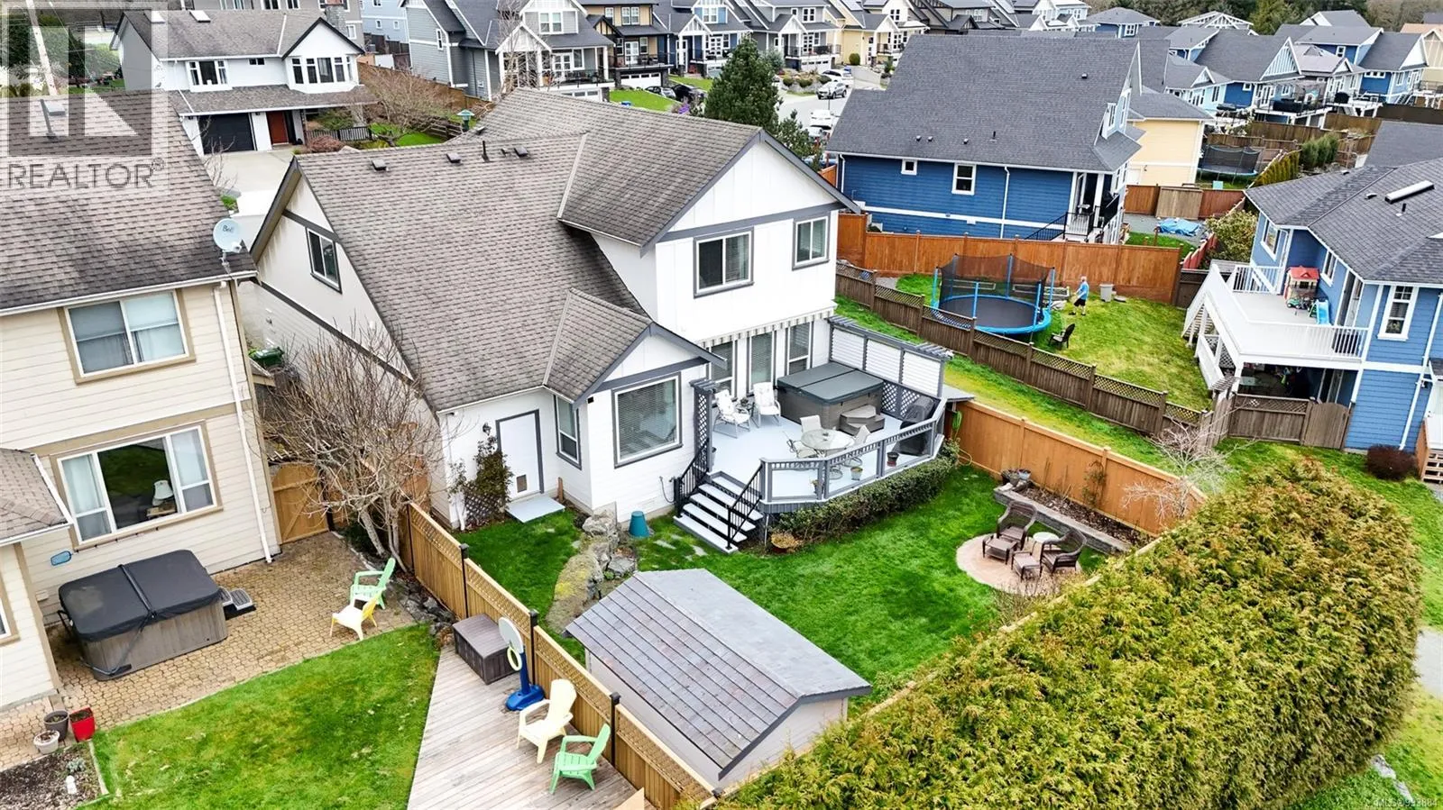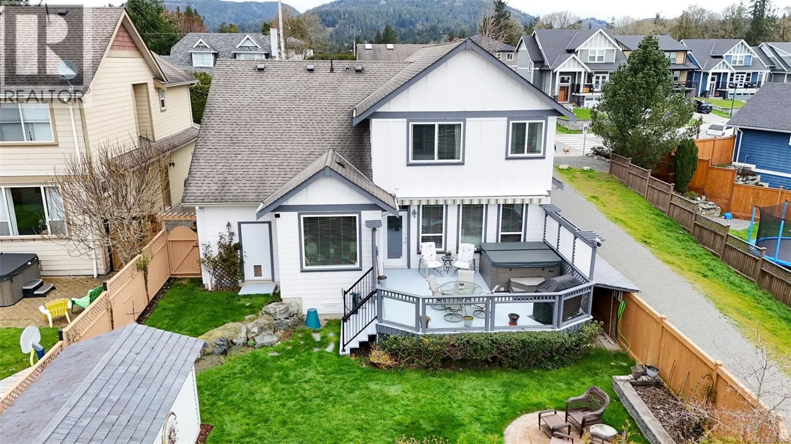 Welcome to this meticulously maintained family home in the heart of Sooke, offering a perfect blend of comfort, space, and functionality. This layout provides flexibility for growing families or those working from home with its ample bedrooms and family spaces. The bright, open-concept main level features 9-foot ceilings, a spacious kitchen with a large island, gas range, and ample cabinetry, flowing seamlessly into the living room with a gas fireplace and the dining area â ideal for entertaining. Step outside to enjoy a fully fenced backyard with a large awninged deck, grass yard, hot tub, and landscaped garden â perfect for summer gatherings or peaceful mornings. Upstairs, youâll find three well-sized bedrooms including a primary suite with a walk-in closet and 4-piece ensuite, plus a laundry room and bonus flex spaces for added versatility. Additional highlights include a double-car garage with workshop space, a large mudroom, and a welcoming front porch. Close to parks and schools. (id:27476)