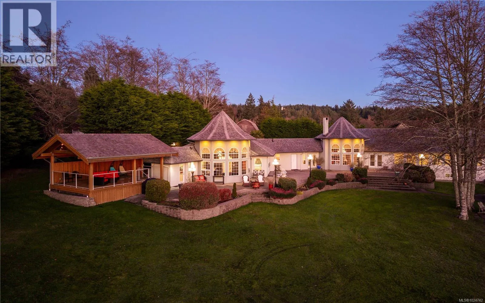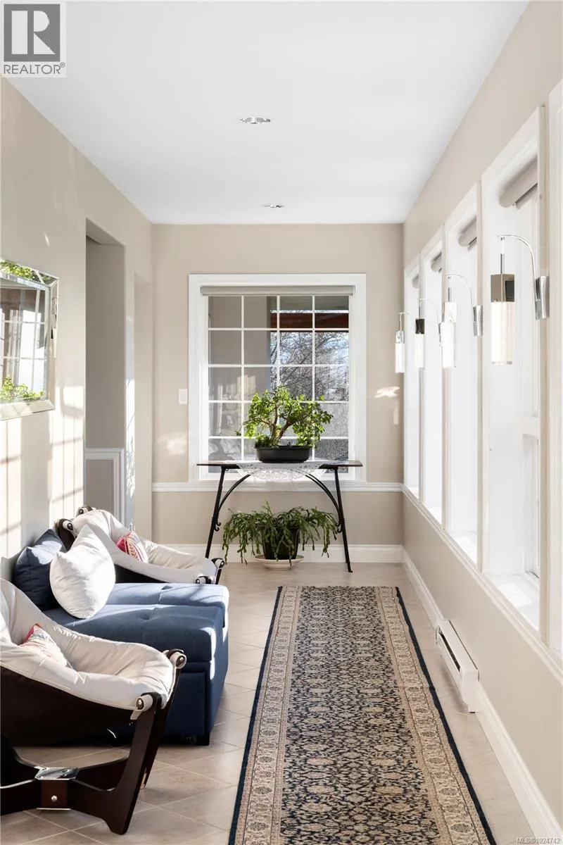 Situated on just over 6 park-like acres overlooking the coastline and Olympic Mountains, this extraordinary Otter Point estate offers a rare balance of architectural distinction, privacy, and connection to the natural landscape. Spanning over 4,700 sqft, the home showcases soaring ceilings, two dramatic turret-style spaces (17ft ceiling height), and expansive windows framing ocean and mountain scenery throughout. The main living area is anchored by an inviting kitchen and dining space warmed by a statement wood-burning fireplace, creating a natural hub for everyday living and entertaining. The primary suite is a private retreat with vaulted ceilings, solid oak flooring, fireplace, wraparound covered deck, custom walk-in closet, and spa-inspired ensuite. Two additional flexible living areas allow the home to be enjoyed in its entirety or configured for multi-generational living, live-in support, or income opportunities, currently operated as two successful vacation rentals with private entrances and outdoor spaces. Outside, expansive patios, a custom pergola, curated gardens, open lawns, powered utility posts, ample parking, and three RV hookups create exceptional space for gatherings, events, or simply enjoying the serene setting. Accessibility features on the main level offer further customization potential. Located just minutes from Sooke centre (10 mins), beaches, and the Pacific Marine Route, and within easy reach of Langford (25 mins) and Victoria (45 mins), this is a rare opportunity to experience refined coastal living on beautiful, usable acreage with endless possibilities. Zoning allows a 2nd dwelling to be built (buyer to verify all bylaws and details) (id:27476)