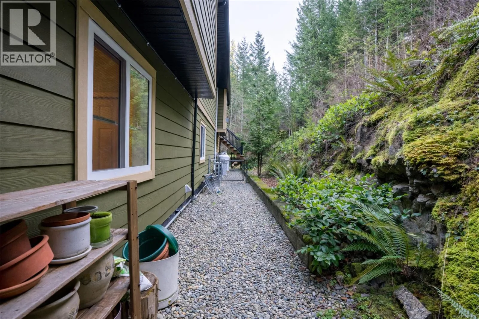 Set at the end of a winding, landscaped drive and surrounded by mature forest, this beautifully maintained executive home offers exceptional privacy, space, and versatility in a peaceful, nature-filled setting. Built in 2005 and thoughtfully cared for by its original owner, the home blends quality construction with a functional layout ideal for families, multi-generational living, or those seeking future suite potential. The main level features an inviting open-concept design with rich wood flooring, vaulted ceilings in the living area, and large windows that frame treed views and fill the home with natural light. The kitchen is both stylish and practical, offering shaker-style cabinetry, stainless steel appliances, a central island, and excellent storage, flowing seamlessly into the dining and living spaces A gas fireplace anchors the formal dining area, creating a warm and welcoming atmosphere for entertaining. Step outside to the spacious deck, partially covered for year-round use, overlooking terraced gardens and tranquil forest surroundings, an ideal space to relax or host gatherings in total privacy. The primary suite is a comfortable retreat with a walk-in closet and a spa-inspired ensuite featuring a deep soaker tub. The lower level offers outstanding flexibility with a large recreation room, additional family room, and ample space easily suited for extended family or future income potential. Additional highlights include a double garage with excellent storage, heat pump, new hot water tank, and generator wiring for added peace of mind. Located close to parks, hiking, biking, and kayaking, this home offers the perfect balance of natural surroundings and convenience, all without Sooke traffic. A rare opportunity to enjoy space, privacy, and lifestyle in a truly serene setting. (id:27476)
