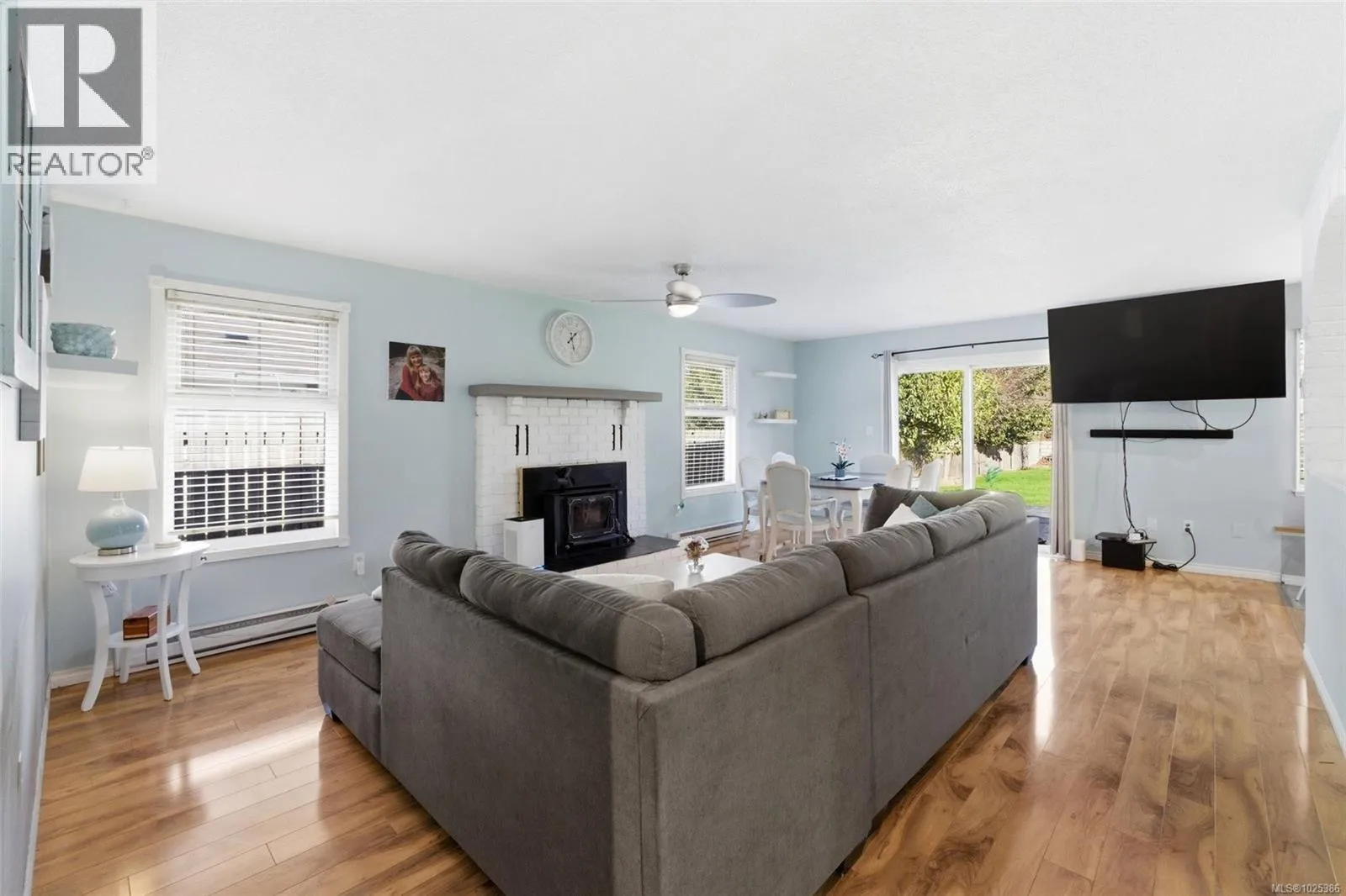 Move-in ready 3 bedroom, 2 bathroom rancher located at the end of a quiet no-through street in a prime Sooke location. Set on a large, flat and private lot, this property offers exceptional outdoor space with a stamped concrete patio perfect for entertaining, kids and pets, plus a mature apple tree. The driveway includes RV parking, providing excellent flexibility. Inside, this charming home features brick archways and a cozy fireplace that add warmth and character. The primary bedroom offers a large closet and private ensuite, while two additional bedrooms are generously sized. Updates include new flooring, vinyl windows, appliances, roof, hot water tank and bathroom improvements, offering peace of mind. Walking distance to schools, amenities and the beautiful ocean. Ideal for first-time buyers or downsizers. Don't miss this opportunity. (id:27476)