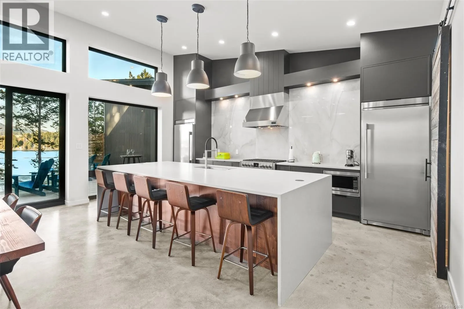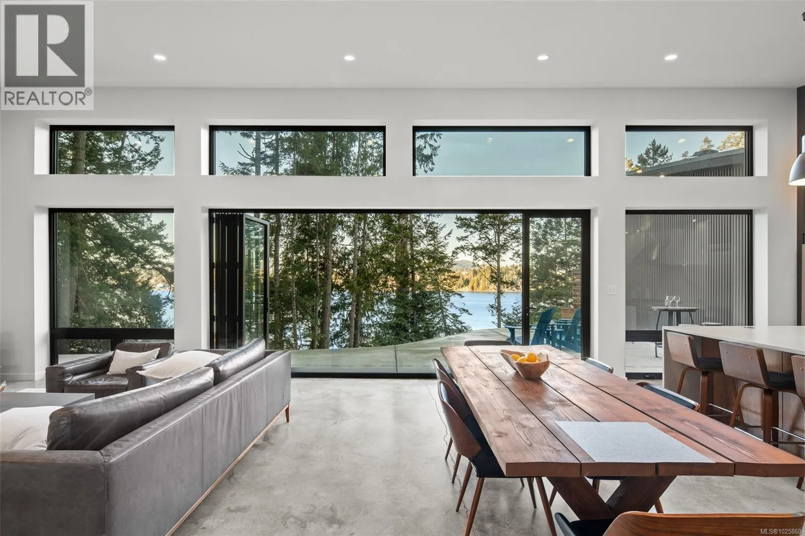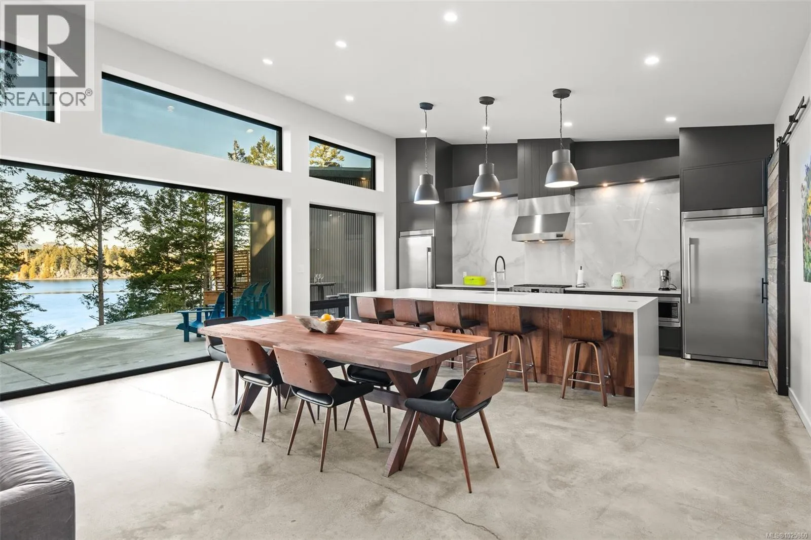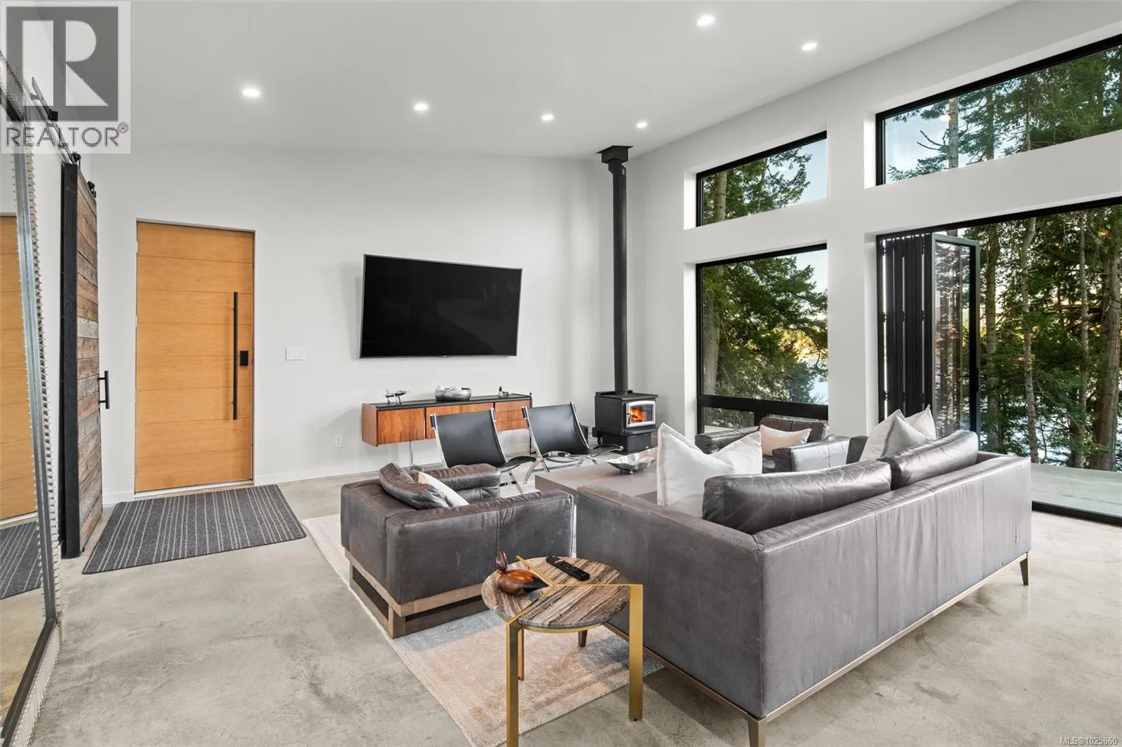 Ready to downsize but not sure about a condoâ¦here is the perfect alternativeâ¦ideal for the lock & go lifestyle...the great room w/its wood burning stove in this contemporary OCEANFRONT duplex is the size of most 2 bed condos. The world's stresses & noises dissipate as you drive up the 1000' long driveway to 200+ lineal ft of ocean frontage on Sooke harbour. Being right on the deep water channel means whales & sailboats pass in front of your 600sf patio - prewired for hot tub. 14' ceilingsâ¦32' glass wallâ¦.all concrete ICF construction w/a 12'' concrete wall clad in 12'' of foam between the 2 unitsâ¦.no noise transfer⦠luxury appls⦠massive islandâ¦. low utilities⦠home insurance for less than $1000. Corrugated metal & concrete panel exteriorâ¦no maintenanceâ¦polished concrete floors w/in-floor heat. No strata fees & existing zoning allows a bunkhouse or AirBnb - potentially generating $40-50k/yr. Note: meander up the driveway & watch for wild peacocks, deer & rabbitsâ¦your freeloading tenants (id:27476)