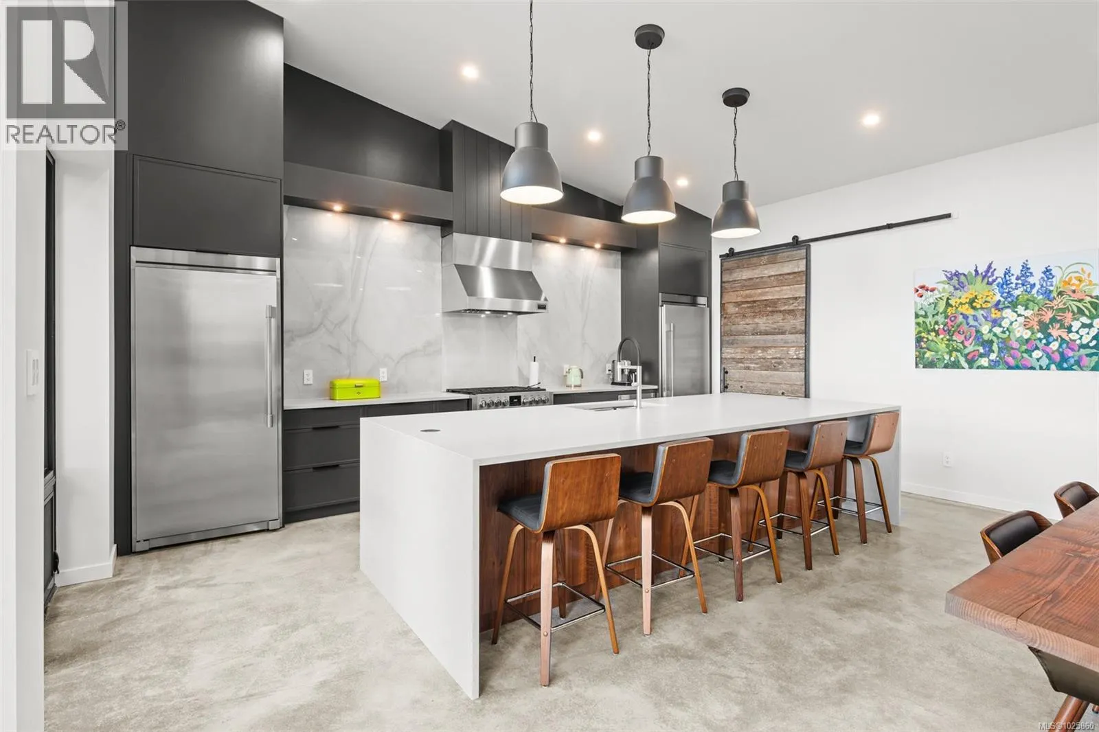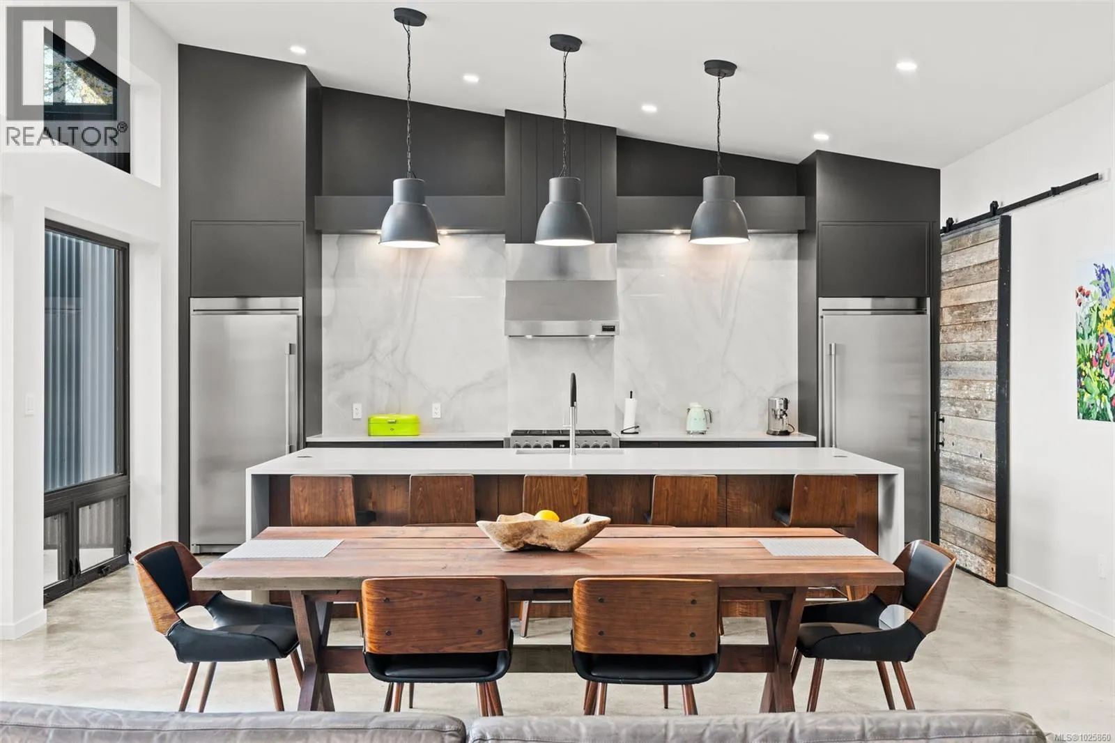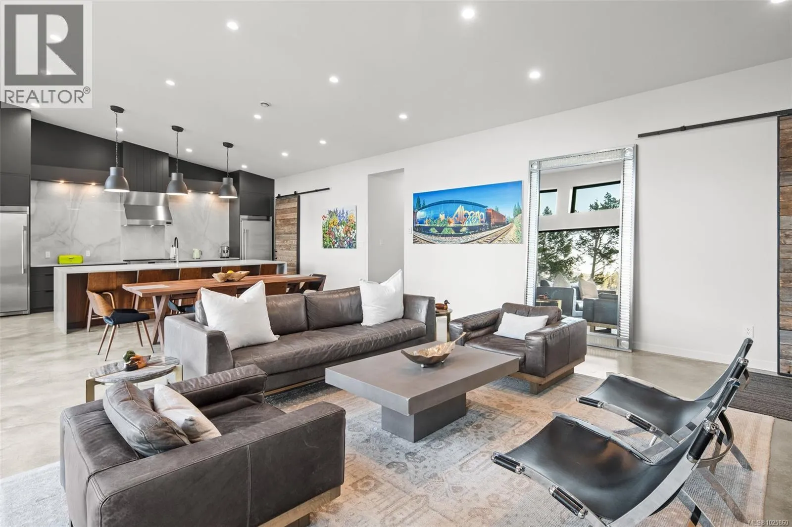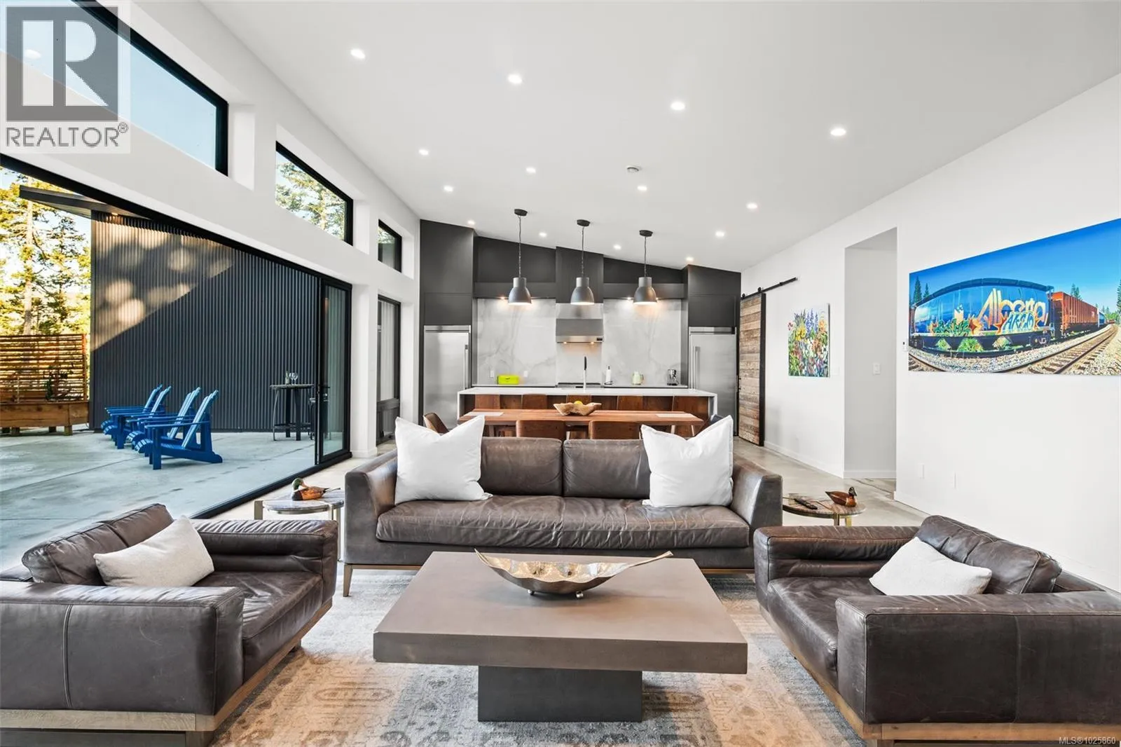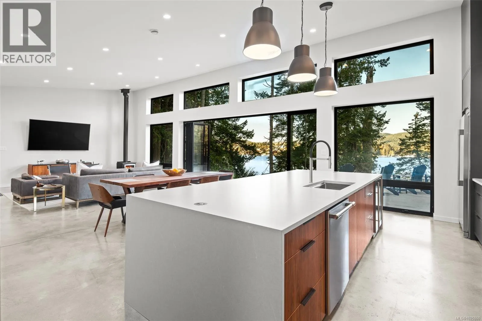 Ready to downsize but not sure about a condoâ¦here is the perfect alternativeâ¦ideal for the lock & go lifestyle...the great room w/its wood burning stove in this contemporary OCEANFRONT duplex is the size of most 2 bed condos. The world's stresses & noises dissipate as you drive up the 1000' long driveway to 200+ lineal ft of ocean frontage on Sooke harbour. Being right on the deep water channel means whales & sailboats pass in front of your 600sf patio - prewired for hot tub. 14' ceilingsâ¦32' glass wallâ¦.all concrete ICF construction w/a 12'' concrete wall clad in 12'' of foam between the 2 unitsâ¦.no noise transfer⦠luxury appls⦠massive islandâ¦. low utilities⦠home insurance for less than $1000. Corrugated metal & concrete panel exteriorâ¦no maintenanceâ¦polished concrete floors w/in-floor heat. No strata fees & existing zoning allows a bunkhouse or AirBnb - potentially generating $40-50k/yr. Note: meander up the driveway & watch for wild peacocks, deer & rabbitsâ¦your freeloading tenants (id:27476)