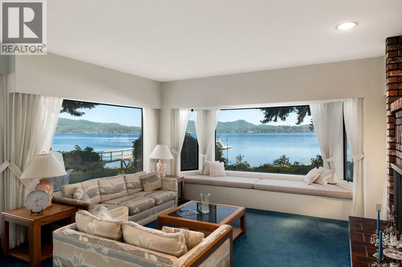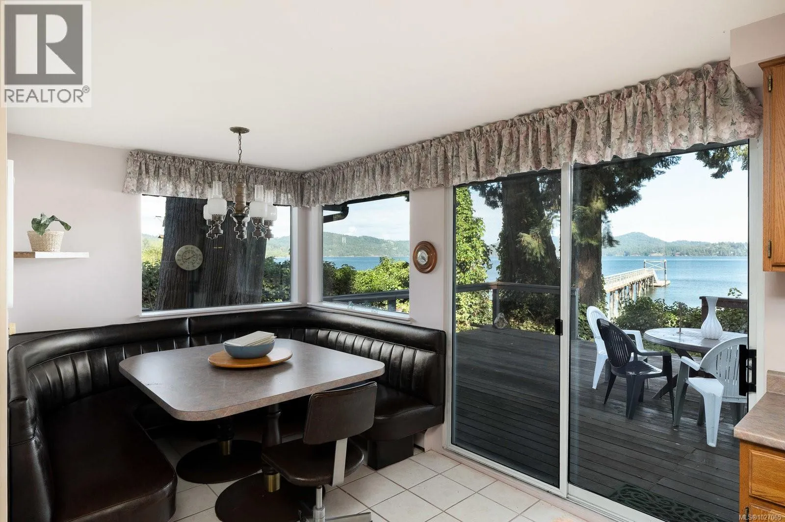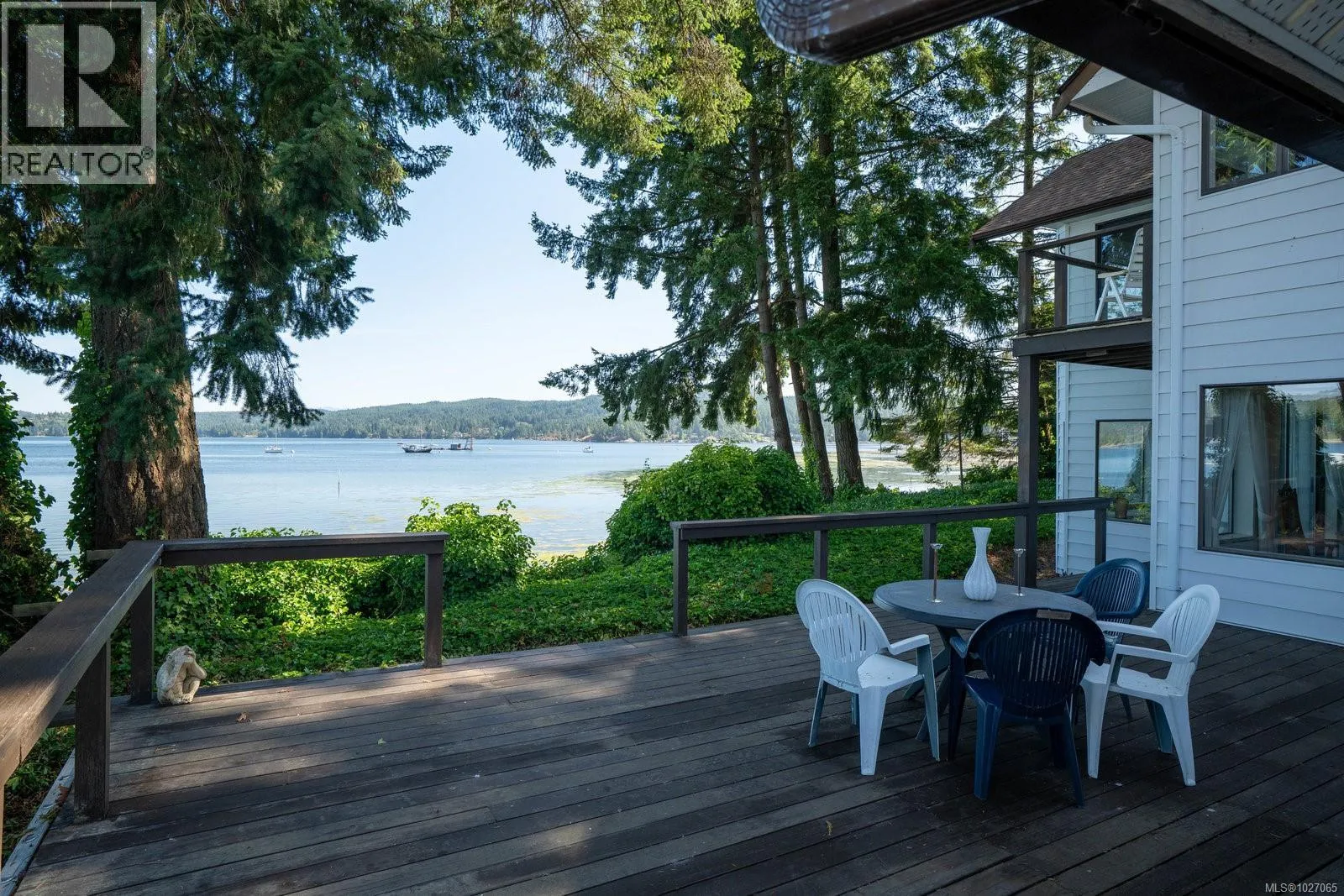 Secluded Waterfront Retreat with Private Beach Access, Dock & Cottage! Tucked away in the trees on a stunning 0.86 acre waterfront lot, this private coastal retreat offers an unparalleled connection to nature with breathtaking ocean views and direct private beach access. From the moment you arrive, the sense of seclusion is undeniable...with winding paths, a canopy of mature trees, and expansive outdoor spaces that feel like your own private sanctuary. Inside, the home is a light-filled haven designed for comfort and connection. Oversized windows flood the two-storey layout with natural light, framing views of the water from nearly every angle. The sunken living room with a cozy wood-burning fireplace flows seamlessly into the formal dining room, open concept kitchen and charming built-in breakfast nook. Perfect for hosting or quiet mornings at home. Bay window benches offer the perfect spot for curling up with a book while taking in the ever-changing seascape. Step outside onto the expansive deck for family dining or morning coffee surrounded by nature. Thoughtfully designed with dual staircases connecting the front and back of the home, this property offers a unique layout for a growing family or guests. The spacious primary suite includes a huge ensuite bathroom, walk-in closet and its own access to the deck overlooking the ocean. The ultimate spot for stargazing or morning solitude. Coastal lifestyle perks include a brand new dock with boat moorage, a detached garage, charming cottage for guests or hobbies, a large storage shed, and generous parking for all your vehicles and toys. Whether you're entertaining, boating, or simply unwinding in quiet solitude, this property is a rare find that blends lifestyle and location in perfect harmony. This is truly West Coast living! (id:27476)