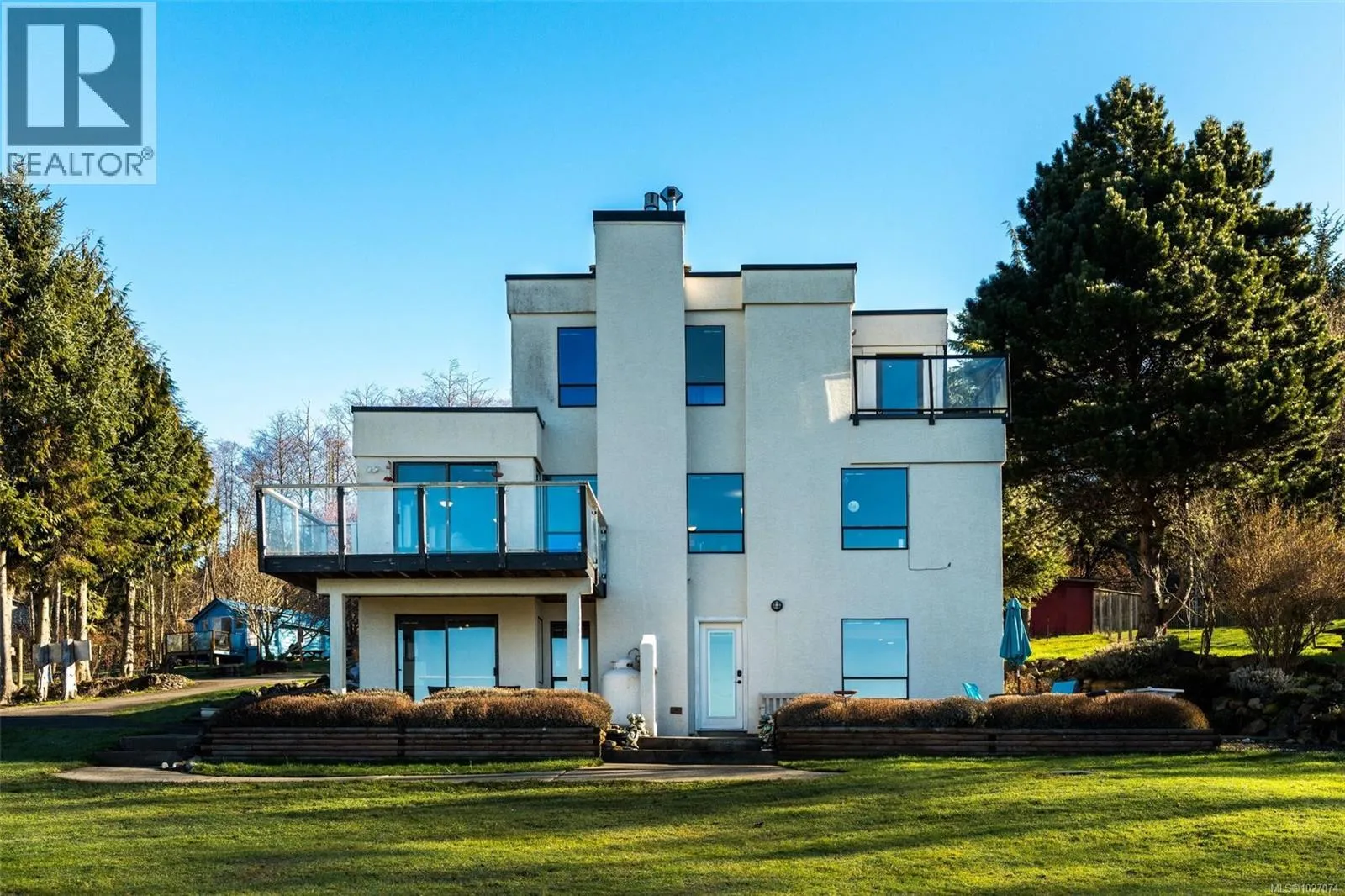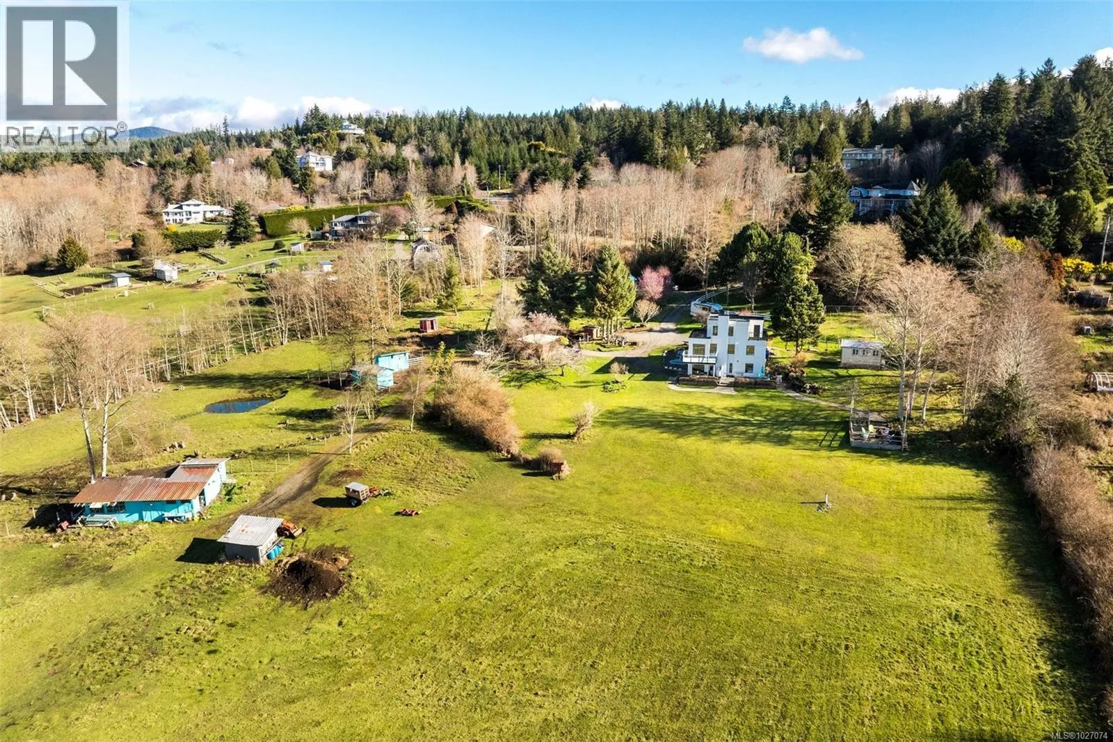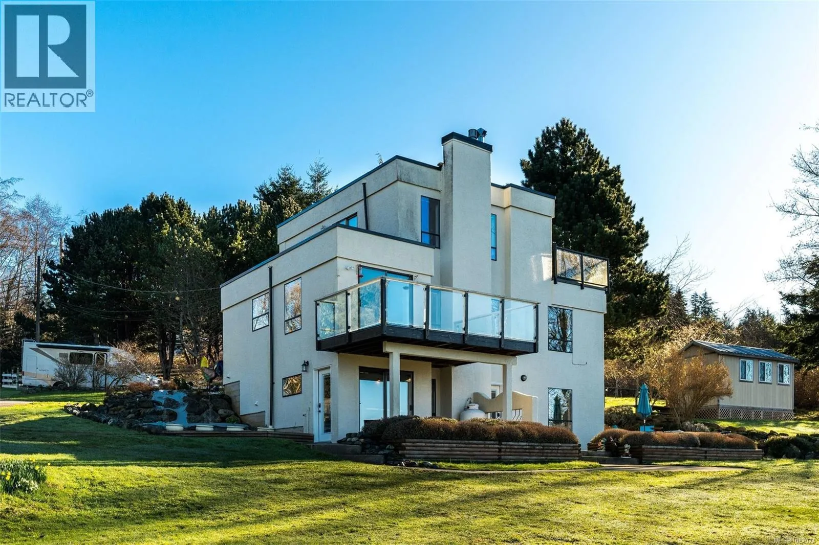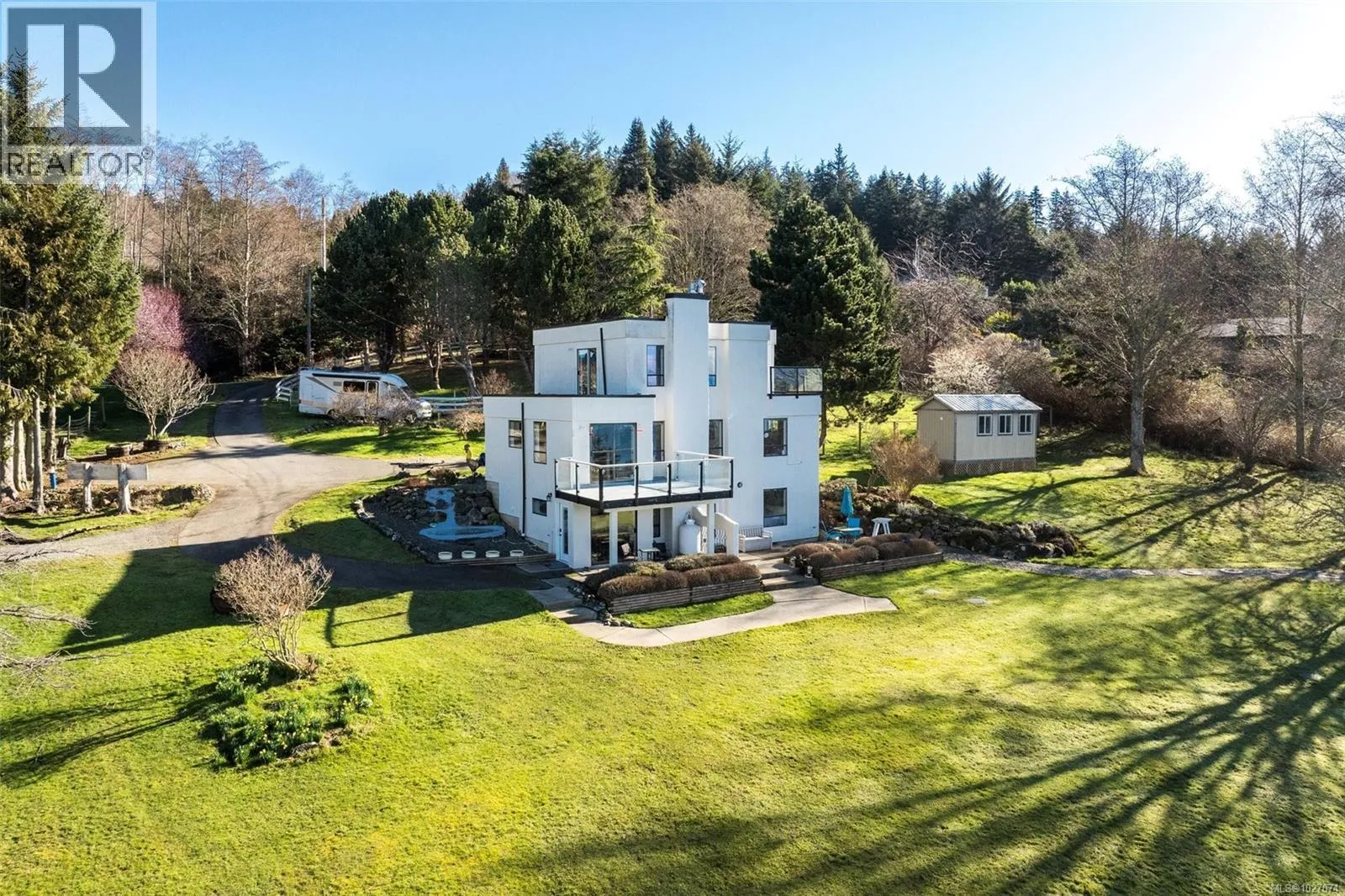 Wide open spaces, ocean views, brilliant sunsets and spectacular starlit nights - 4537 Otter Point has it all. A unique, masterfully crafted property: 10 acres of gently-sloping southwest facing land affords views over Gordon's Beach, the Strait of Juan de Fuca, and the Olympic Mountains. A 1991-built custom art-deco revival home is the centrepiece: 2300 sq ft on three levels: two self-contained vacation units below, two bedrooms on the main, and a stunning master suite upstairs, with rooftop decks, walk in closet, and luxurious ensuite bath, including a door to a private rooftop outdoor shower. A charming century cottage and efficient tiny home offer additional accommodation or revenue potential. Previously operated as a successful B&B and hobby farm, there are also numerous outbuildings: barn, chicken coop, ocean-view fire pit, pump house, and more. Current farm-tax status for lower assessment and taxes. Note re rooms: lower, main, second = house; third = cottage; other=tiny house. (id:27476)