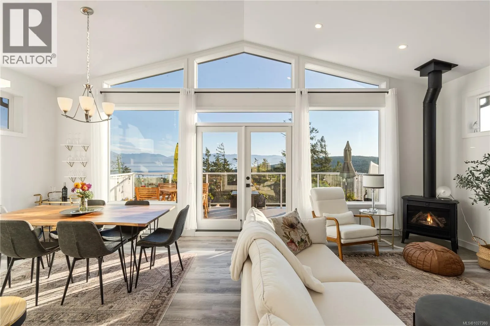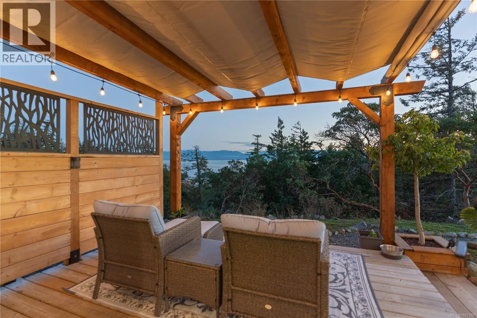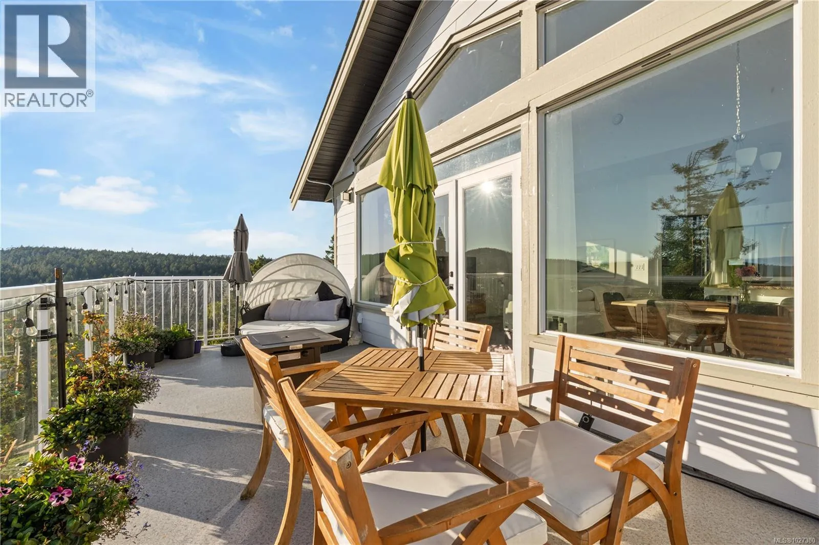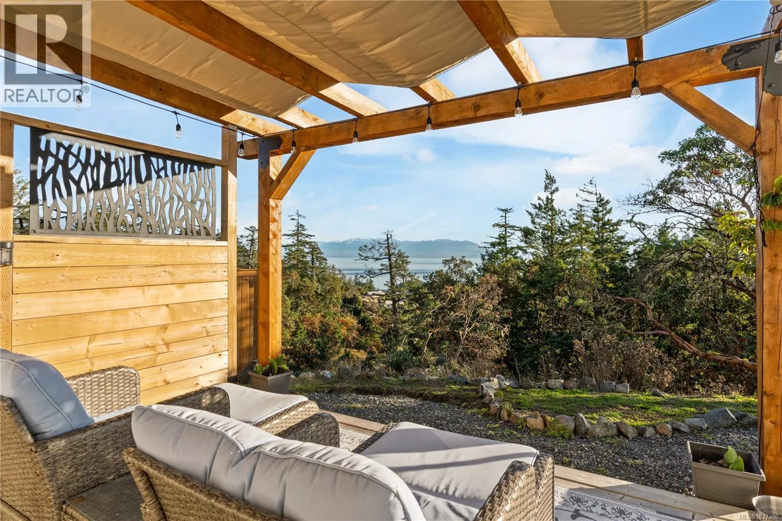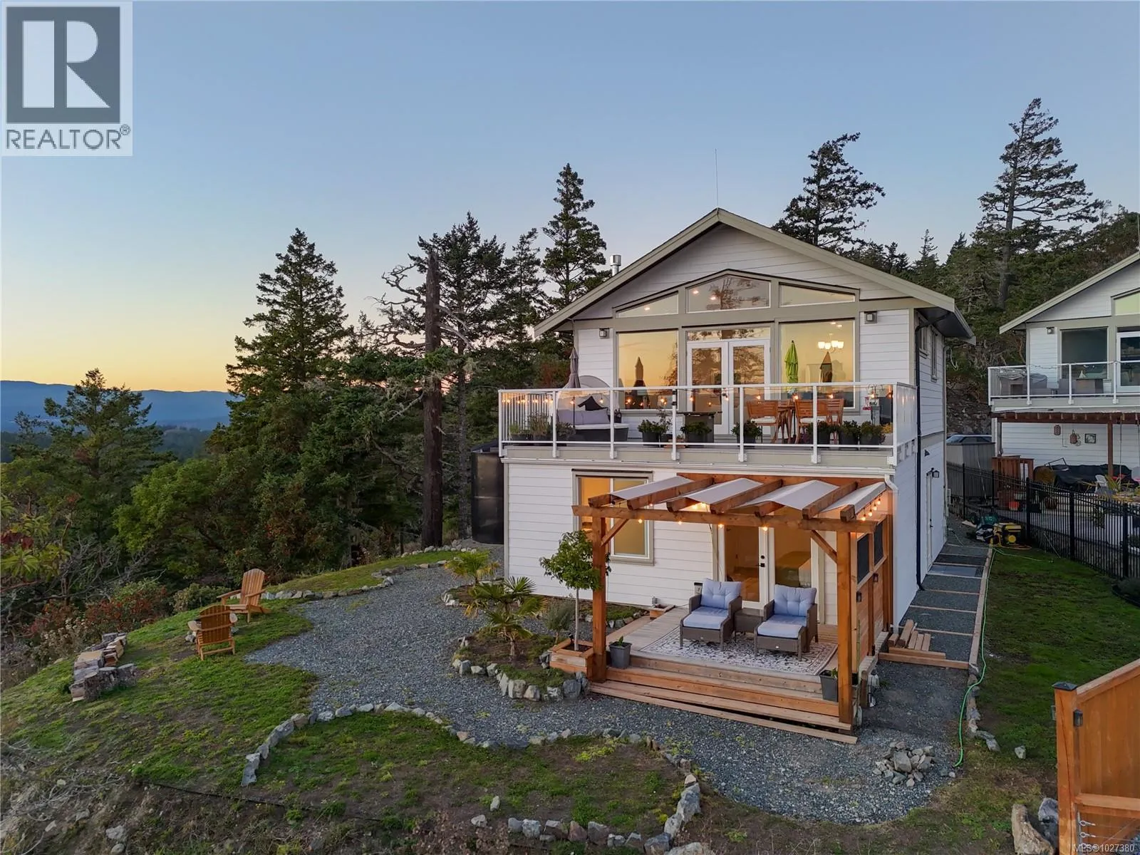 Negotiate to purchase completely furnished and move in ready. This beautiful Mountaintop Oasis places you front and centre to Breathtaking million dollar views. 180 degree sweeping unobstructed south facing exposure invites the West coast Natural Landscape into your living room. Sooke Foothills, Juan de Fuca Straight, and Olympic mountains are yours to enjoy. This home was designed and situated to allow an abundance of natural light and for all major living areas to be exposed directly to the view. The lower level has been designed to capture the incredible views from the master bedroom with French doors leading to the back yard to allow easy access to the out doors right from your bedroom. Spa like master en-suite and soaker tub is south facing allowing full enjoyment of the ocean views. Upstairs large open concept kitchen/dining/living area includes luxury finishes and a cozy propane stove. French doors lead directly to your private elevated balcony. Fantastic opportunity to own your own piece of west coast heaven. (id:27476)