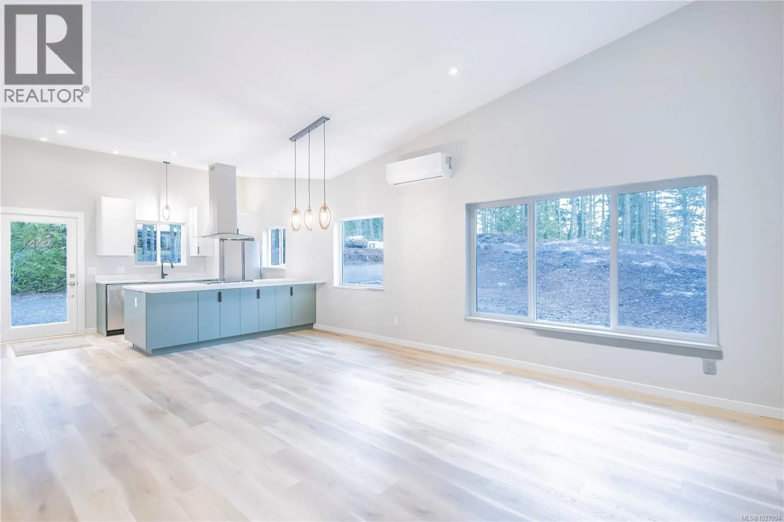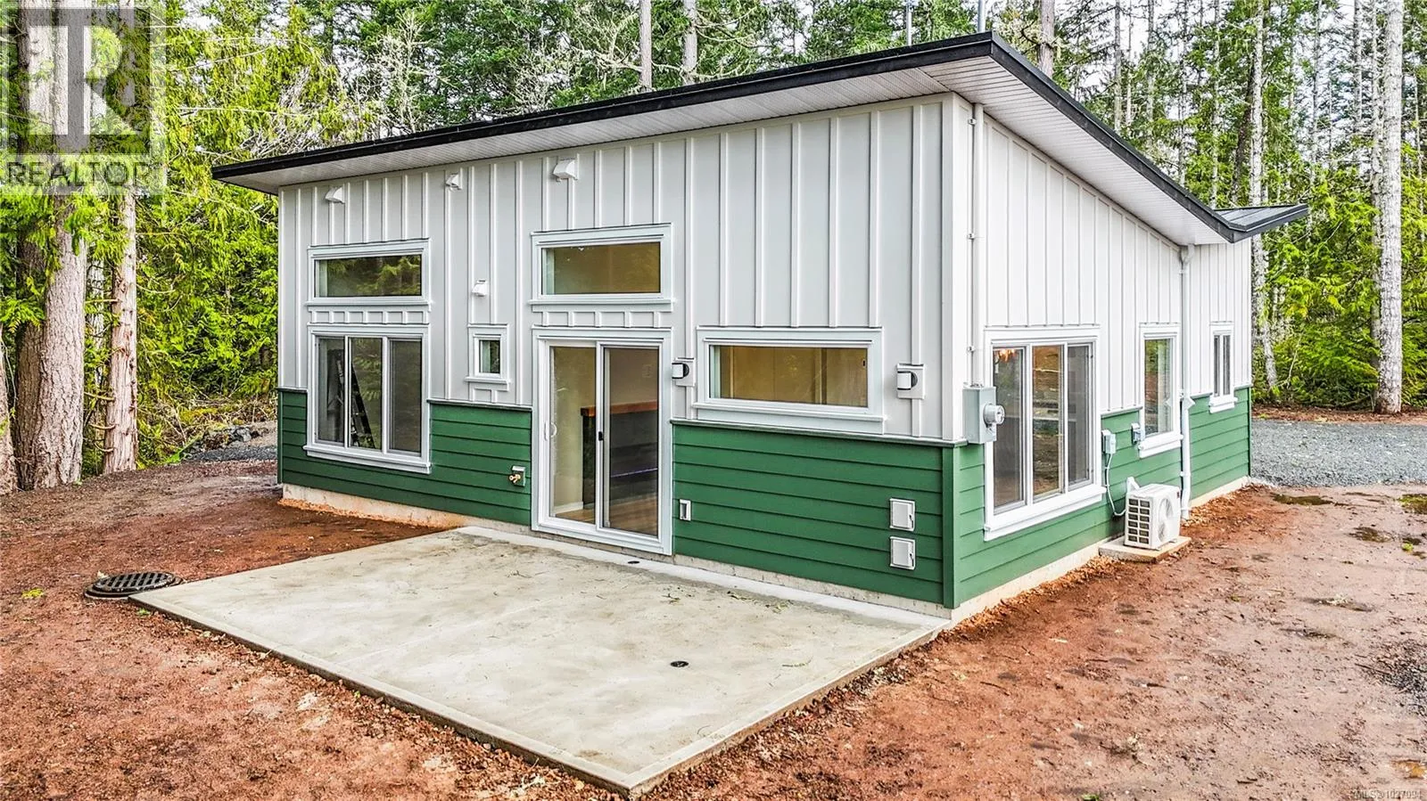 Discover West Coast living in this thoughtfully designed 3 bedroom, 2 bathroom home set within a peaceful acreage community just minutes from Sooke and a short drive to Jordan Riverâs renowned surf breaks. Surrounded by provincial beaches, scenic hiking trails, and the calm waters of Kemp Lake, this location offers year-round outdoor adventure. The home features soaring ceilings, expansive windows, natural wood accents, and ocean and mountain glimpses that connect the indoors to its beautiful surroundings. Inside offers a bright, functional layout with a spacious primary bedroom with 2-piece ensuite, energy-efficient heat pump, and in-floor heating throughout for year-round comfort. Set in a private forested setting with usable cleared space, connected to CRD water and protected by a home warranty. Ideal as a starter home while you plan your future main home build on the property! (id:27476)