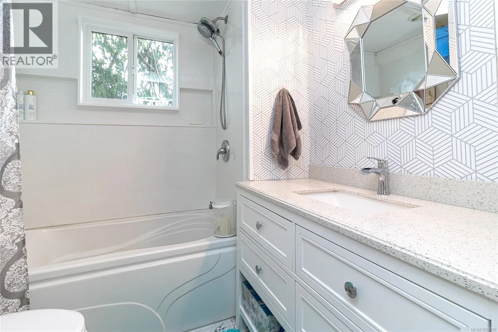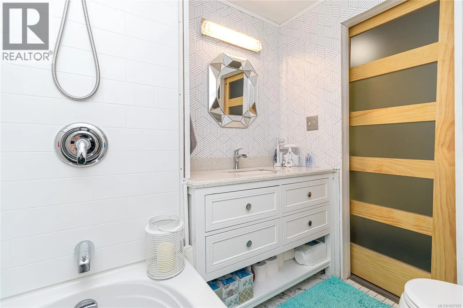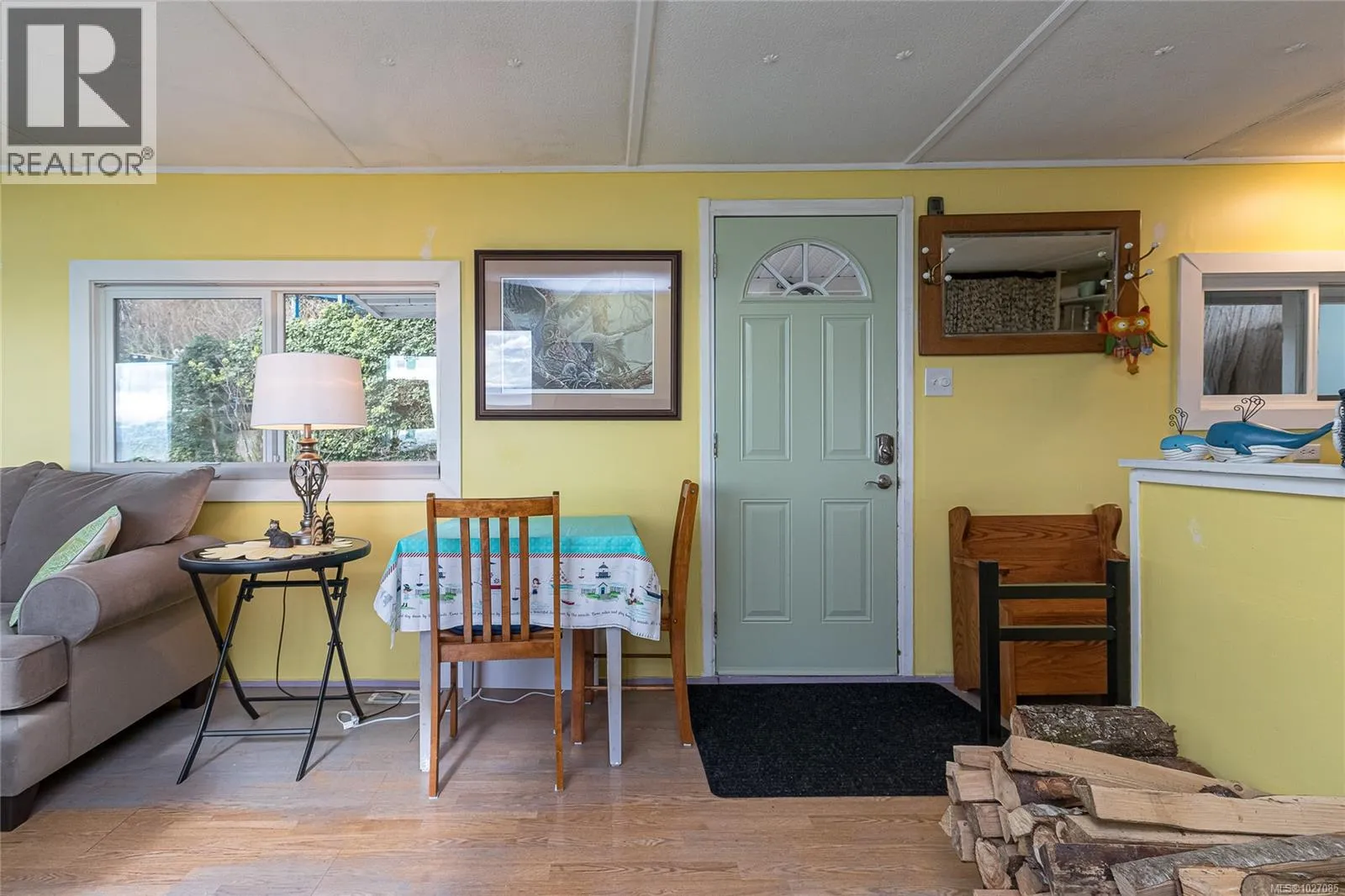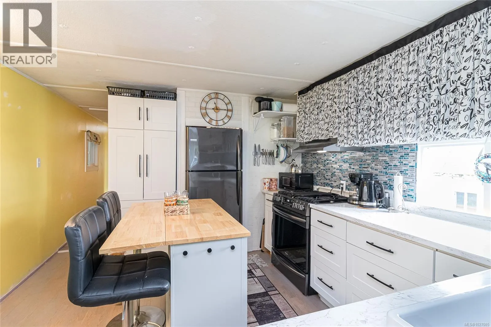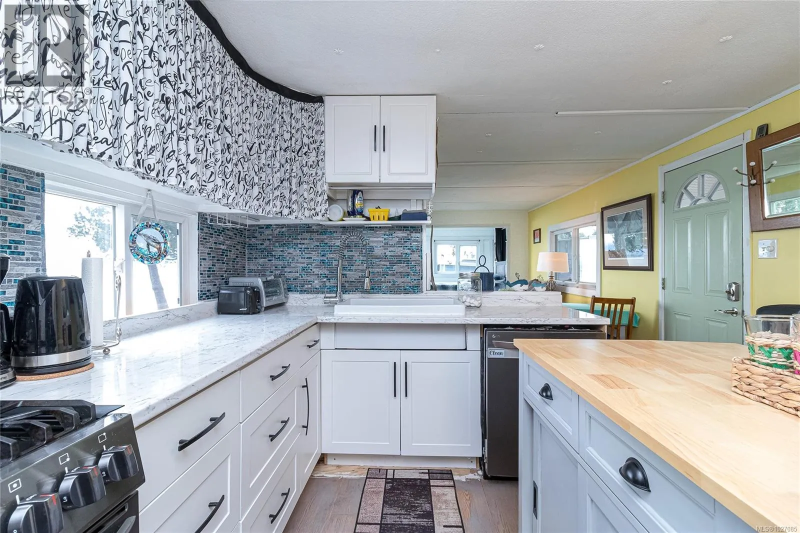 Wake up to breathtaking ocean and mountain views from this vibrant oceanfront park. Offering 3 bedrooms and 1 bathroom, this 920 sqft single-wide mobile home is full of character and coastal charm. Situated just steps from the beach, in Wells O' Weary Park, 10 minutes from downtown Sooke. Spectacular coastal views from the picturesque wall of windows in the Sunroom. It's like a live painting, capturing the colorful sunsets! Bright living room with a cozy woodstove. Spacious kitchen featuring stainless kitchen appliances, some shaker white cabinets, and an island with an eating bar. Three comfortable bedrooms and a 4-piece bathroom complete the interior, along with convenient in-unit stacker laundry. Outside leads to a sunny backyard with a seasonal creek, enjoyable sitting areas and a handy shed. Parking for two, plus nearby visitor parking. No age restrictions and pets welcome (1 dog & 1 cat, or 2 cats under 20lbs). Experience West Coast waterfront living at an affordable price. (id:27476)