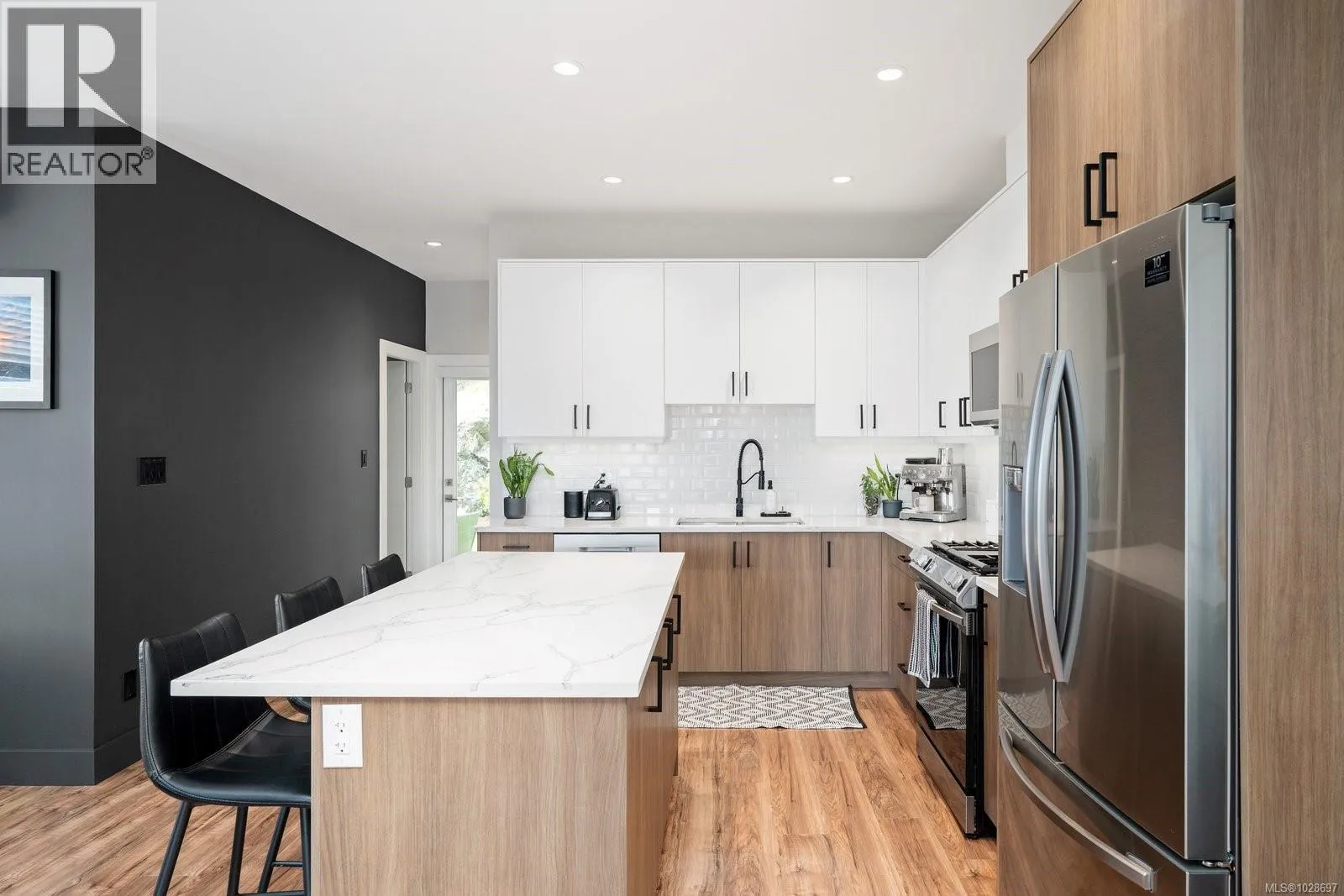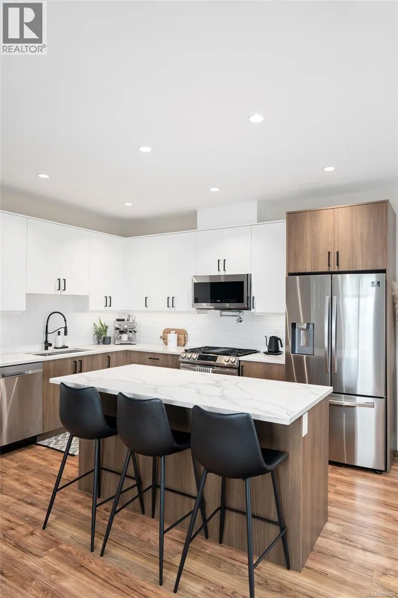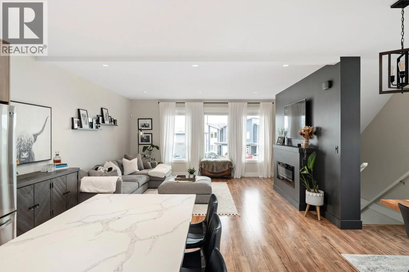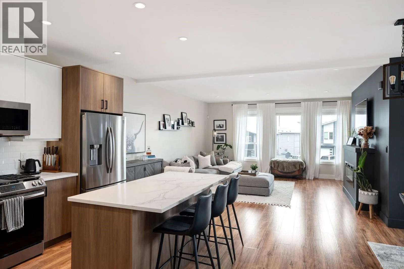 Pleased to present this luxurious, modern West Coast home situated in Sooke's seaside community. Set high on the hill, this half-duplex boasts spectacular Ocean VIEWS over the Strait of Juan De Fuca. Feel at ease the moment you step inside the 6Bed, 4Bath, 2635 sq/ft home. Attention to detail throughout will impress even the most discerning buyer. Abundant natural light fills the open-concept living and dining space, with easy access to the private, fenced rear yardâperfect for pets and kids. The stunning chef's kitchen features Quartz counters, SS apps, Gas range & a large island. Upstairs find the primary suite w/a large walk-in, spa-inspired ensuite, 2Beds & 1Bath. The lower 2Bed 1Bath SUITE w/its own W/D, separate entry & private yard is ideal as a mortgage helper or for multigenerational living. Bonuses include high efficiency dual heat pumps & ample parking. Located at the end of a quiet cul-de-sac in a family-friendly neighbourhood, close to trails, schools & beaches. (id:27476)