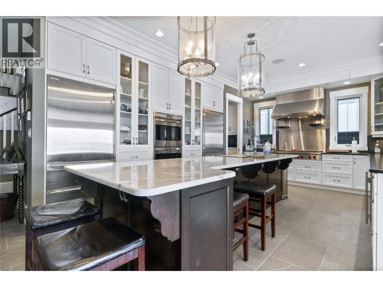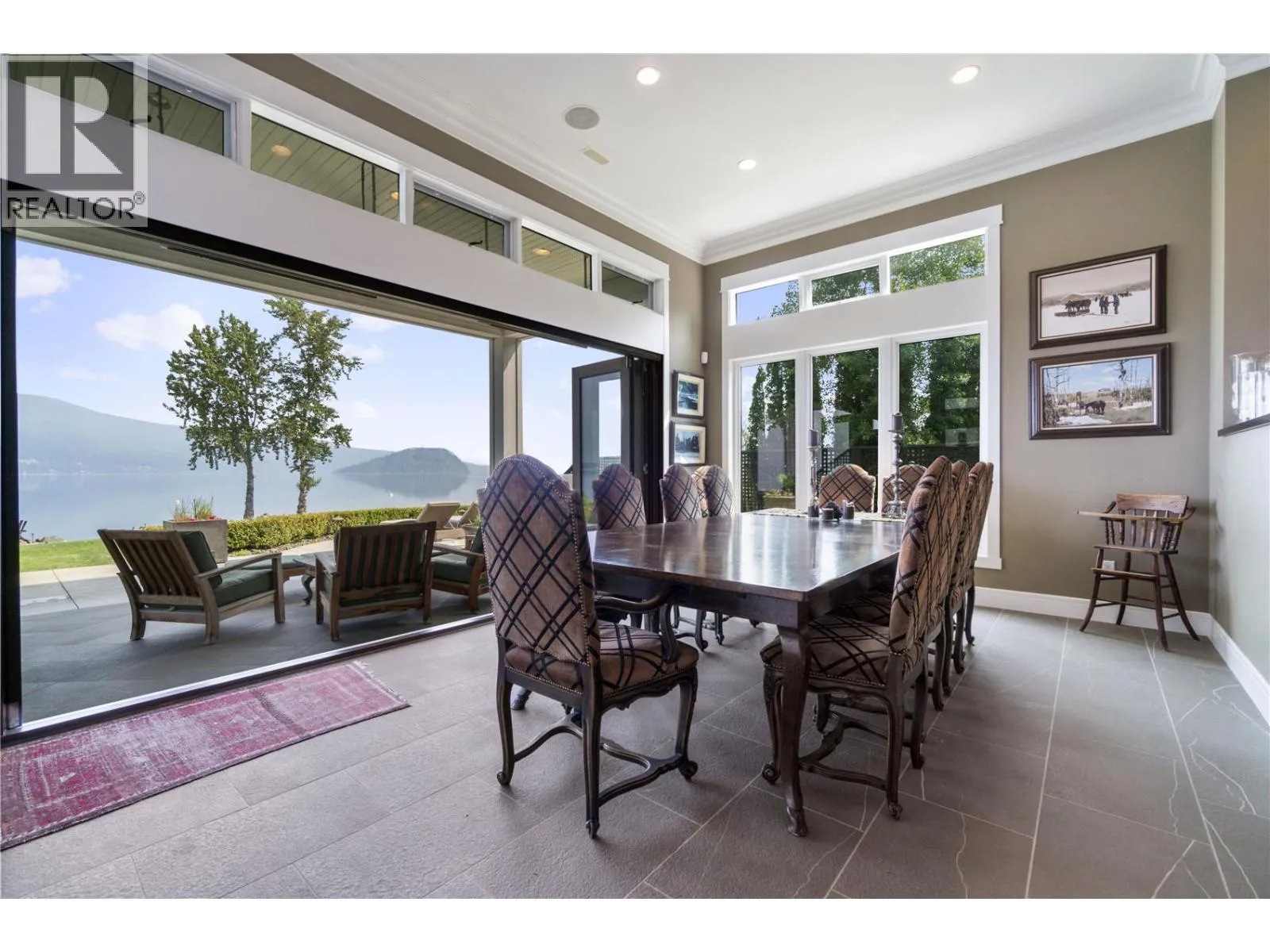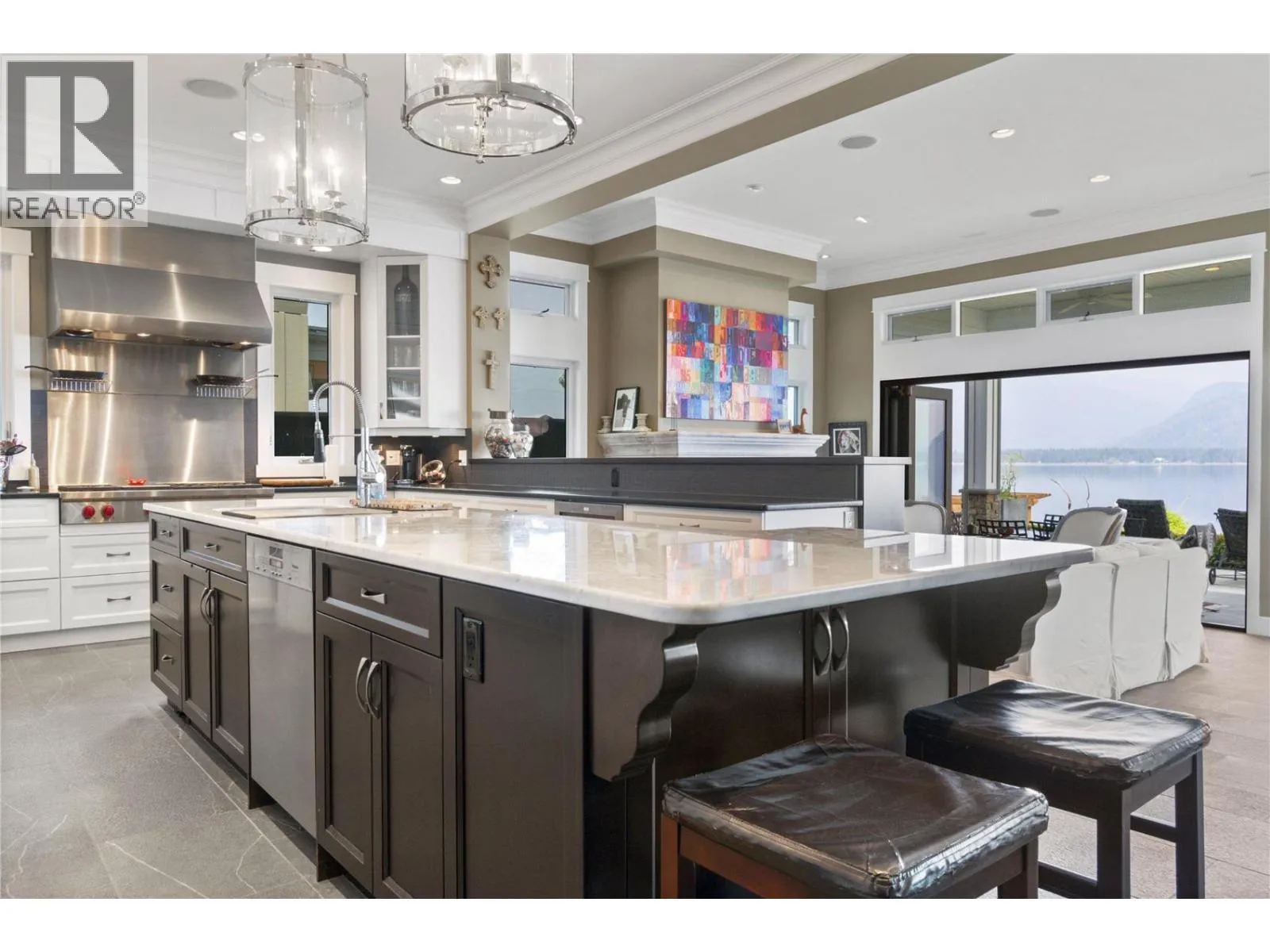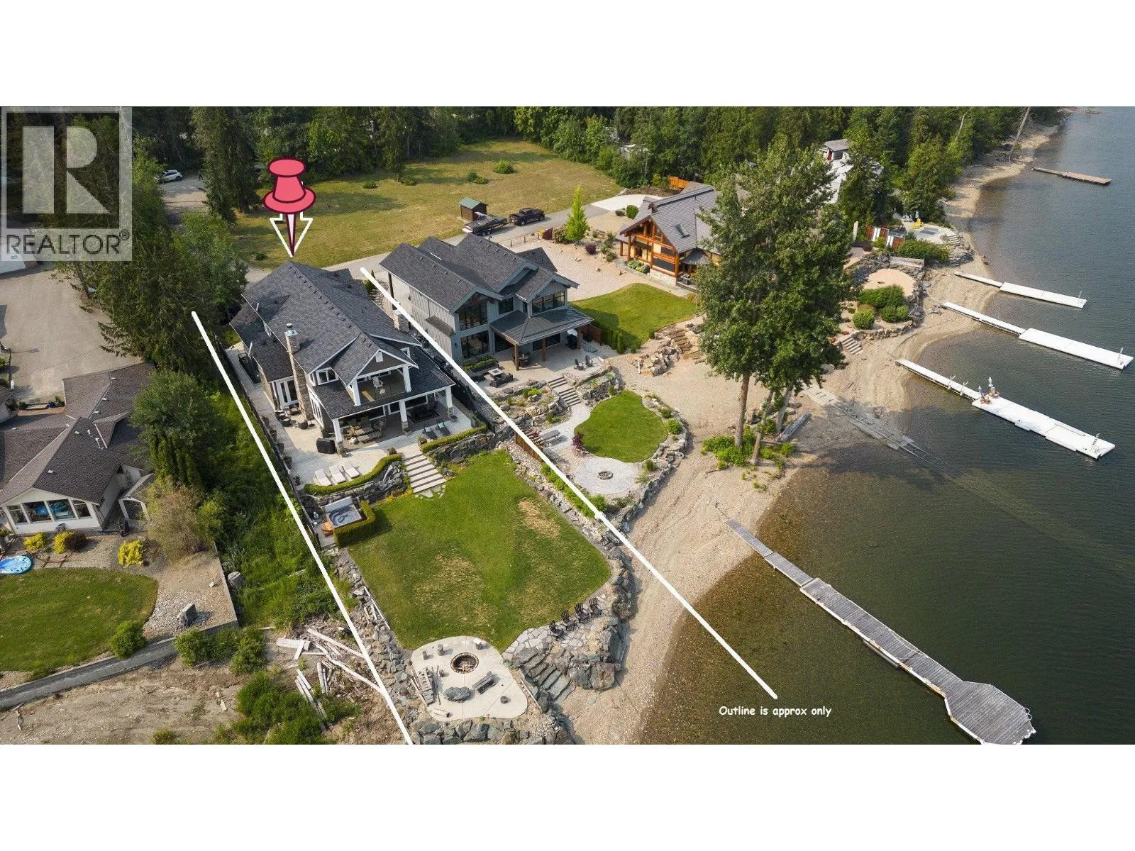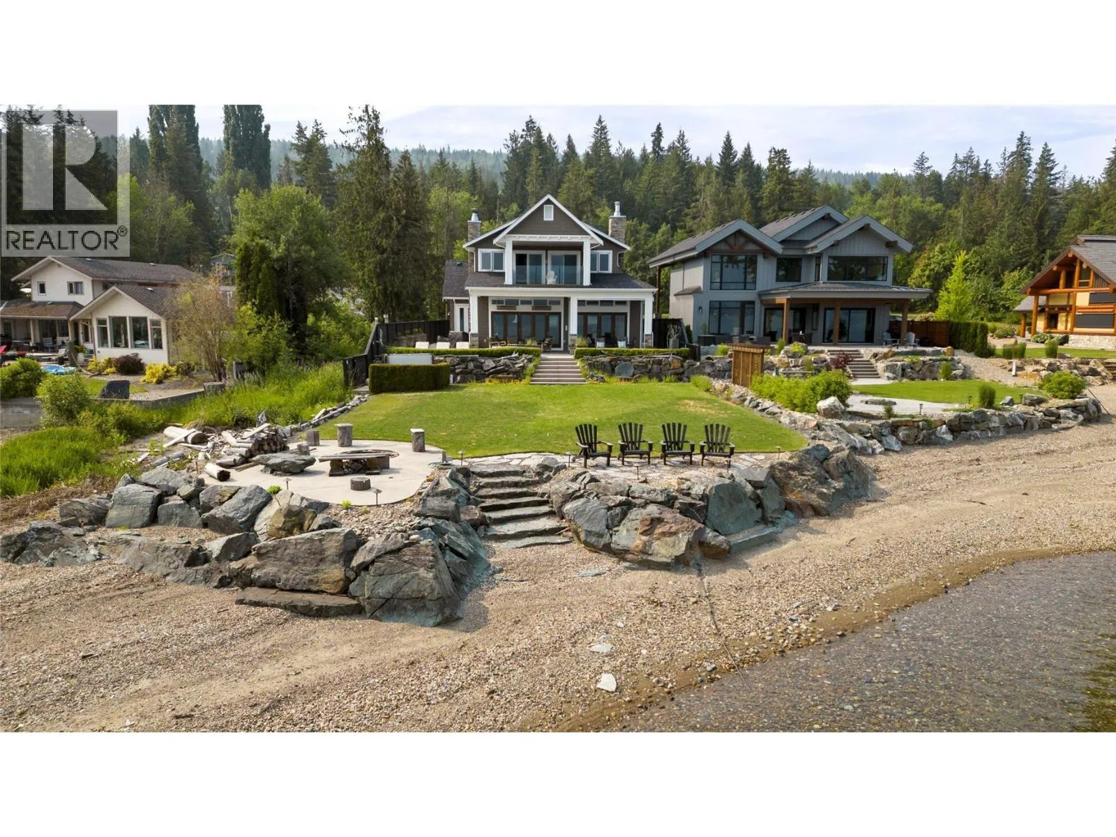 SHUSWAP LAKE WATERFRONT DREAM HOME! Live year-round in this high-end, custom-built waterfront home with 4,050 SqFt of luxurious living space. Nestled on the Shuswap's exclusive waterfront street of dreams, this irreplaceable home sits on a gated 5-lot subdivision, with 1400' of waterfront, making it a one-of-a-kind gem in the Shuswap Region. Plus, there's NO EMPTY HOMES TAX to worry about! This executive-style home boasts 5 bedrooms, a den, and 3 full bathrooms. Open concept living, dining, and family rooms, all offering stunning lake views & an oversized gourmet kitchen. Master suite, also on the main floor, includes a huge spa-like ensuite. Gourmet island kitchen is equipped with topof-the-line appliances, including 3 Wolf ovens, 3 Sub-Zero fridges, a Sub-Zero ice maker, and a gas stove. There's also a butler's pantry. Several outdoor entertaining areas enhance this lakeside retreat, including one fully screened area with 3-sided automatic screens & two areas that open into the home with full-width sliding windows in the living & dining rooms. Enjoy 3 fireplaces; 2 inside offering both wood burning and natural gas, and a 3rd outdoor wood-burning fireplace with its own entertaining area. Outdoor features include lawned areas, a beach, a dock, a firepit, and a lakeside hot tub offering perfect privacy with easy access. The upstairs houses a huge family room, gym area, den, 2 bedrooms with a lakeside balcony, 2 additional bedrooms, and a full bathroom. See the virtual tour! (id:27476)