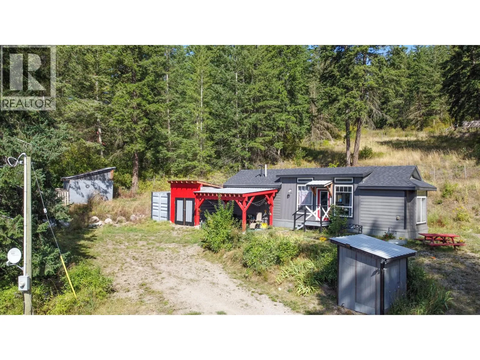 Searching for a private acreage with breathtaking views. This 3.56-acre partially fenced, gated property offers the perfect blend of seclusion and convenience. Just minutes from Sorrento, Blind Bay, Shuswap Lake, and White Lakeâand only 25 minutes to Salmon Armâyouâll enjoy the quiet of your own retreat without giving up easy access to town. Explore the many horse back riding and bike riding trails at Belmoral Trail. The 2018-built 2-bedroom home is cozy yet efficient, with a covered 12â x 16â pergola where you can sit back and take in stunning valley views and Mt. Ida in the distance. Privacy surrounds you here, with over an acre cleared and the rest of the gently sloping land offering space to expand, garden, or build your dream home higher up for even more panoramic vistas. Practical features include a 12â x 20â enclosed 3-sided carport, a 20 ft. shipping container for storage, a new septic system, natural gas, and 100 AMP service (with easy upgrade options). A Bonus! New heat and cooling 2025 system installed last spring for your convenience. The well is stated to produce 2.5 GPM of excellent-tasting water. Thereâs even a dirt road leading to the top of the property, giving you the opportunity to build a home or cabin at a higher elevationâmaximizing both views and privacy. Park your boat, plug in your RV to power and septic, and welcome friends and family to enjoy the space with you. Opportunities like thisâprivacy, views, and location all in oneâdonât come along often. Come see it for yourself. (id:27476)