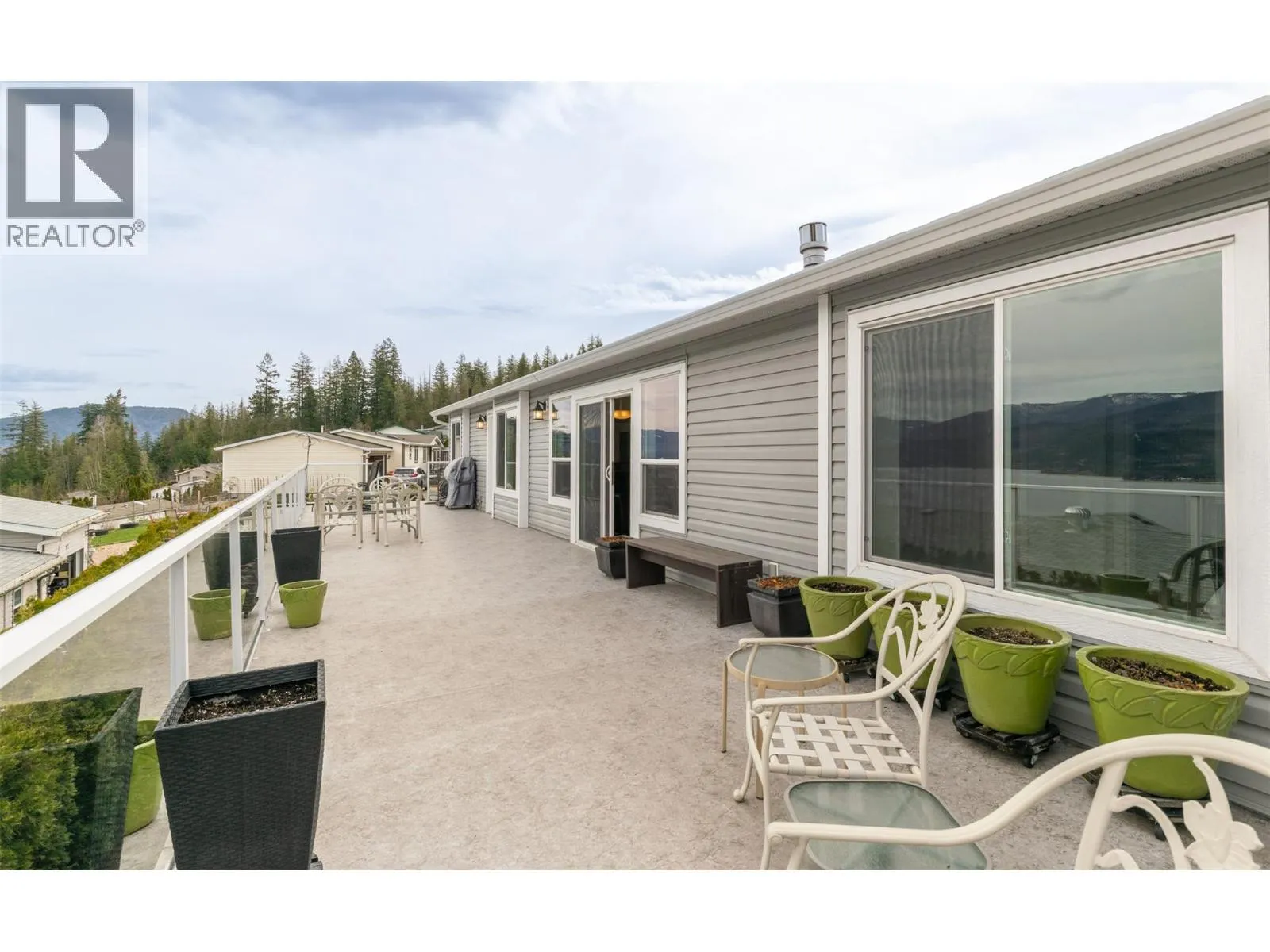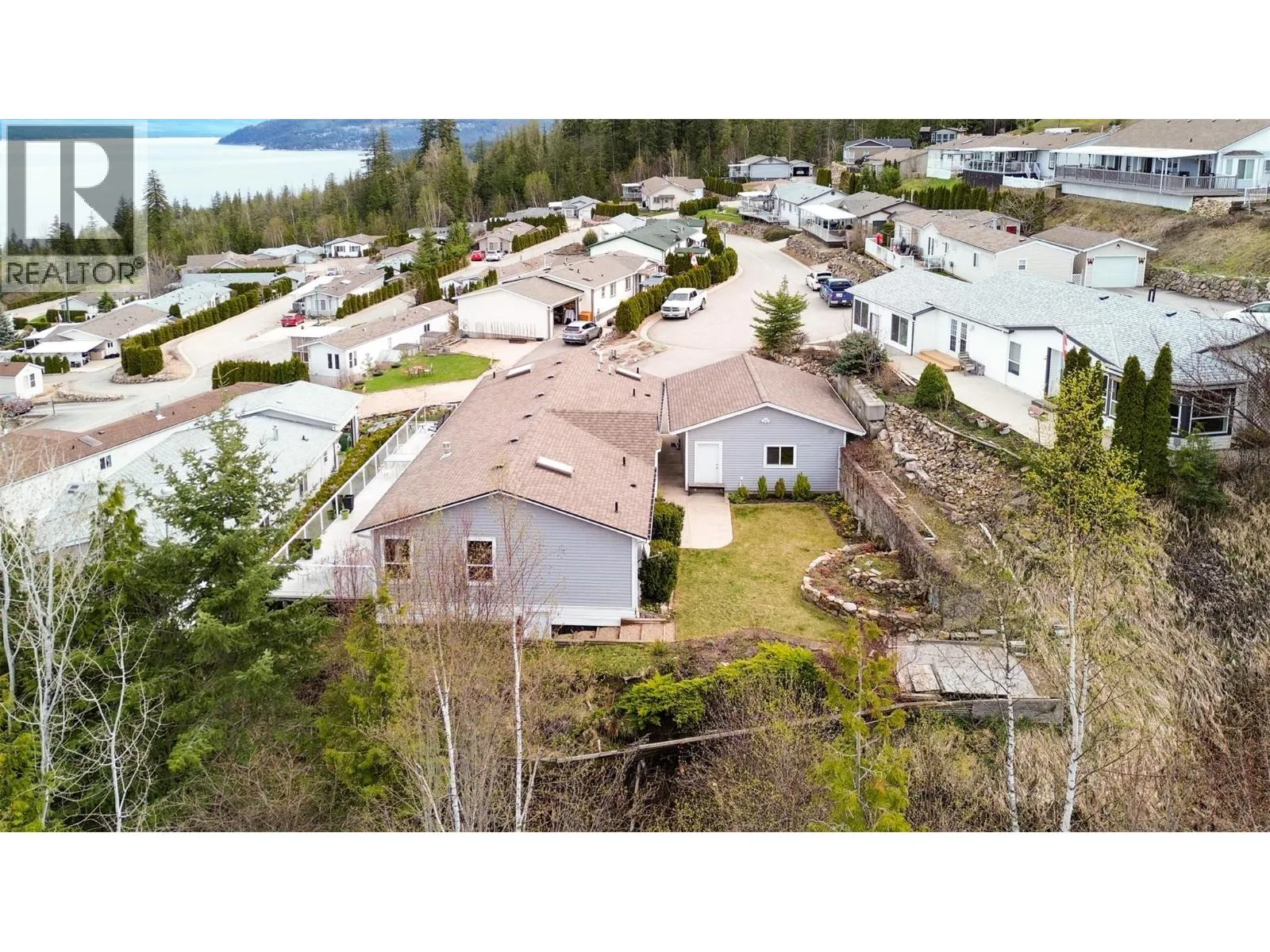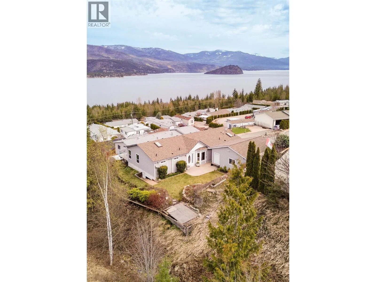 Welcome to lakeview living at its finest in one of the Shuswap's most desirable 55+ communities, Deer Ridge Estates in Sorrento, BC. This very well kept custom manufactured home offers jaw dropping lake and mountain views, lush mature landscaping, and a lifestyle of peace, comfort and convenience. The expansive primary suite is a peaceful sanctuary, boasting a spa-inspired en-suite bathroom complete with dual vanities, a luxurious jetted soaker tub set beneath a skylight, a separate walk-in shower, a spacious Jack and Jill walk-in closet, and the added warmth of a dual-sided gas fireplace shared with the living room. A well appointed second bedroom and full guest bath, along with a generously sized den with a built-in Murphy bed, provide gracious accommodations for guests or creative pursuits. The open-concept kitchen, living, and dining areas are bathed in natural light and oriented perfectly to capture the stunning panoramic views. Step outside to your own private oasis, where a beautifully landscaped courtyard and vibrant garden create an atmosphere of tranquility. An expansive deck, ideal for alfresco dining and effortless entertaining, extends your living space and is perfectly positioned to capture the sweeping views. A detached double garage, connected by a breezeway, provides easy access and additional storage. Whether youâre entertaining friends or enjoying your morning coffee with a view, this home is designed for relaxed, inspired living. (id:27476)