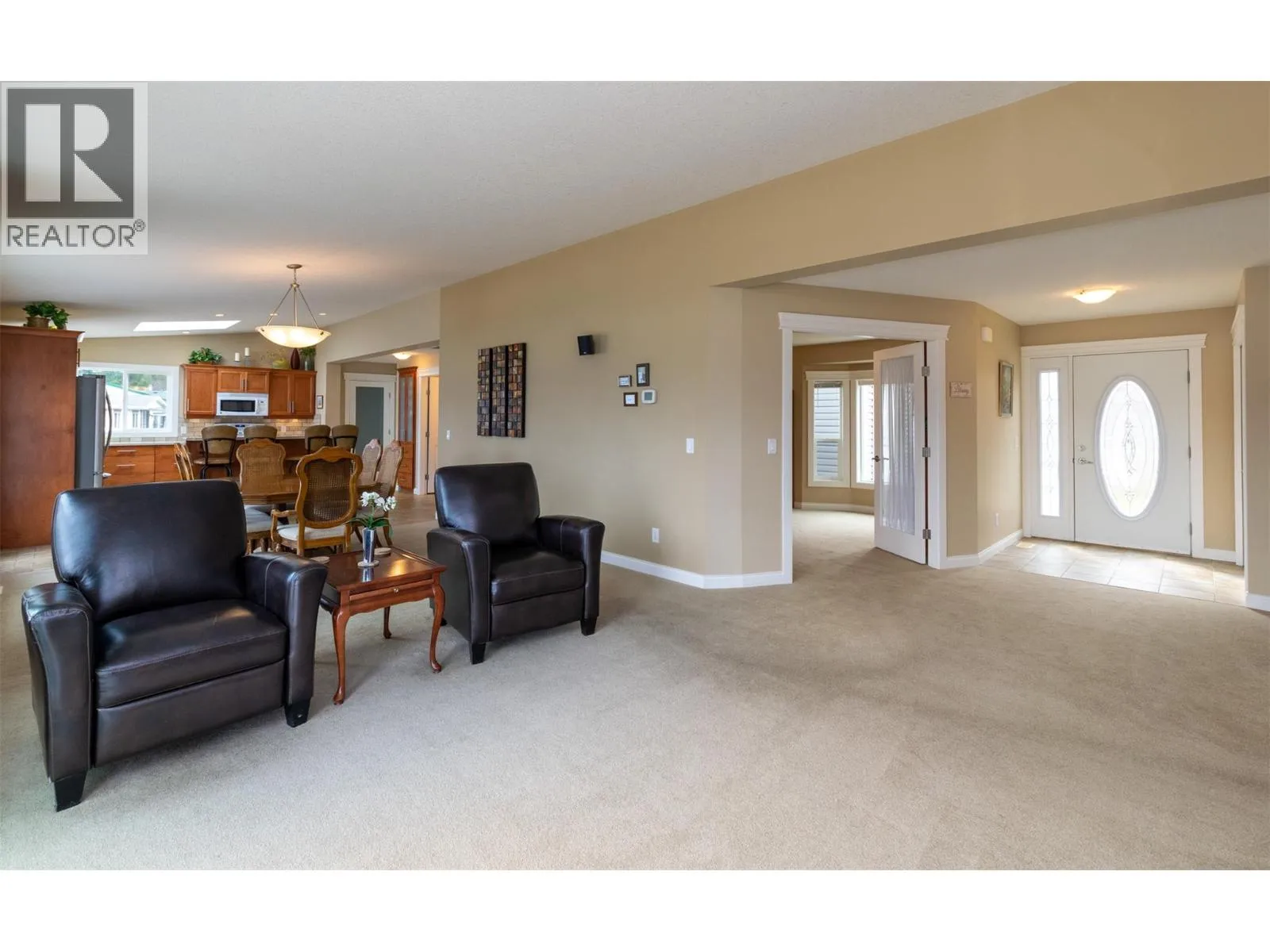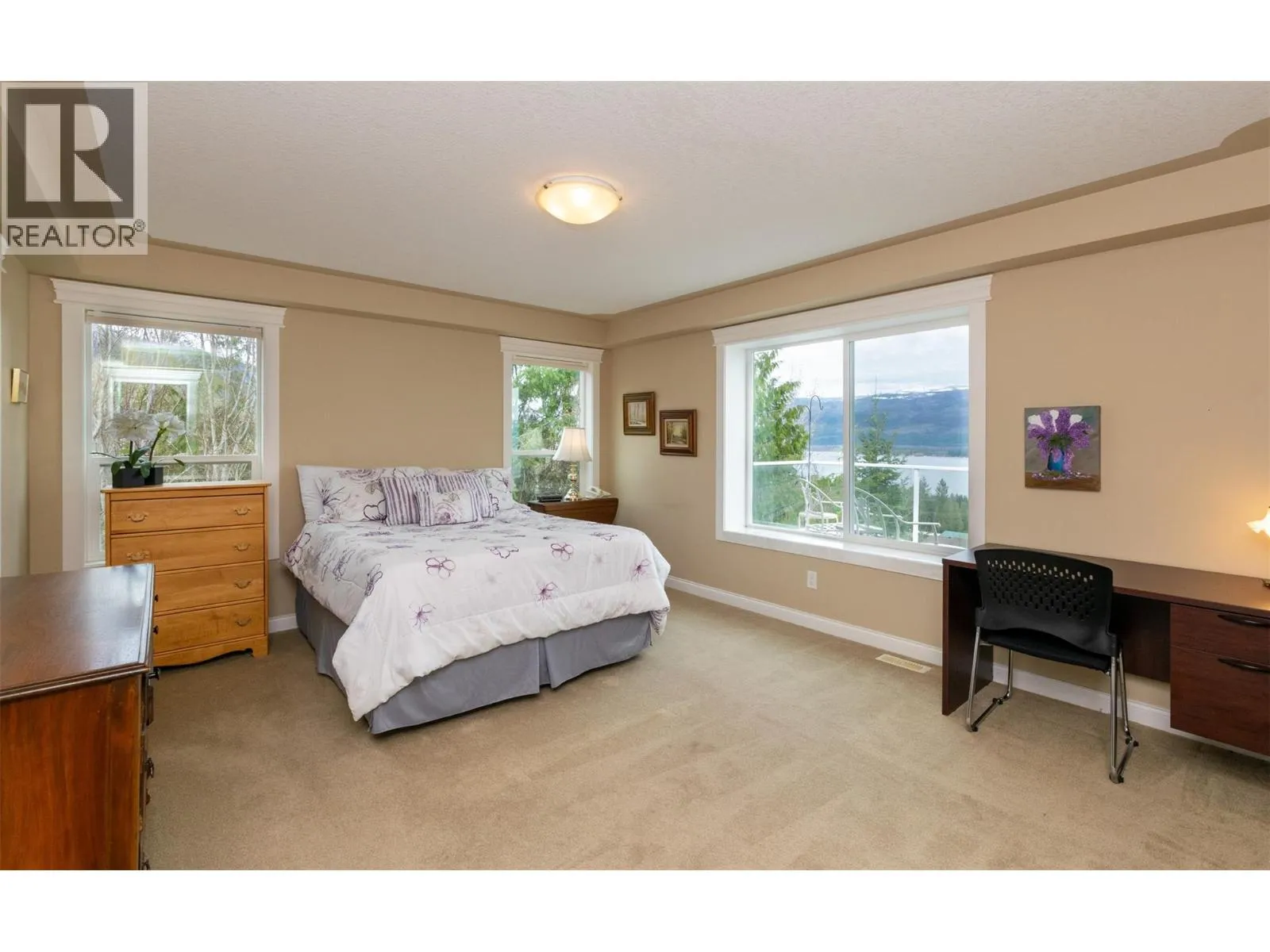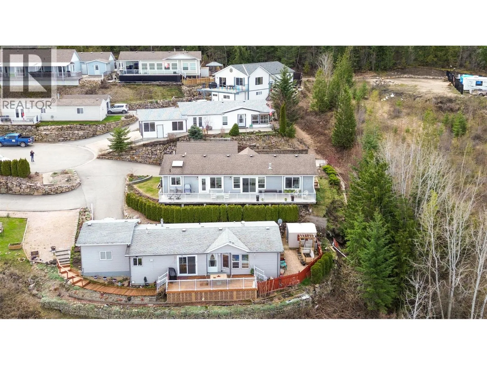 Welcome to lakeview living at its finest in one of the Shuswap's most desirable 55+ communities, Deer Ridge Estates in Sorrento, BC. This very well kept custom manufactured home offers jaw dropping lake and mountain views, lush mature landscaping, and a lifestyle of peace, comfort and convenience. The expansive primary suite is a peaceful sanctuary, boasting a spa-inspired en-suite bathroom complete with dual vanities, a luxurious jetted soaker tub set beneath a skylight, a separate walk-in shower, a spacious Jack and Jill walk-in closet, and the added warmth of a dual-sided gas fireplace shared with the living room. A well appointed second bedroom and full guest bath, along with a generously sized den with a built-in Murphy bed, provide gracious accommodations for guests or creative pursuits. The open-concept kitchen, living, and dining areas are bathed in natural light and oriented perfectly to capture the stunning panoramic views. Step outside to your own private oasis, where a beautifully landscaped courtyard and vibrant garden create an atmosphere of tranquility. An expansive deck, ideal for alfresco dining and effortless entertaining, extends your living space and is perfectly positioned to capture the sweeping views. A detached double garage, connected by a breezeway, provides easy access and additional storage. Whether youâre entertaining friends or enjoying your morning coffee with a view, this home is designed for relaxed, inspired living. (id:27476)
