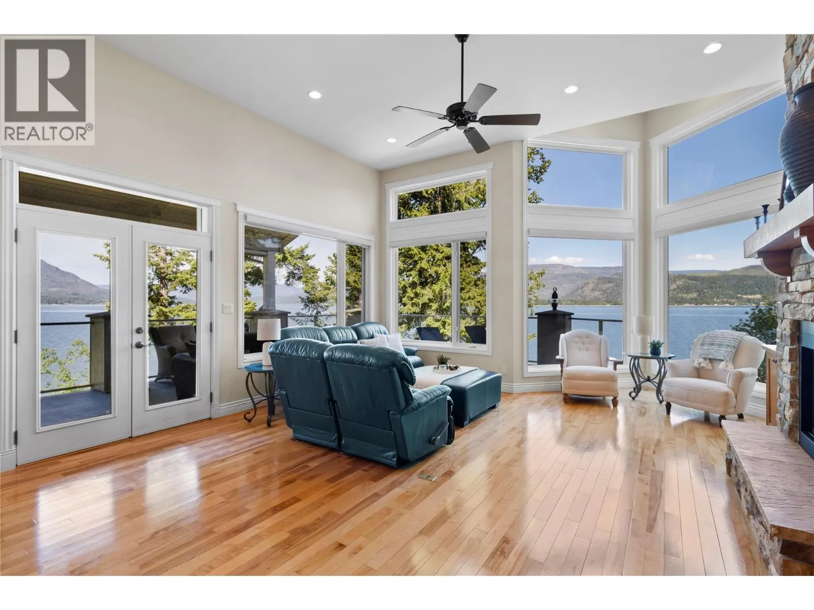 3011 Durham Road.This extraordinary custom lakeshore home sits peacefully at the end of a quiet street, surrounded by forest and water, offering incredible west- and north-facing lake views. Built in 2005, this unique 3-bedroom, 3-bathroom home was thoughtfully designed with vaulted ceilings and expansive windows to fully capture the lake outside your windows and create the indoor-outdoor living. A partially covered wraparound deck extends along the lake-facing side of the homeâperfect for enjoying the serenity of Shuswap Lake throughout the seasons. Set on a 0.77-acre lot, the property includes both a detached double garage and an attached garage, providing ample storage and parking. The timber-framed entrance adds character and covered access, while the open-concept interior features stone countertops centered by a natural gas stone fireplace. The low-maintenance yard is landscaped with a concrete patio near the waterâs edge, creating a perfect space for lakeside enjoyment. An ideal year-round home or luxury lakefront getaway, just minutes from the amenities of Blind Bay and Sorrento. All measurements have been taken from Matterport. Donât forget to check out the 3D tour and video. (id:27476)