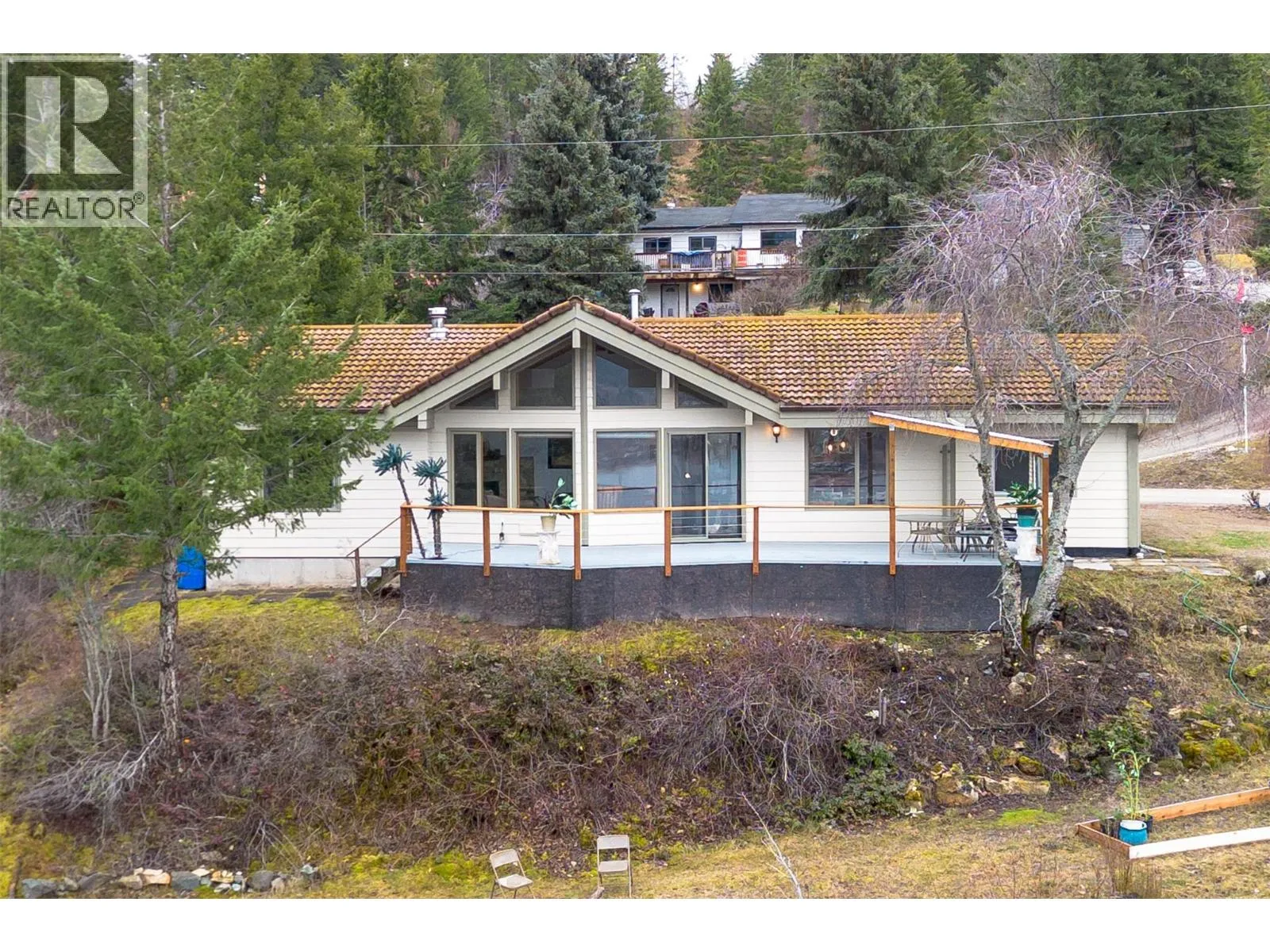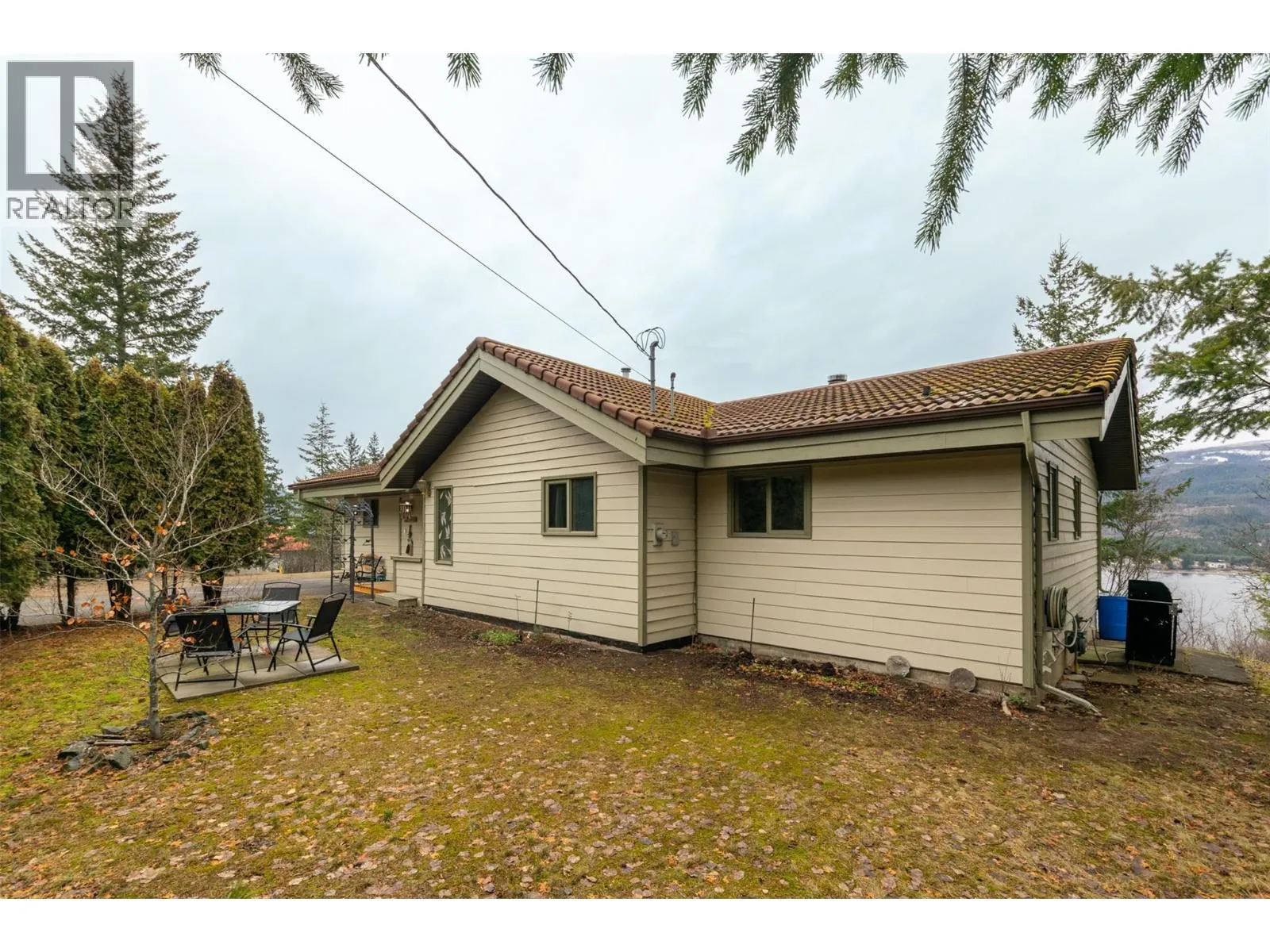 This is a great small acreage property that is move in ready, offering 2.43-acres that has spectacular views of the shimmering waters of the Shuswap Lake. Centrally located, just a short distance from Sorrento for your basic needs and less than an hour to Kamloops and a half hour to Salmon Arm. The owners just recently made Fire Smart improvements clearing many trees, that now allow for just about 180 degrees of beautiful unobstructed views of the lake. This unique property is across the highway from the water, giving it Foreshore Residential 2 zoning, allowing for a buoy and swim platform. Sit out and take in the sunsets from your Northwest exposed private deck overlooking the lake and mountains. Built in 1992, this custom one-level rancher is the perfect downsizer or starter home with 3 beds and 2 baths, an open-plan living and dining area. Room for a shop, flat parking, and plenty of room for a garden. Municipal water and natural gas with high efficiency forced air furnace adds to your comfort in this natural setting. Fruit trees and many unique plants adorn the property. Recent updates in 2024 include, fresh paint, kitchen counter tops, upgraded appliances and light fixtures, Vinyl Plank flooring in kitchen, dining room, 1 bedroom and both bathrooms, newly installed Pex plumbing, hot water tank, Hardie siding, deck and railings. Don't miss out on this wonderful opportunity to make this your new home. This place can be sold fully furnished if wanted. (id:27476)