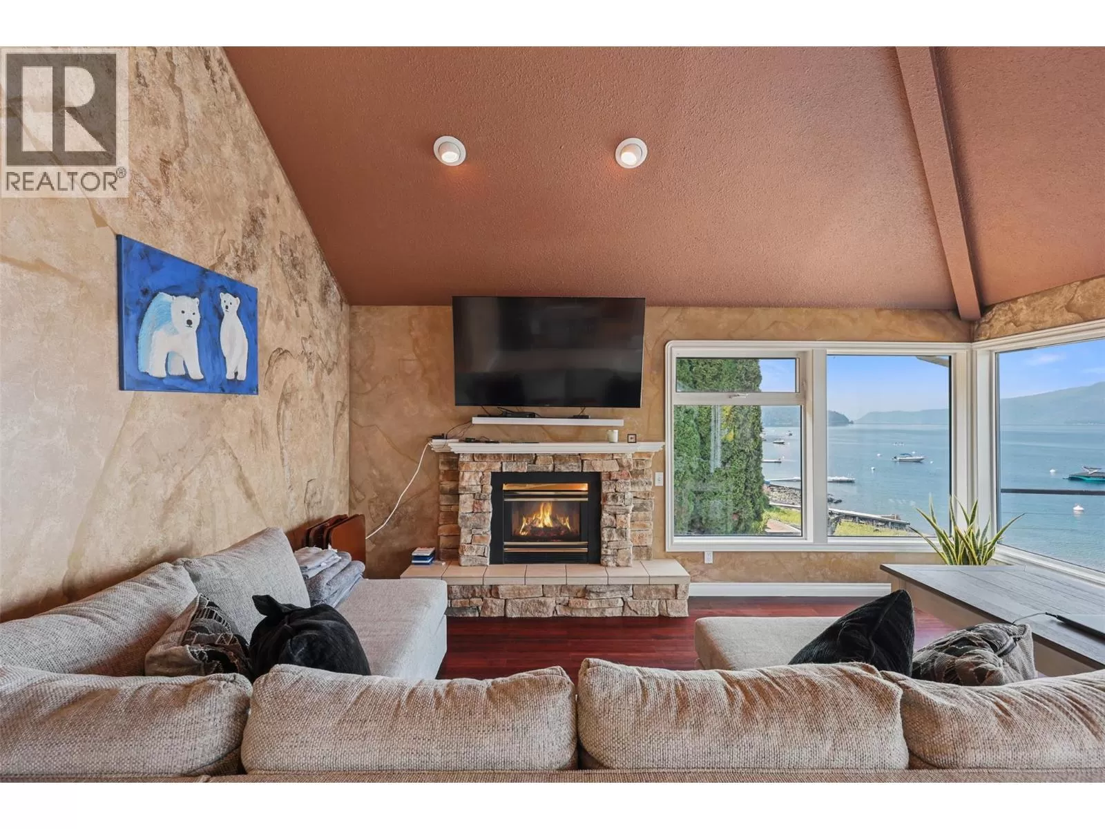 Welcome to your dream retreat on the shores of Shuswap Lake. Nestled on a quiet street in Eagle Bay, this Tuscan-inspired waterfront villa combines timeless architecture with unbeatable views. From the moment you arrive, the new paved driveway and manicured grounds set the tone for this private lakeside escape. Step inside to soaring vaulted ceilings, an abundance of natural light, and a spacious open-concept design perfect for entertaining or simply soaking up the panoramic lake and mountain views from every angle. The main level features a primary bedroom with cheater ensuite for ultimate convenience, while upstairs offers a versatile loft space. The lower level is designed for fun and relaxation with a wet bar and rec room opening onto a covered patio just steps from the water. Outdoor living is where this property shines: a wrap-around tiled deck for al fresco dining, a gorgeous aluminum dock with rolling gangway for endless summer fun, and a private yard where you can unwind in peace. Practical touches include roll-down security shutters, propane radiant heating, and a septic + community water system. A detached 2-storey shop with plumbing provides secure parking for vehicles and a boat, plus extra workspace. With additional covered and off-street parking, thereâs room for everyone. Whether youâre searching for a year-round residence or the ultimate family getaway, this property offers the best of the Shuswap lifestyle. (id:27476)
