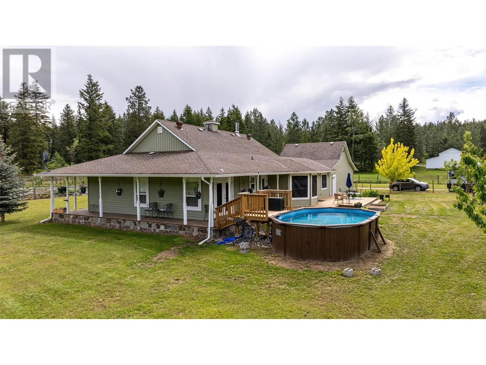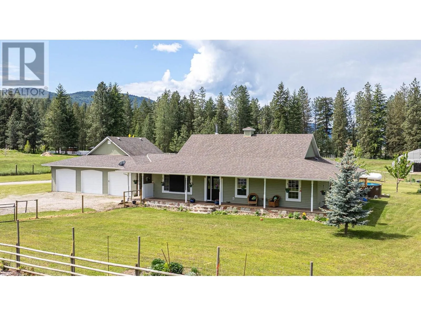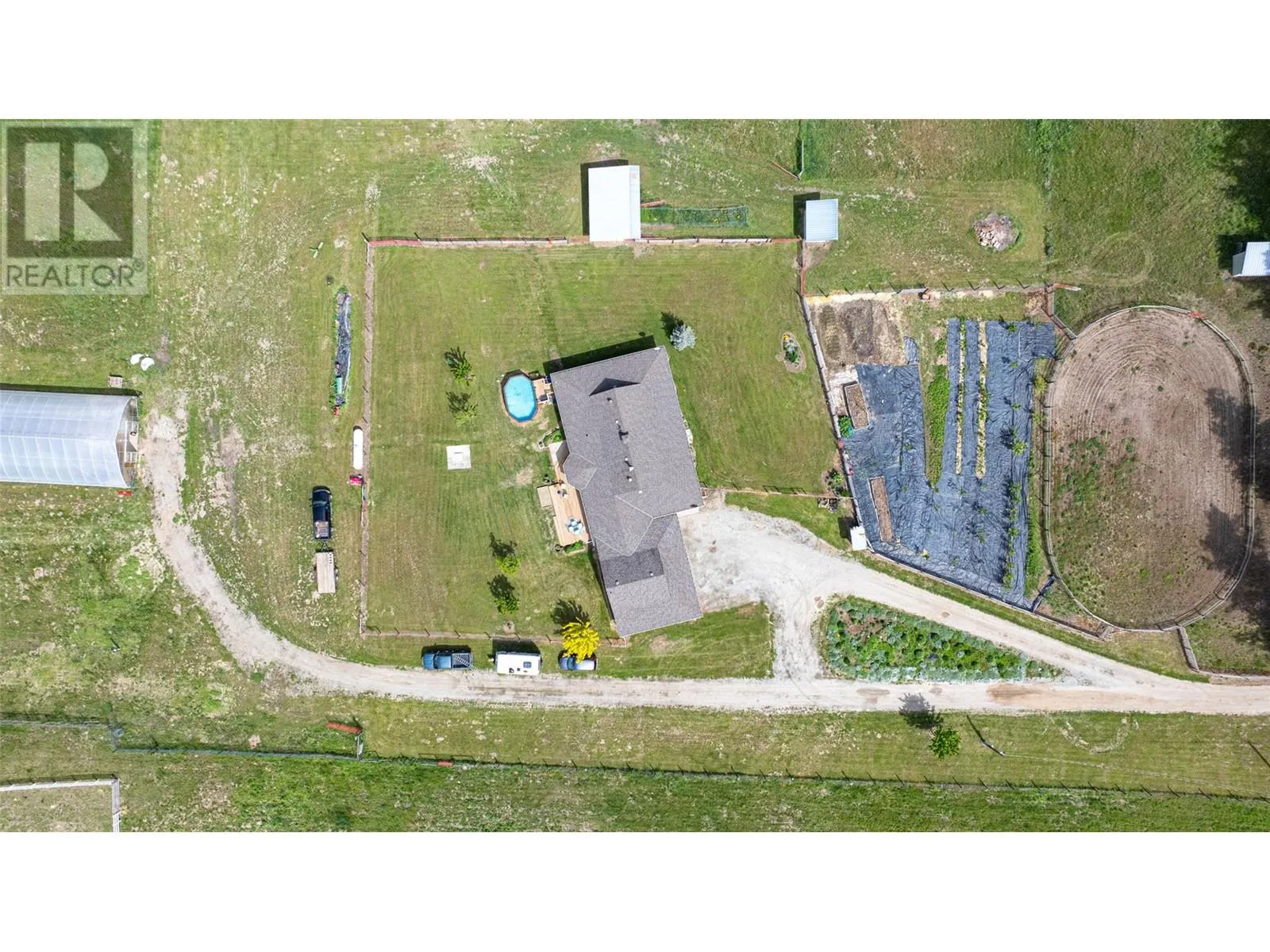 11.90 acres of usable land with a 3 bed/2 bath rancher style home. Former nursery property with 35' x 100' heated Greenhouse with automated curtains. Private location on a no-through road. Home has updated kitchen with newer cabinets and appliances. Spacious Primary bedroom with 3 pce. ensuite bath. Living room has certified woodstove with in-floor heat throughout the home fired by a propane boiler, installed in 2020. Large triple garage with one bay used as a work shop. The property has several good outbuildings including 16'x30' insulated Shop and 16'x16' Tack Shed. For the horse enthusiast is a 80'x125' outdoor Riding Arena with sand base plus 2 paddocks with heated water troughs and 2 shelters. For the gardener is a large game fenced area with Raspberries, Strawberries and several fruit trees. Water is supplied by 2 Wells, 1 drilled and the other shallow producing 10 and 3.25 GPM respectively and stored in 2 large cisterns for domestic and agricultural use. For your guests is a RV hookup with 30 amp service as well as an above ground pool for those hot Okanagan summers. Located 10 minutes to Armstrong this property offers a great retreat from the busy city life with potential to carry on a nursery business or have a small hobby farm with cattle of horses. Quick possession possible. (id:27476)