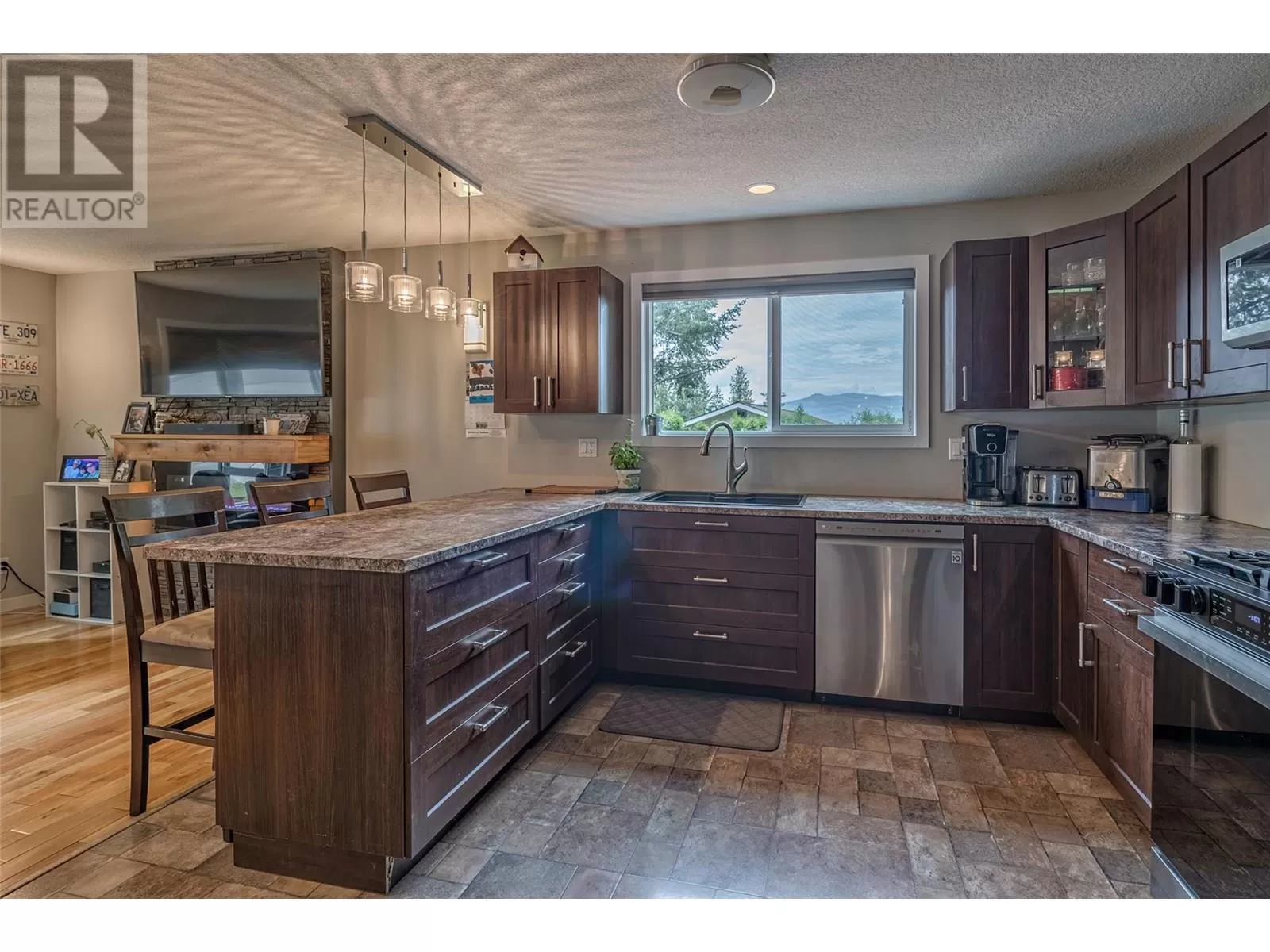 Welcome Home to your private RURAL RETREAT loaded with UPDATES including new roof, AC, kitchen & bathroom renos and so much more! This 3 bedroom, 3 bathroom RANCHER with walkout basement is set on a beautiful, park like, 10k sq ft lot in the McLeod Subdivision on a no-thru road. Main living area is open concept with bright large windows, hardwood floors and cozy stone fireplace. Kitchen with stunning mountain views and new high-end appliances has easy access to the NEW huge, wrap around deck with impressive, vaulted, post & beam roof structure perfect for all season entertaining and summer BBQS. Primary bedroom is spacious with renovated full ensuite. Lower level complete with large family room, games area, bedroom, bathroom/laundry room, storage & sauna. Enjoy great outdoor living in the privacy of a backyard surrounded by mature trees and hosting a relaxing gazebo and fire pit area. The exterior of this home has been completely updated including retained side yard for RV parking. This amazing property is a must see. You won't be disappointed. Ask for a full list of all the updates. (id:27476)