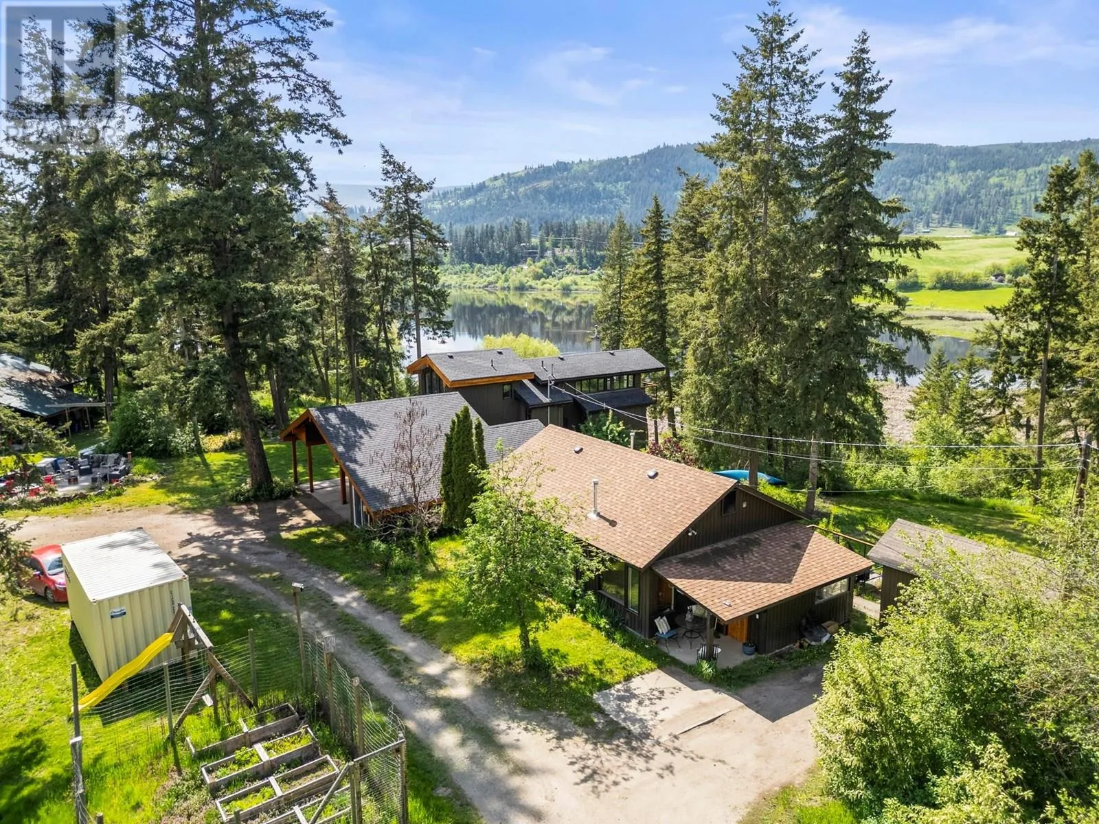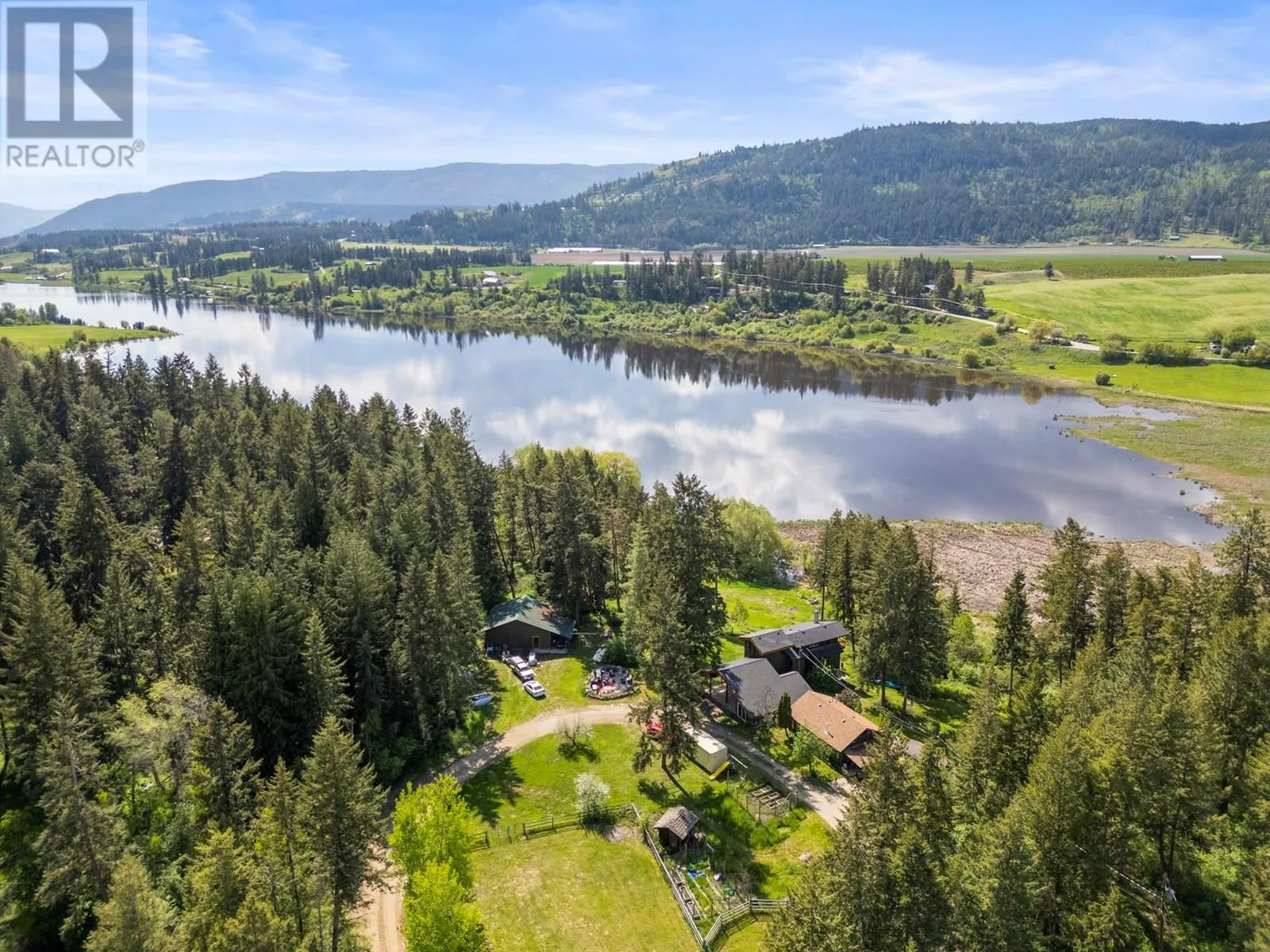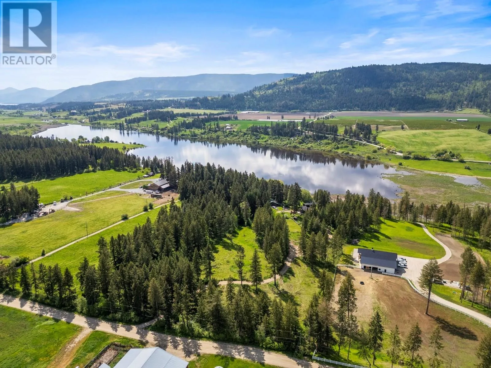 A rare opportunity on the shores of Otter Lake! This architecturally designed 8.3-acre property offers 350 feet of lakefront, a 900 sq. ft. powered shop, and a self-contained 1-bed suite. The home is thoughtfully crafted to maximize natural light and temperature control, with new ceiling insulation, vaulted ceilings, and expansive windows that capture stunning lake views. Rich wood finishes, an open-concept layout, and a cozy gas fireplace create a warm, inviting space. The primary suite occupies the upper level with its own deck, walk-in closet, and ensuite. A second bedroom and den are found on the walkout lower level. Outdoors, enjoy a massive wraparound deck, a covered front patio, fenced pastures, a 70x130 riding arena, 2-car carport, and plenty of RV parking. Ideal for equestrians, hobbyists, or floatplane enthusiasts with direct lake access. Whether relaxing on the dock or hosting guests, this one-of-a-kind lakefront retreat in Spallumcheen offers unmatched tranquility and versatility. (id:27476)