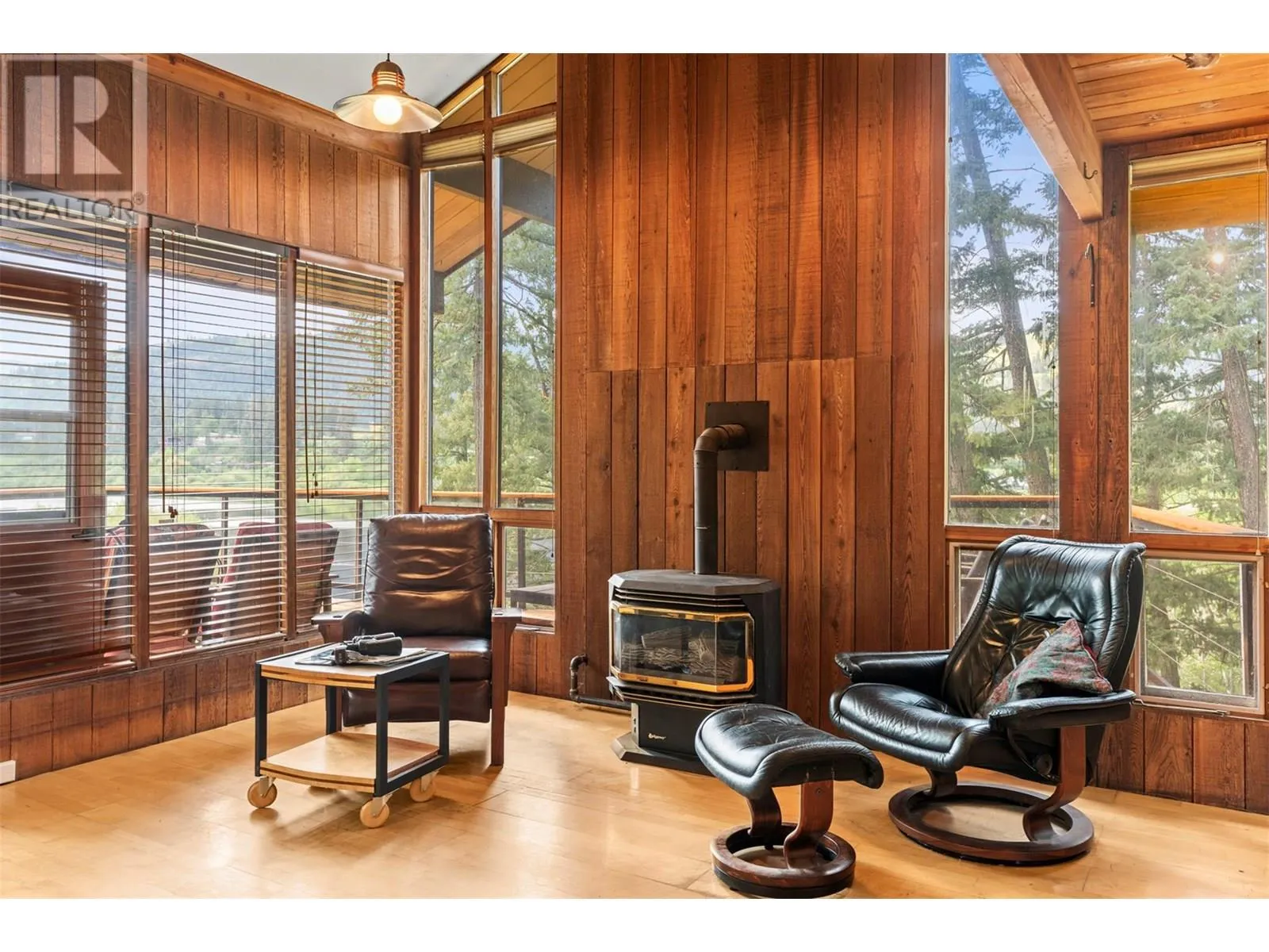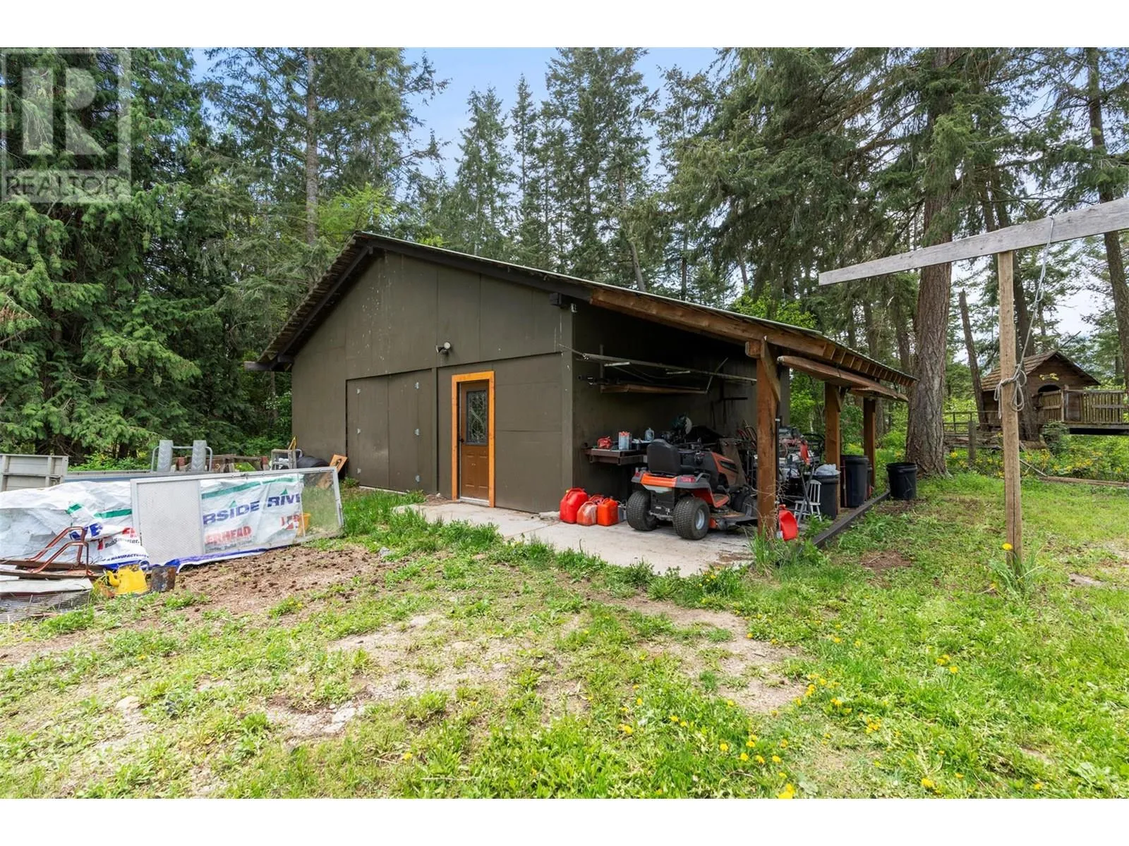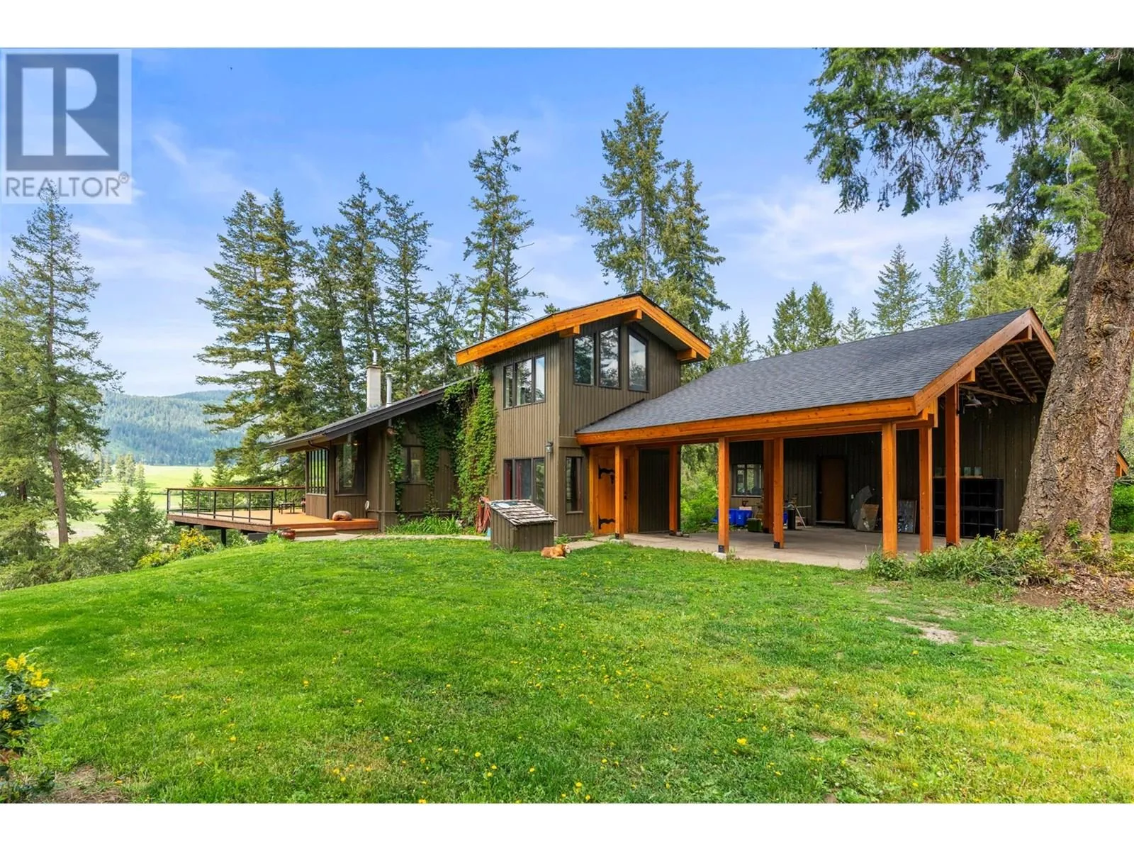A rare opportunity on the shores of Otter Lake! This architecturally designed 8.3-acre property offers 350 feet of lakefront, a 900 sq. ft. powered shop, and a self-contained 1-bed suite. The home is thoughtfully crafted to maximize natural light and temperature control, with new ceiling insulation, vaulted ceilings, and expansive windows that capture stunning lake views. Rich wood finishes, an open-concept layout, and a cozy gas fireplace create a warm, inviting space. The primary suite occupies the upper level with its own deck, walk-in closet, and ensuite. A second bedroom and den are found on the walkout lower level. Outdoors, enjoy a massive wraparound deck, a covered front patio, fenced pastures, a 70x130 riding arena, 2-car carport, and plenty of RV parking. Ideal for equestrians, hobbyists, or floatplane enthusiasts with direct lake access. Whether relaxing on the dock or hosting guests, this one-of-a-kind lakefront retreat in Spallumcheen offers unmatched tranquility and versatility. (id:27476)
