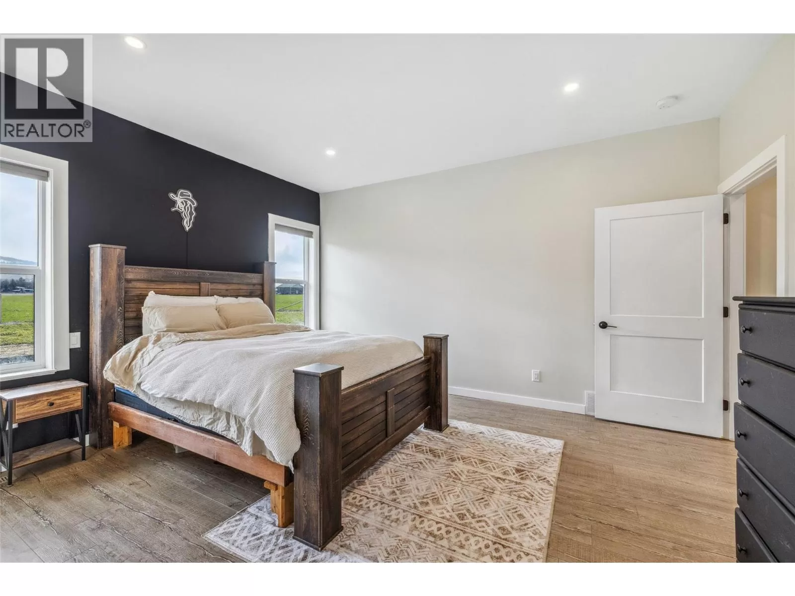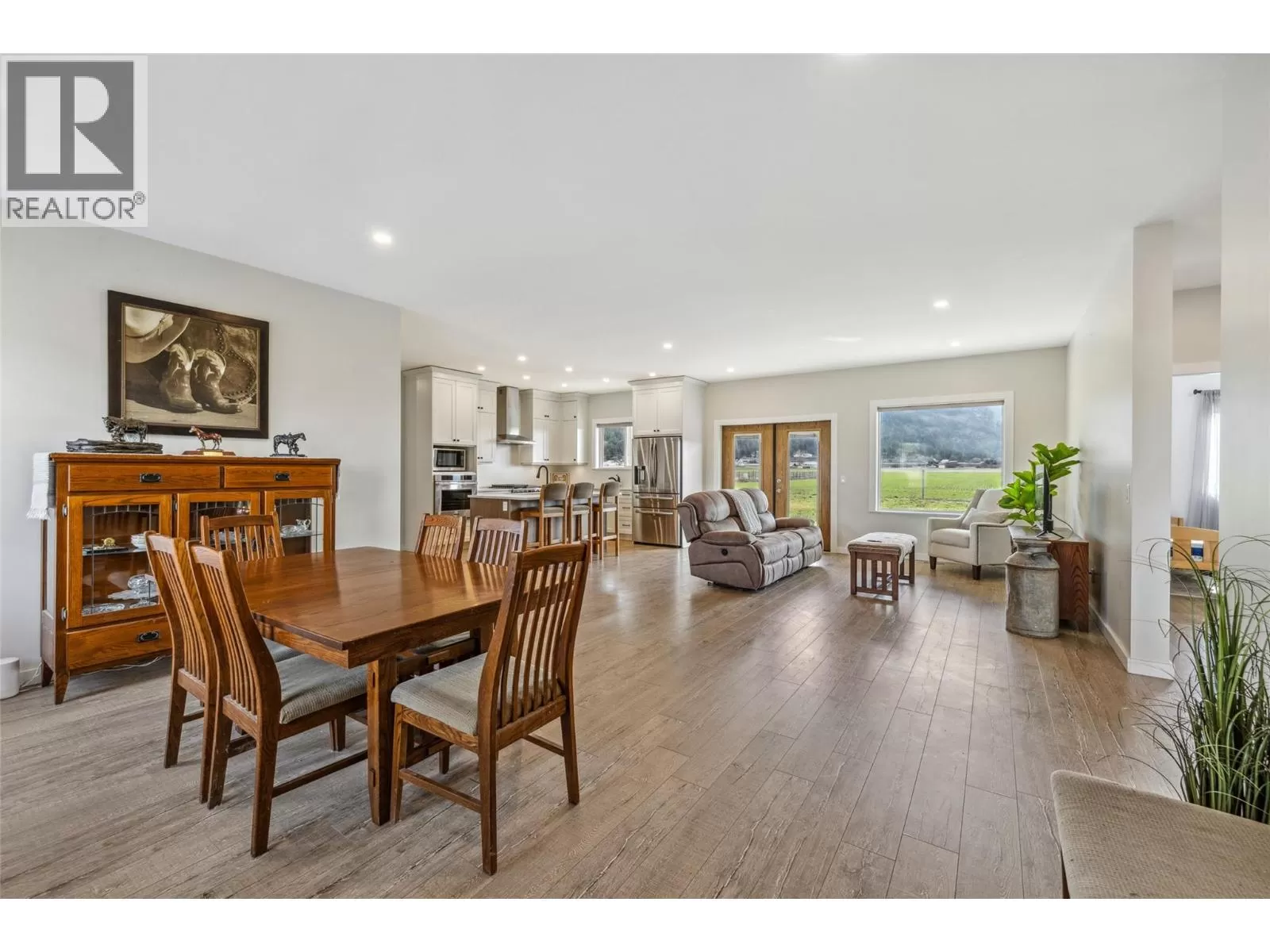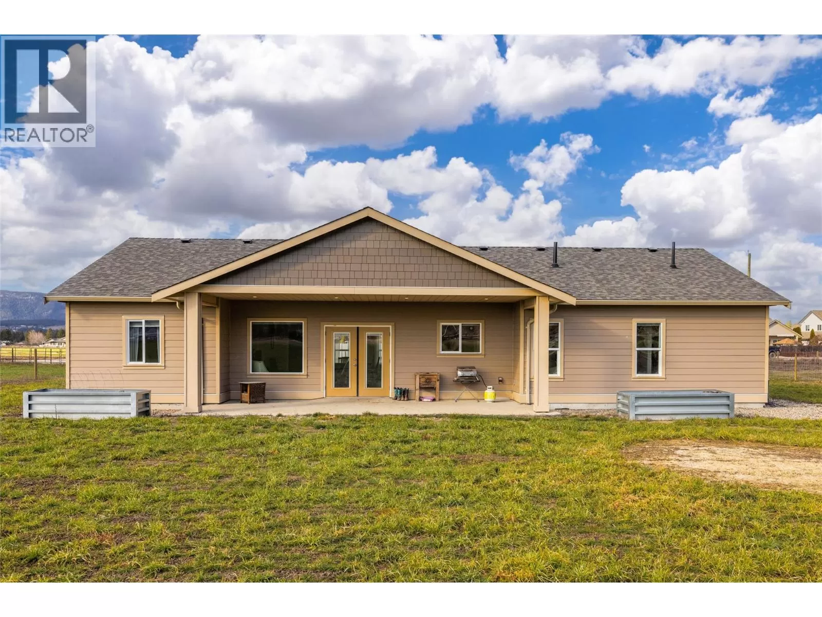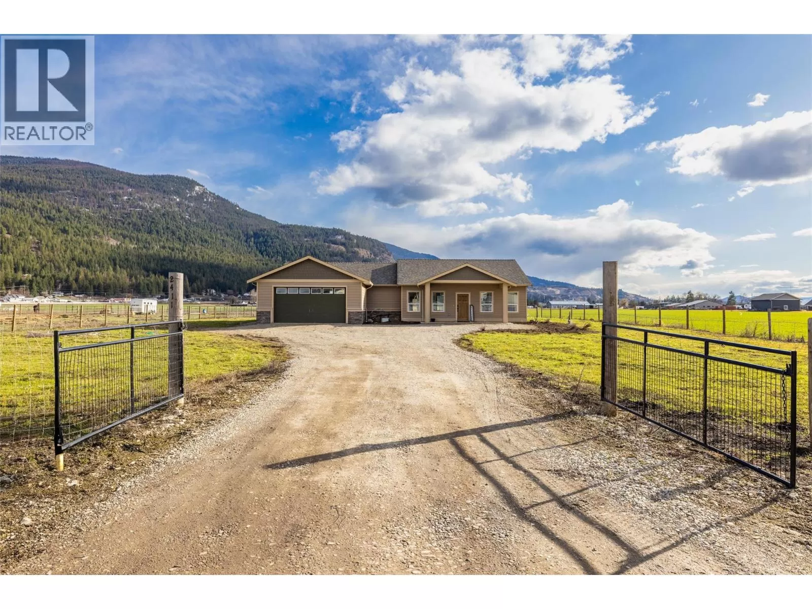 Seize the chance to embrace the Armstrong lifestyle with this remarkable 9.95-acre property, offering a perfect blend of tranquil country living and close proximity to town amenities. Set on flat, fully usable land, this expansive acreage is a dream for horse enthusiasts or anyone craving wide-open spaces, privacy, and breathtaking views under vast skies. Whether you envision a thriving equestrian estate or a retreat, this property delivers the space. This newer, freshly painted rancher-style home combines modern elegance with timeless farmhouse charm. With 3 spacious bedrooms and 3 bathrooms, it offers comfort and style for the whole family. Designed for accessibility, this wheelchair-adapted home seamlessly connects to inviting outdoor living spaces, perfect for quiet mornings on the sunlit patio with panoramic countryside views. The open layout and abundant light create a warm, welcoming atmosphere for all. Equestrian dreams come alive with a permitted barn, thoughtfully built with a concrete surround foundation for easy conversion into a stunning standalone home or suite. Equipped with a separate hydro meter, it requires only a septic system to complete the transformation. The barn includes 3 stalls, ample storage, and a large riding arena, ideal for training or turnout. The flat land is perfect for horses to roam and graze. Note that some fence panelling is not included. For added versatility, the garage can be converted into a separate suite, offering potential for additional living space or rental income. This property isnât just a home, itâs a lifestyle, designed for both people and animals. From serene sunrises to starry nights, this acreage invites you to create your ultimate rural retreat. (id:27476)