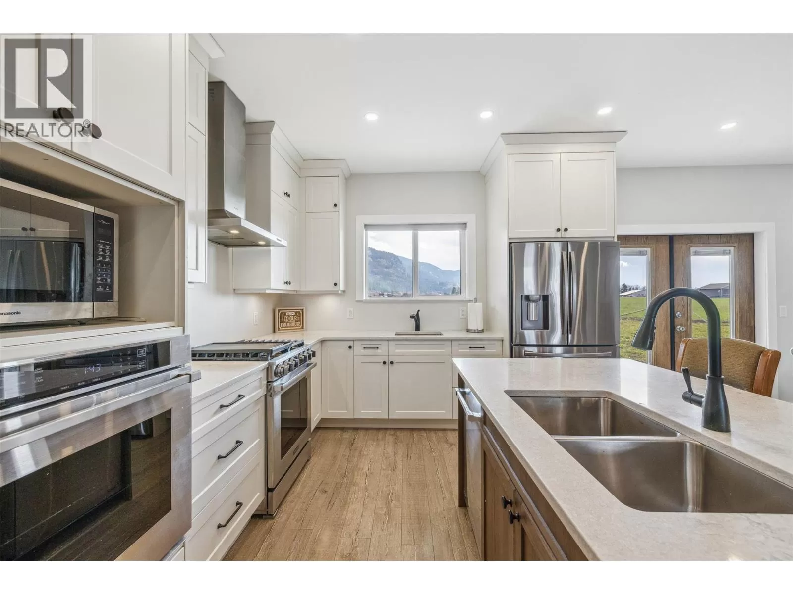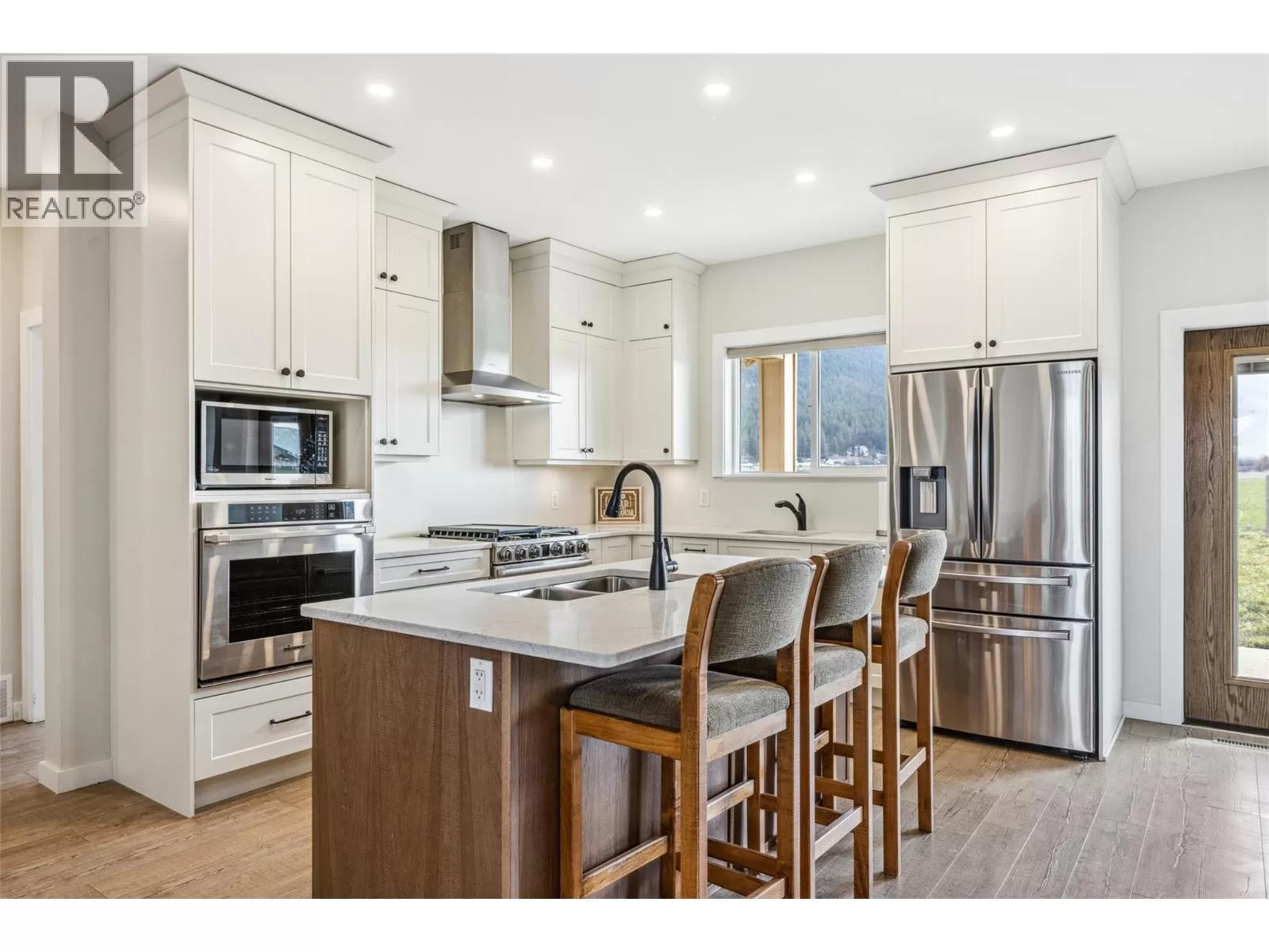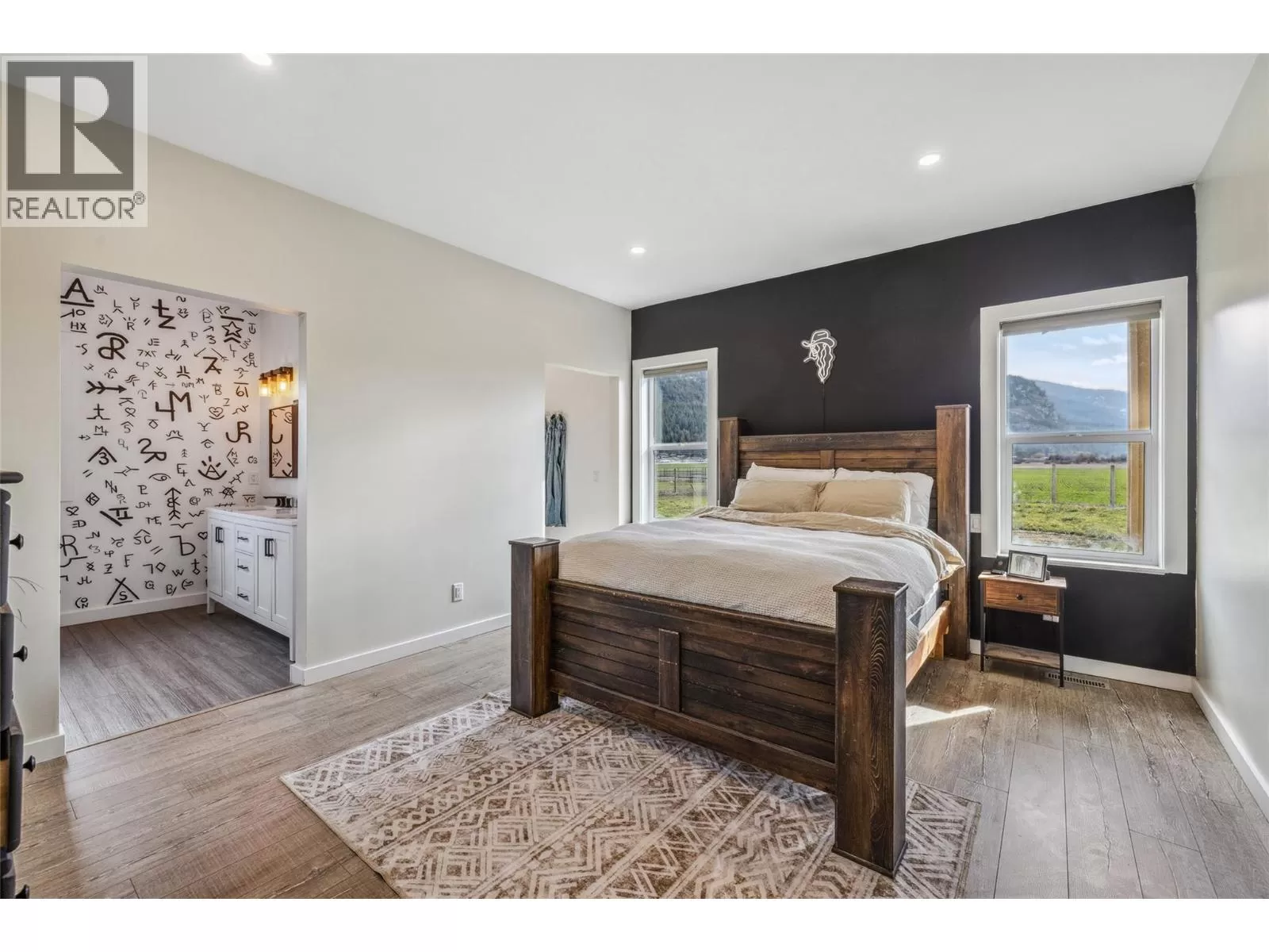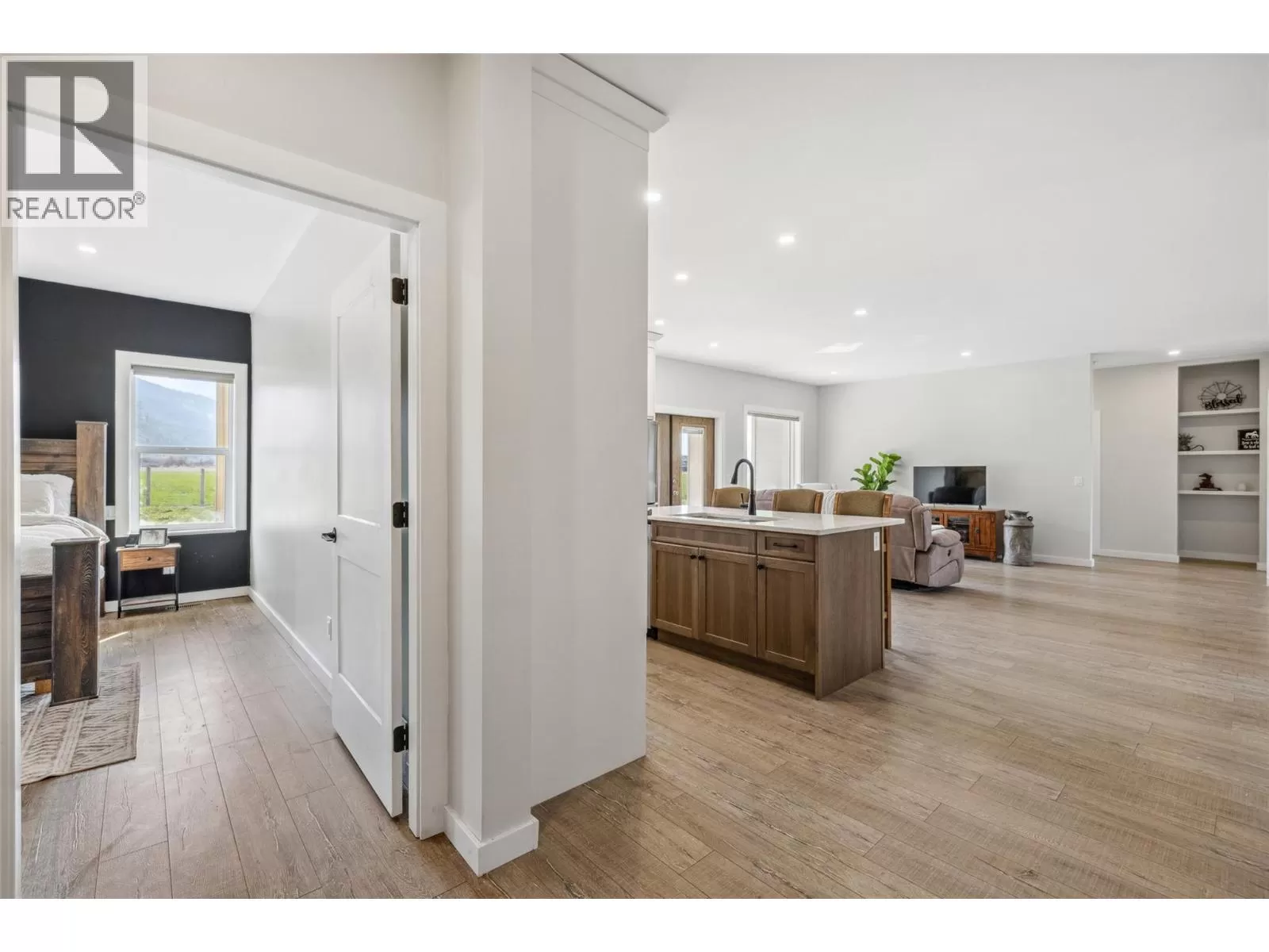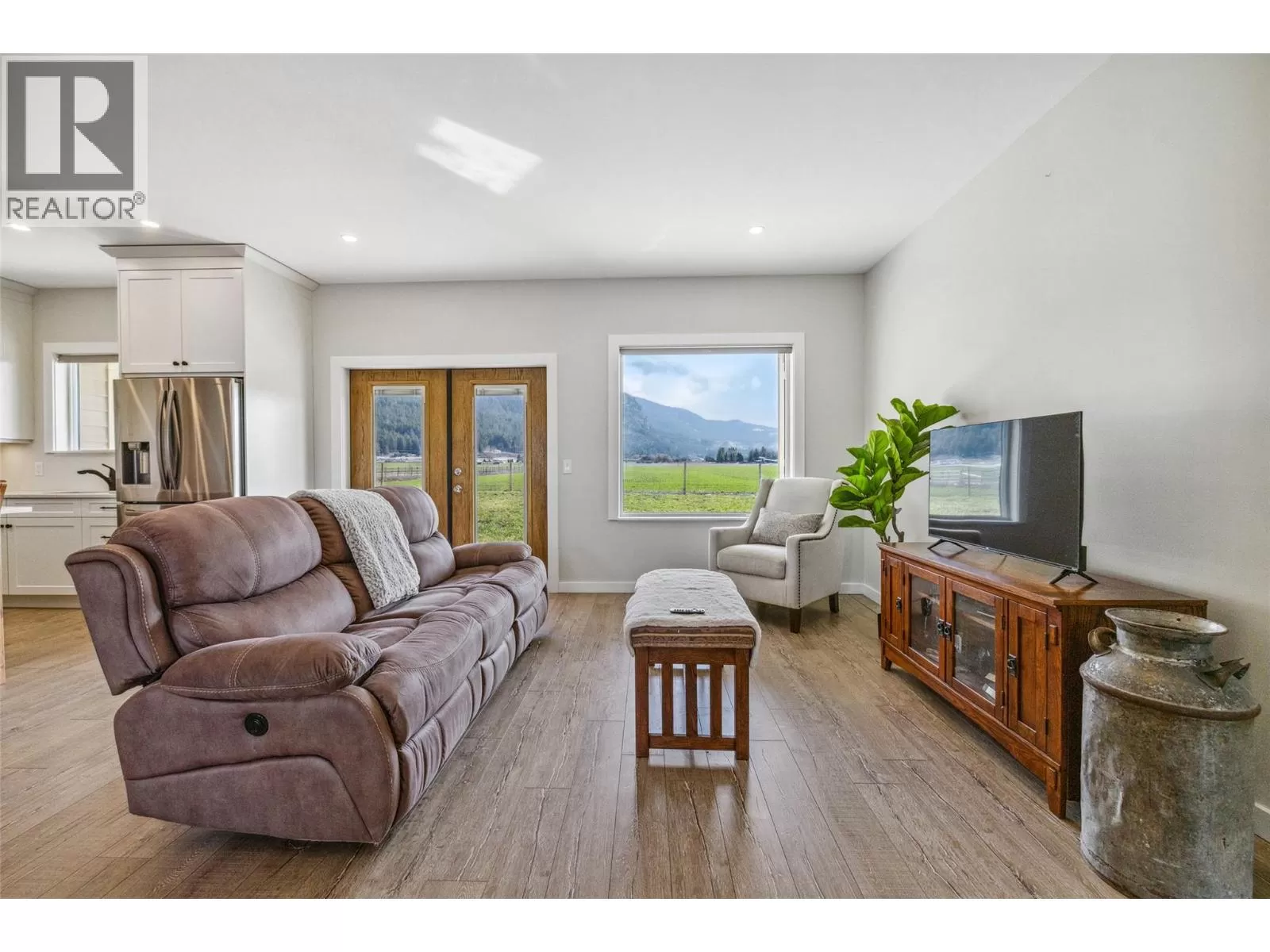 Seize the chance to embrace the Armstrong lifestyle with this remarkable 9.95-acre property, offering a perfect blend of tranquil country living and close proximity to town amenities. Set on flat, fully usable land, this expansive acreage is a dream for horse enthusiasts or anyone craving wide-open spaces, privacy, and breathtaking views under vast skies. Whether you envision a thriving equestrian estate or a retreat, this property delivers the space. This newer, freshly painted rancher-style home combines modern elegance with timeless farmhouse charm. With 3 spacious bedrooms and 3 bathrooms, it offers comfort and style for the whole family. Designed for accessibility, this wheelchair-adapted home seamlessly connects to inviting outdoor living spaces, perfect for quiet mornings on the sunlit patio with panoramic countryside views. The open layout and abundant light create a warm, welcoming atmosphere for all. Equestrian dreams come alive with a permitted barn, thoughtfully built with a concrete surround foundation for easy conversion into a stunning standalone home or suite. Equipped with a separate hydro meter, it requires only a septic system to complete the transformation. The barn includes 3 stalls, ample storage, and a large riding arena, ideal for training or turnout. The flat land is perfect for horses to roam and graze. Note that some fence panelling is not included. For added versatility, the garage can be converted into a separate suite, offering potential for additional living space or rental income. This property isnât just a home, itâs a lifestyle, designed for both people and animals. From serene sunrises to starry nights, this acreage invites you to create your ultimate rural retreat. (id:27476)