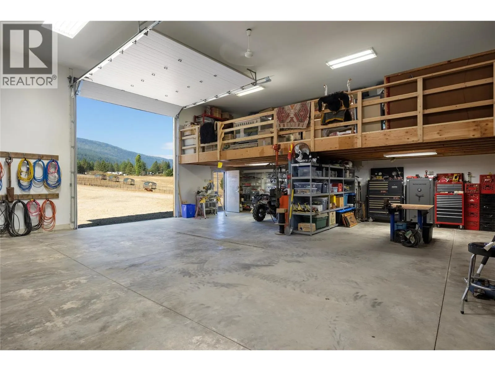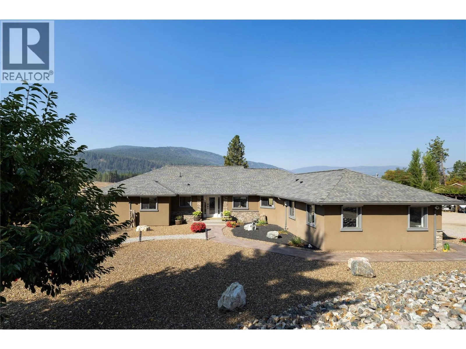Discover your Private Oasis! This spectacular 4-bed + bonus room home sits on 9.32 fenced acres and features excellent value and top-notch improvements for the equestrian or serious hobbyist. The Main Home: Luxury & Comfort: Elegant living with hardwood/tile, 4 fireplaces, and a gourmet kitchen with granite countertops. The primary suite is a true retreat with an 11-ft ceiling, fireplace, and a luxurious 5-pc ensuite. Security cameras, automatic outdoor blinds, and a whole-property water filtration system provide peace of mind. The Ultimate Shop/Suite Combo: A massive 40x60' Dream Shop with 16-ft ceilings, mezzanine, and 2 - 200 AMP panels, is a business owner's dream. ENHANCED & IMPROVED: The shop features a self-contained 1-bedroom suite that is now fully enclosed, recently upgraded, and includes a private entranceâperfect for employees, guests, or income potential! New Equine & Hobby Infrastructure: Enjoy a 4-stall shed row, 3 double-sided automatic waterers for 6 paddocks, and 2 all-weather hydrants. Plus a riding arena, chicken coop, dog kennel, garden shed, and a 3-sided 'toy shed'. Located on a quiet dead-end paved road near Armstrong/Vernon. This property has it allâdon't miss this opportunity! Contact Michelle today to schedule a viewing. (id:27476)
