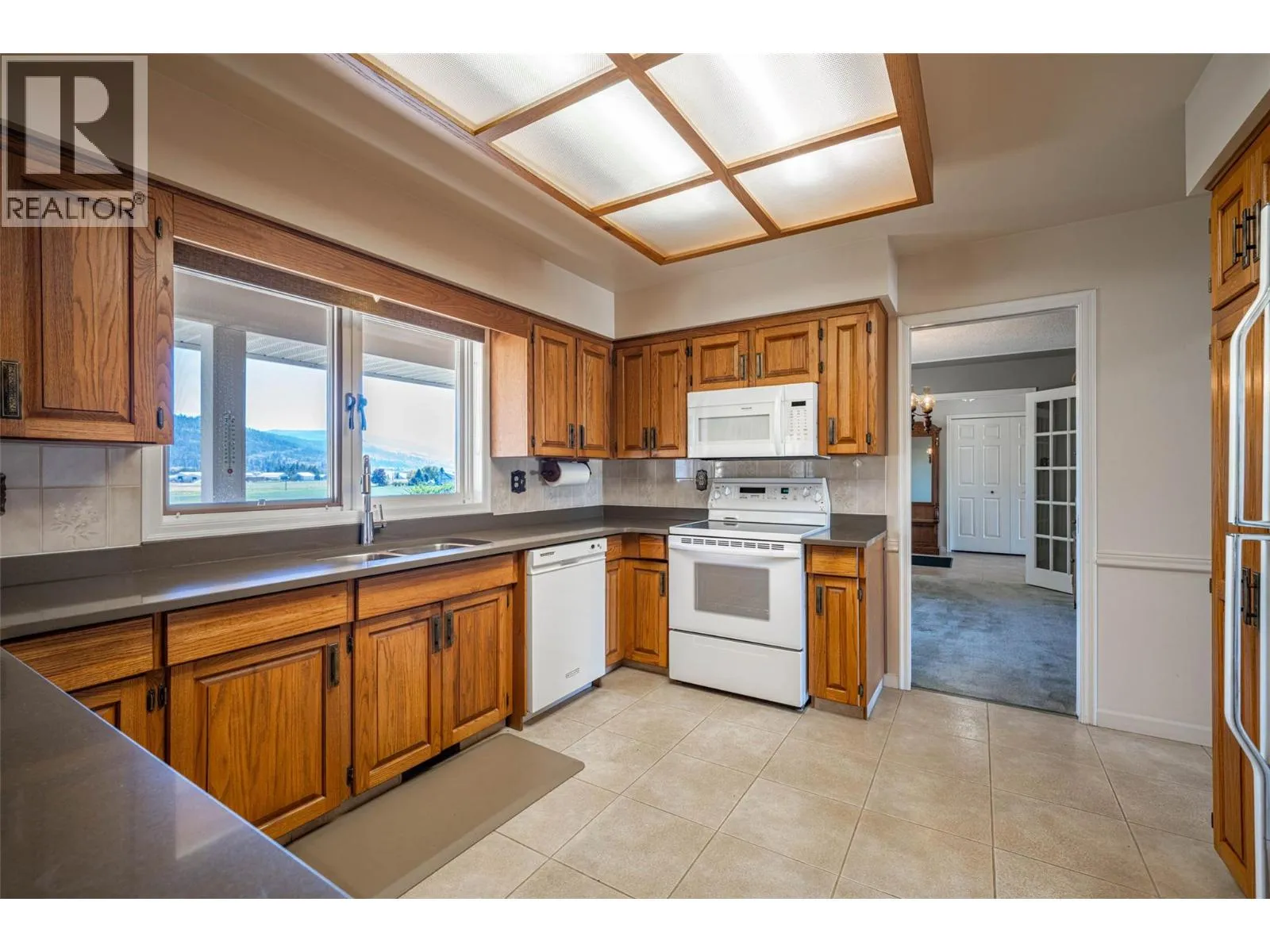 Rarely does a property like this come on the market. 61 farmable acres with a large rancher style 5 bed/3.5 Bath home with a full partially finished walkout basement. This productive land is 90% level. Outbuildings include a terrific Shop - 30'x36' with 14' ceiling and 12' roll up door. The next building of significance is the Haybarn - 34'x72' with 2-lean-to's 20'x72' used for Machinery Storage. The Main level of the home has a large foyer entrance with a very functional kitchen with an adjoining dining room and eating nook, a 2 piece bath and laundry are located close by. There is a sunken living room featuring a brick fireplace. On the other side of the 2 sided fireplace is a family room where you can relax and enjoy a natural wood fire. Down the hall you will find 2 good sized bedrooms and a full bathroom. Also at this end of the home is the large primary suite with walk-in closet and 3 pce bath. The attached Garage 23'x30' will accommodate 2 full sized vehicles. Downstairs is a recreation/media room with direct access to a covered patio. 2 other bedrooms are down here with a 3 pce bath at the end of the hall. There is plenty of unfinished storage which could be easily converted into more living space. Power is supplied by a 400 amp service with heat provided by an electric / wood combination furnace, which could easily be converted to a heat pump- A/C system. Domestic water provided by Larkin Water District. Located in a very desirable area between Vernon and Armstrong. (id:27476)
