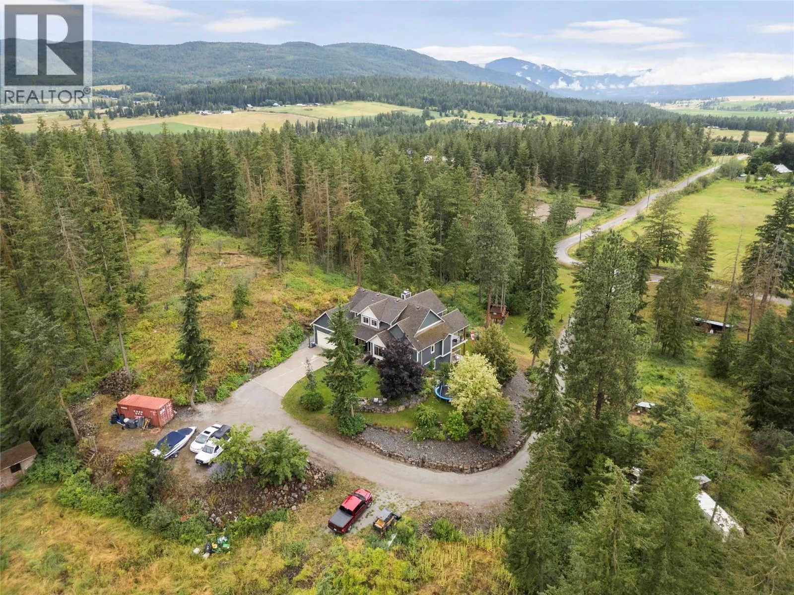 Set on 2.5 acres with sweeping west-facing views, 4322 Sharp Road delivers the kind of small acreage lifestyle that just worksâspace, privacy, and a smart layout for real life. This custom-built, three-level home offers over 4,000 sq. ft. of flexible living space. On the main floor, youâll find the primary bedroom with full ensuite, plus an additional bedroom or officeâideal for guests or remote work. The open-concept kitchen, dining, and living area is filled with natural light from oversized windows and extended ceilings, perfectly positioned to take in those valley views. Upstairs offers two more bedrooms, a full bath, and a loft-style flex spaceâgreat as a kidsâ zone or home library. Downstairs, the fully finished basement is roughed in for a suite, complete with two bedrooms, a full bathroom, huge entertainment area, laundry, and a plumbed wet bar that could easily convert into a kitchen. Separate access makes it a solid option for extended family or mortgage helper potential. Outside, thereâs more than enough room to build a shop on the lower portion of the property, plus plenty of parking for all your extras. Tucked on a quiet no-thru road just seven minutes from Armstrong, this property strikes a rare balance: peaceful, private, and still close to everything that matters. (id:27476)