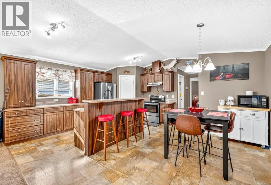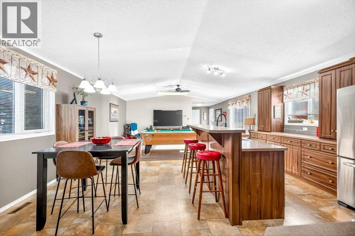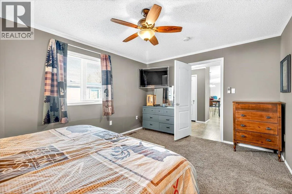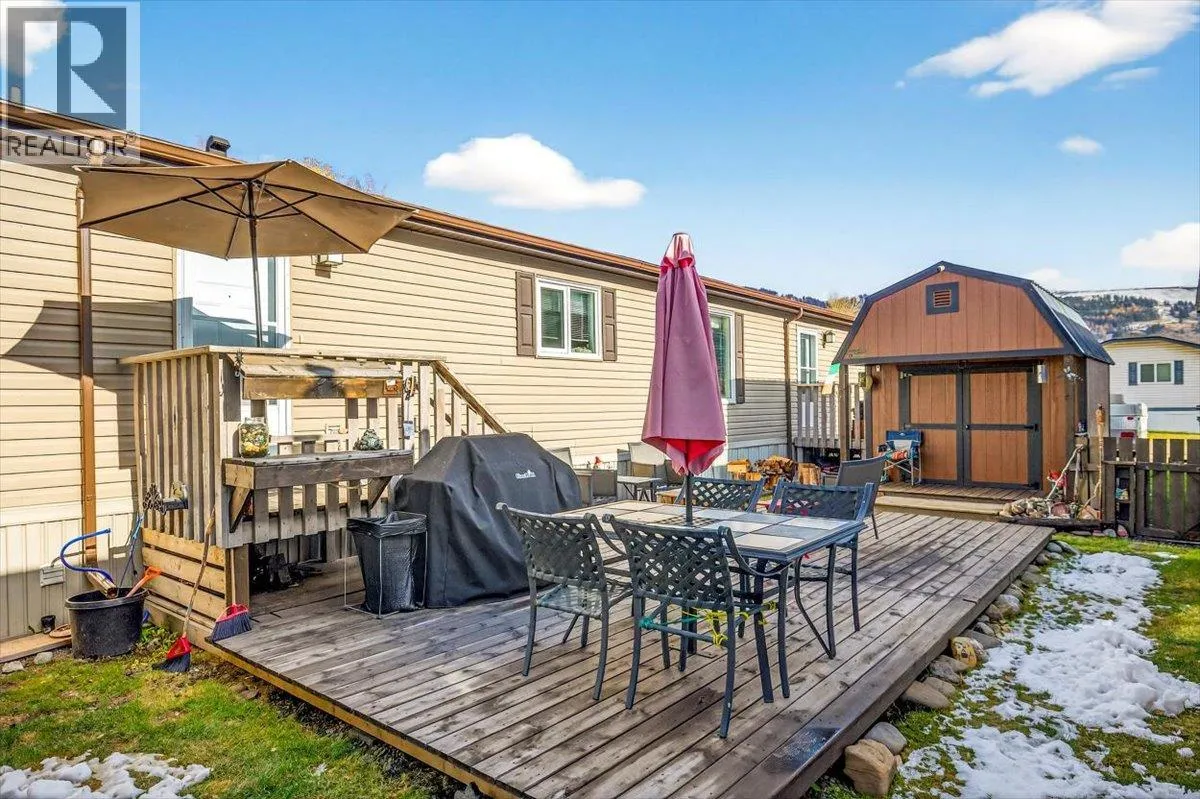 From the moment you step inside, this home feels differentâopen, bright, and designed for real living. With nearly 1,500 sq. ft. of space, this A277 modular build offers the size, quality, and comfort of a house with the ease of park living. The main living area is the heart of the home, featuring an inviting flow between the kitchen, dining, and living spaces. Ideal for nights in or entertaining. Thereâs no shortage of storage with loads of cupboards and a huge walk-in pantry with lighting. At one end, youâll find two generous bedrooms and a full bath, ideal for family or guests. At the other, a spacious primary suite offers a true retreat with a walk-in closet and private ensuite. Every inch of this home has been meticulously cared for, showing like new inside and out. Outside, enjoy the 16 x 24 deck, fully fenced yard, and an impressive 10 x 16 shedâinsulated, wired with 60-amp power, HDMI plugs, hard-wired cameras, and a loft for extra storage above a covered porch. Paved parking fits four vehicles plus room for up to a 26' trailer. Located in Mountain View Mobile Home Park, this is one youâll want to see for yourselfâreach out to your favourite agent; to schedule a showing today! (id:27476)