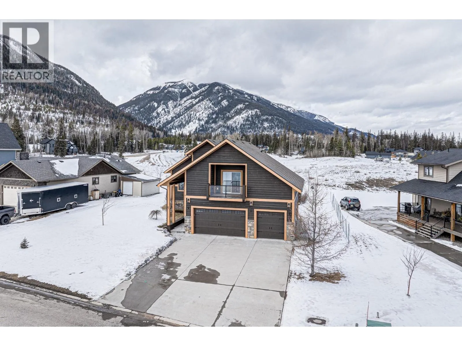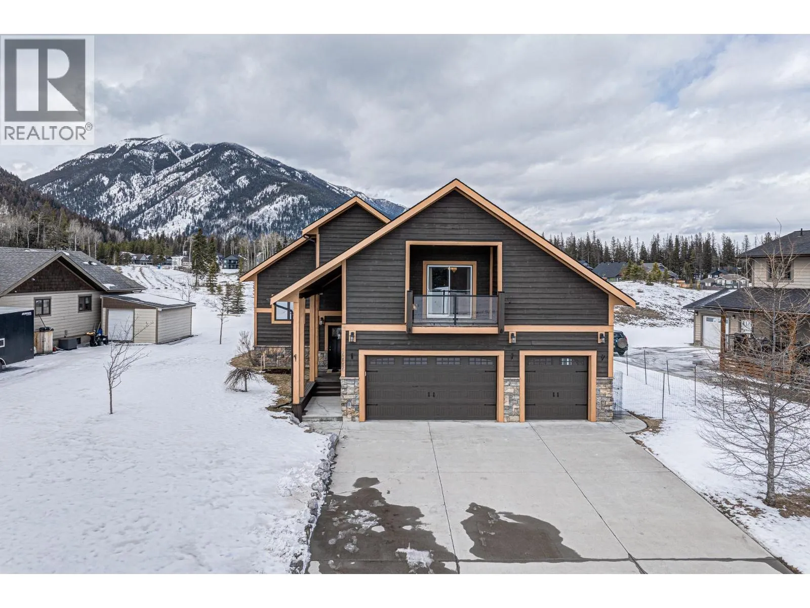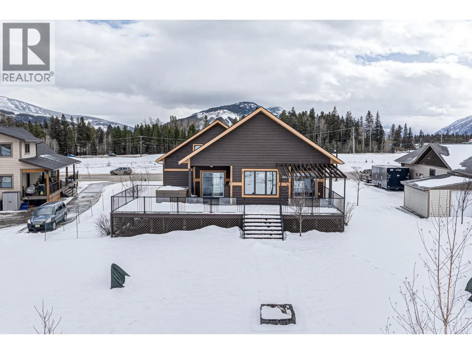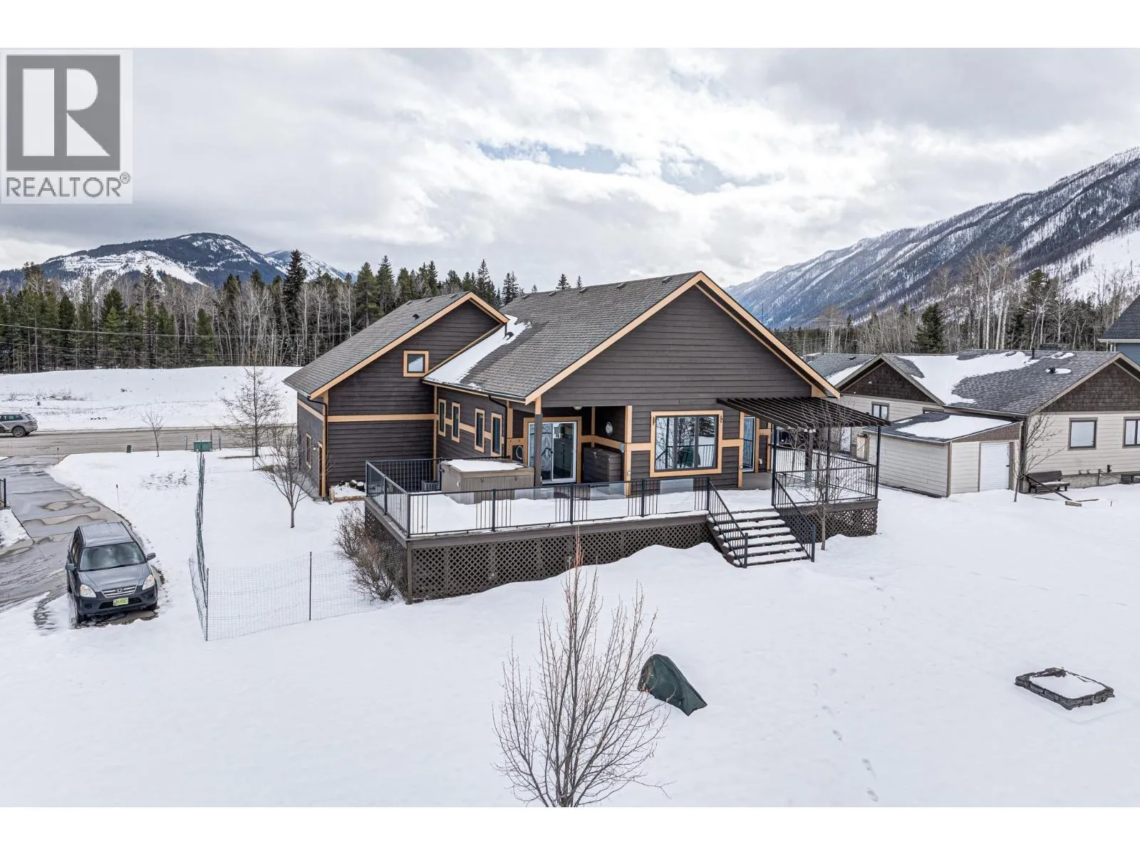 Welcome to this beautifully crafted custom home in the highly sought-after Whiskey Jack Estates, where elevated mountain living meets thoughtful design. Set on a generous .33-acre lot backing onto greenspace, this 4-bedroom, 3-bath residence offers space, privacy, and exceptional lifestyle. The expansive main living area features vaulted wood ceilings and a cozy gas fireplace, creating a warm, inviting atmosphere. Seamless access to the covered rear deck â complete with hot tub and mountain views â extends everyday living outdoors, while a secondary sitting area adds flexibility. The fresh white kitchen is both timeless and functional, showcasing granite countertops, tile backsplash, gas range, and effortless flow into the dining area. The main level also offers a bedroom with direct deck access, full bath, and convenient main-floor laundry. Upstairs, a versatile landing provides the perfect office or reading nook. The primary suite is a true retreat with wood ceilings, private balcony, two walk-in closets, and a spa-inspired ensuite featuring double vanities, soaker tub, and separate shower. The bright lower level offers in floor heating and excellent flexibility with a private in-law space, separate entrance, spacious living area with wet bar, two generous bedrooms with walk-in closets, and full bath â ideal for extended family, guests, teens, or home business. A triple-car garage with in floor heating supports year-round comfort for mountain gear and projects, while the fully landscaped yard features a firepit and stunning mountain views. A rare opportunity to enjoy space, versatility, and the Elk Valley lifestyle. Book your private tour today. (id:27476)
