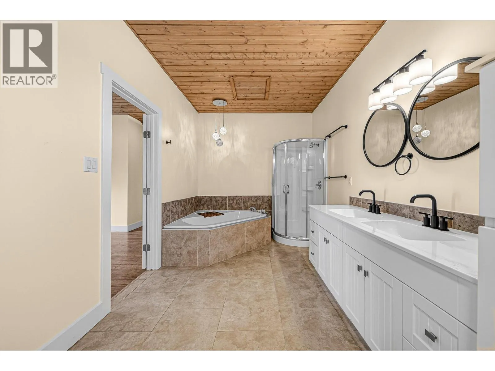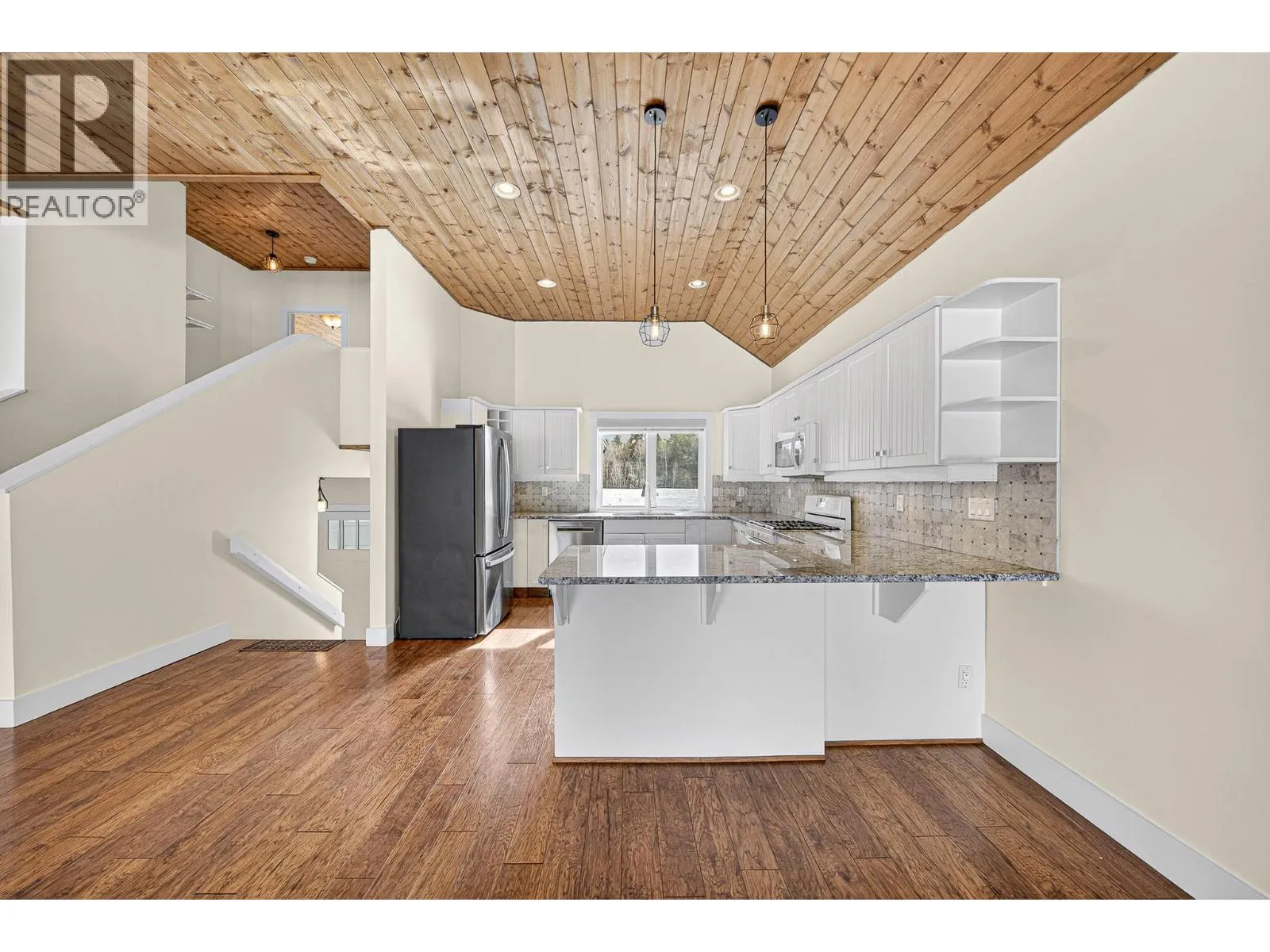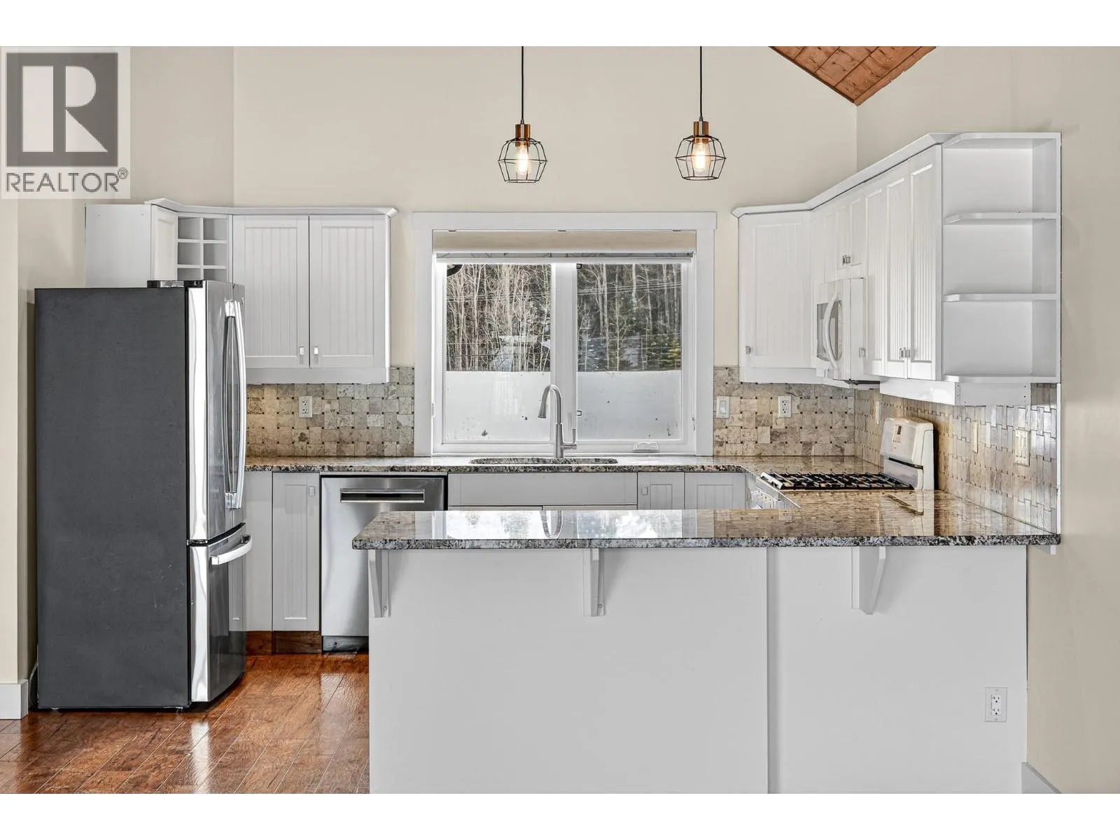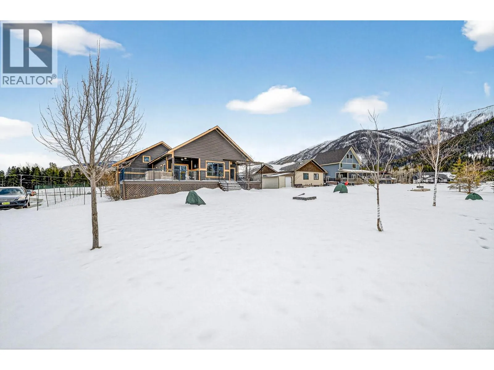 Welcome to this beautifully crafted custom home in the highly sought-after Whiskey Jack Estates, where elevated mountain living meets thoughtful design. Set on a generous .33-acre lot backing onto greenspace, this 4-bedroom, 3-bath residence offers space, privacy, and exceptional lifestyle. The expansive main living area features vaulted wood ceilings and a cozy gas fireplace, creating a warm, inviting atmosphere. Seamless access to the covered rear deck â complete with hot tub and mountain views â extends everyday living outdoors, while a secondary sitting area adds flexibility. The fresh white kitchen is both timeless and functional, showcasing granite countertops, tile backsplash, gas range, and effortless flow into the dining area. The main level also offers a bedroom with direct deck access, full bath, and convenient main-floor laundry. Upstairs, a versatile landing provides the perfect office or reading nook. The primary suite is a true retreat with wood ceilings, private balcony, two walk-in closets, and a spa-inspired ensuite featuring double vanities, soaker tub, and separate shower. The bright lower level offers in floor heating and excellent flexibility with a private in-law space, separate entrance, spacious living area with wet bar, two generous bedrooms with walk-in closets, and full bath â ideal for extended family, guests, teens, or home business. A triple-car garage with in floor heating supports year-round comfort for mountain gear and projects, while the fully landscaped yard features a firepit and stunning mountain views. A rare opportunity to enjoy space, versatility, and the Elk Valley lifestyle. Book your private tour today. (id:27476)