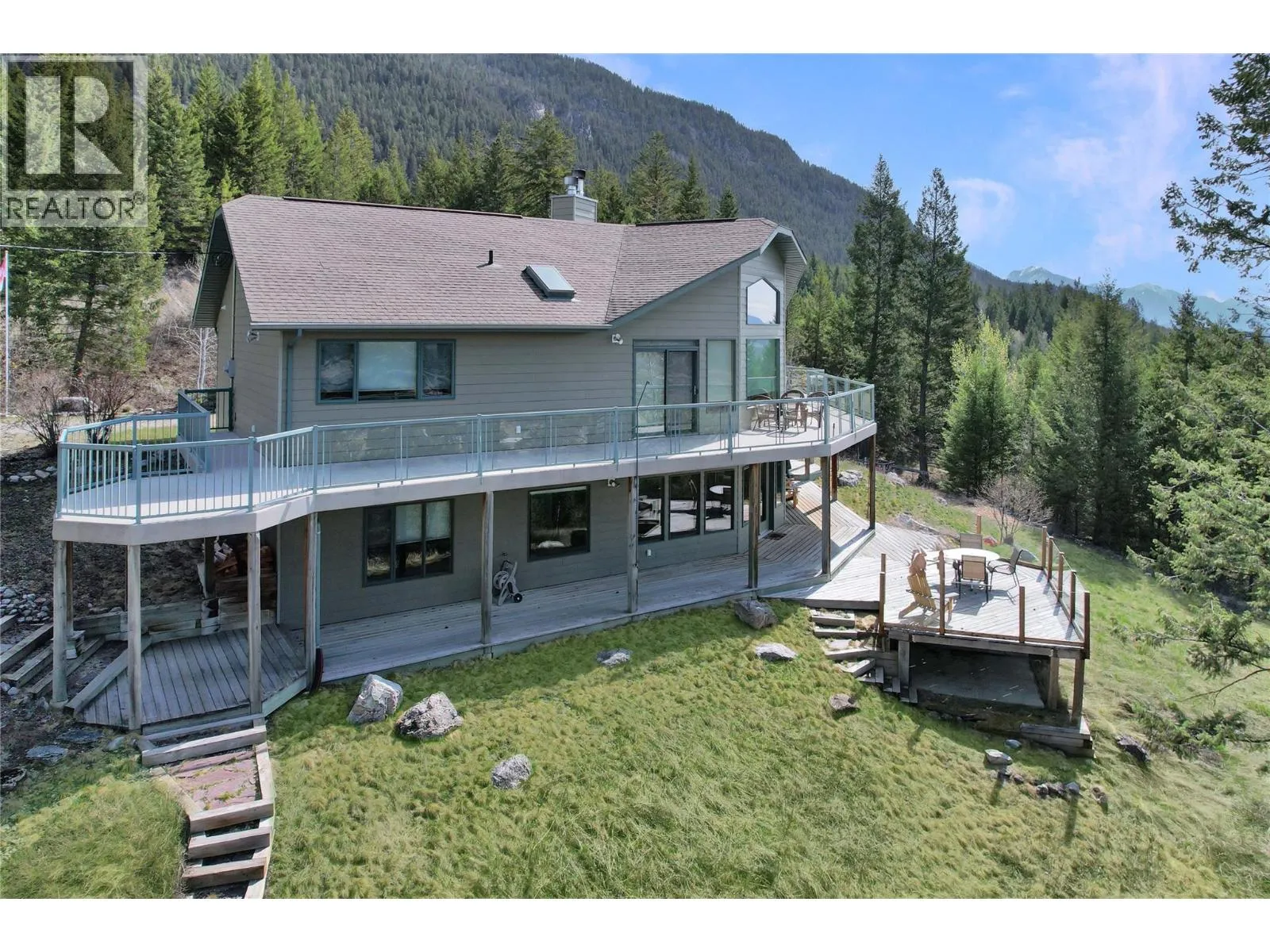 The Black Bear Ranch is a 166-acre property in the Columbia Valley, located between the towns of Invermere and Golden, 3 km north of The Brisco General Store. This private, gated, forested acreage has 2 contemporary homes, drivable trails, mountain meadows, borders Crown Land and has a seasonal creek! Easily accessed off Highway 95 by gravelled roads and situated far enough away from each other allowing for privacy. Each home has individual wells, water purification and septic systems, and hydroelectricity. Home D is 3,005 ft, over 2 floors, featuring a vaulted ceiling, a west-facing, wrap-around balcony, hardwood flooring, and an open floor plan; 2 bedrooms on each level; 3 bathrooms total, the living room & rec room each with a wood fireplace. Access the walkout patio and enjoy the gentle scent of clean fresh air. A double detached garage is just a few steps away from the front door. Home C, further from the entrance gate, has an area of 2,092 ft over 2 levels, 2 bedrooms & kitchens on each and a total of 3 full bathrooms. The upper living room is an open floor plan with great sight lines, a real wood fireplace, and a west-facing balcony with awnings. The lower level has a walk-out patio, a lovely yard, and a fenced garden. This property features 2 detached, double garages, the larger 30 x 40 is a shop with an unfinished loft. The property is located in a pristine wilderness area. The Columbia Valley Wetlands is a migratory path for birds and a winter habitat for Elk. (id:27476)