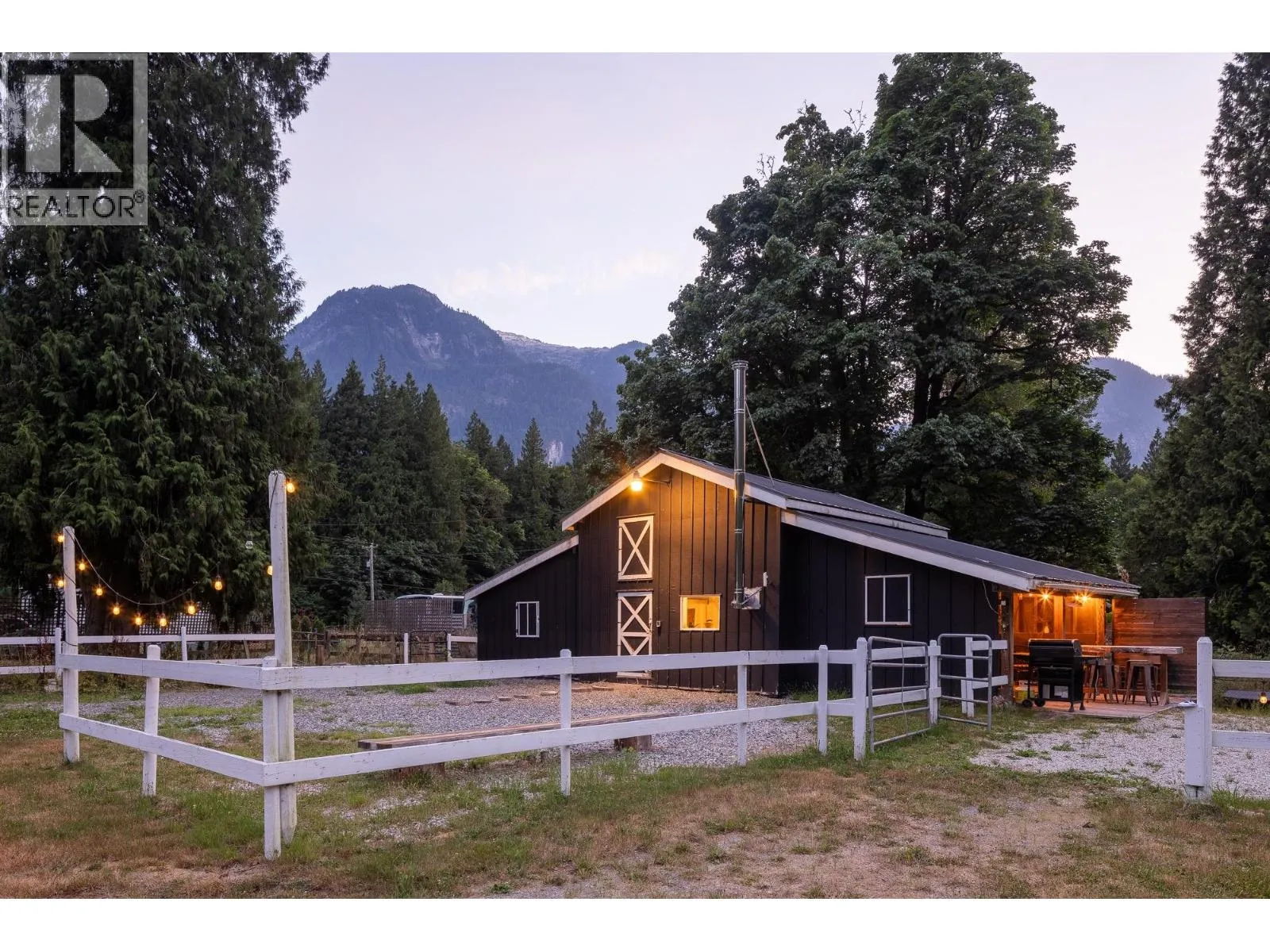 RARE offering to own an exquisite 5.8-acre lifestyle estate in Upper Squamish Valley. Bright skies, fully fenced & hugged by towering cliffs. Designed for boutique country or equestrian living with opportunities to turn into a revenue generating machine. Featuring 2 large grass horse paddocks, converted guest barn, a refined 4-bedroom main home with open-concept cottage aesthetic, two stylish guest bunkhouses, private rainforest canopies rich in lush foliage & some of the most amazing star gazing in the coast. Includes large year-round horse stable and generous covered parking for vehicles and toys. Just 20 mins to Squamish/grocery stores, and moments from countless beaches including Anderson Beach! A rustic yet elegant mountain retreat. Peaceful, wild, and beautiful - a legacy property! (id:27476)