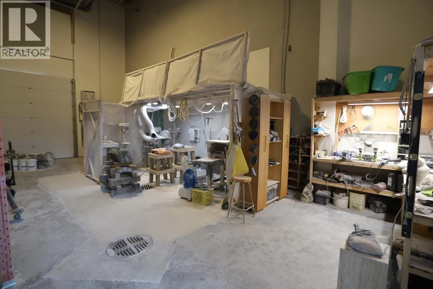 Queens Way Business Park: Centrally located in the Squamish Business Park. Great opportunity to own a warehouse without the added cost of mezzanine. Functional layout with industrial work area and showroom / office. Two bathrooms (one with shower). Warehouse has venting, floor drain (sump) and distributed 30 amp hydro receptacles in shop. Large bay door (10' x 12'), steel shelving, tool bench and kitchenette. Great lighting works well for studio display area. Call today to arrange private showing. (id:27476)