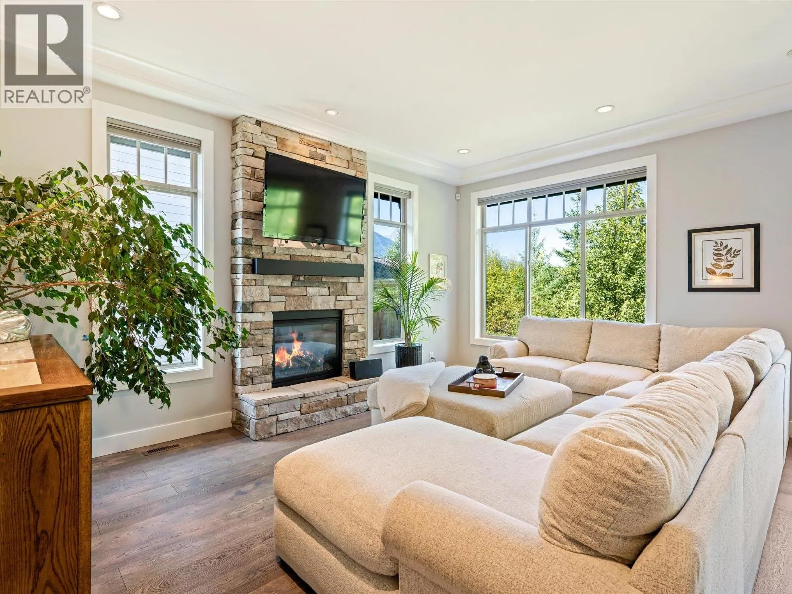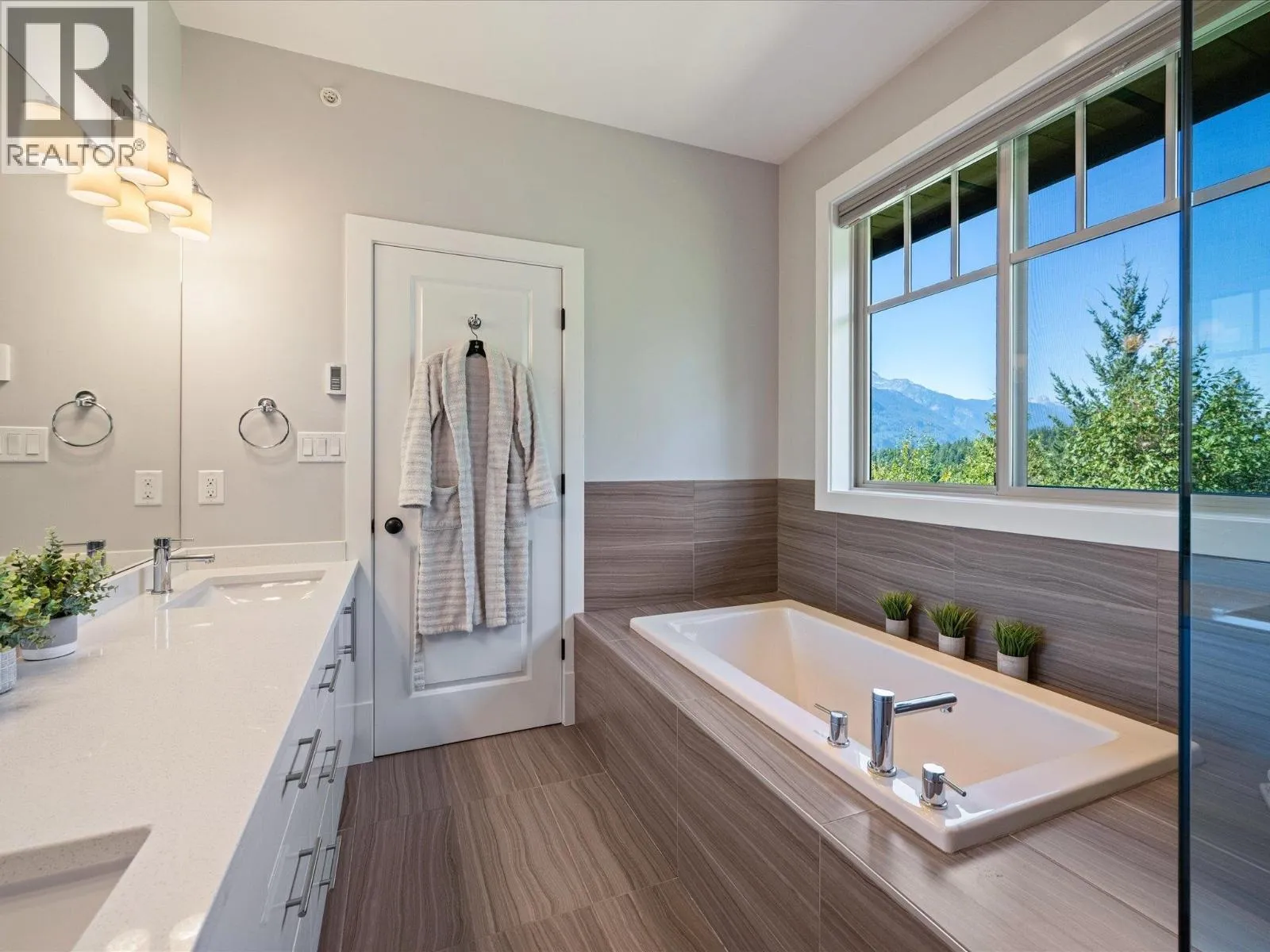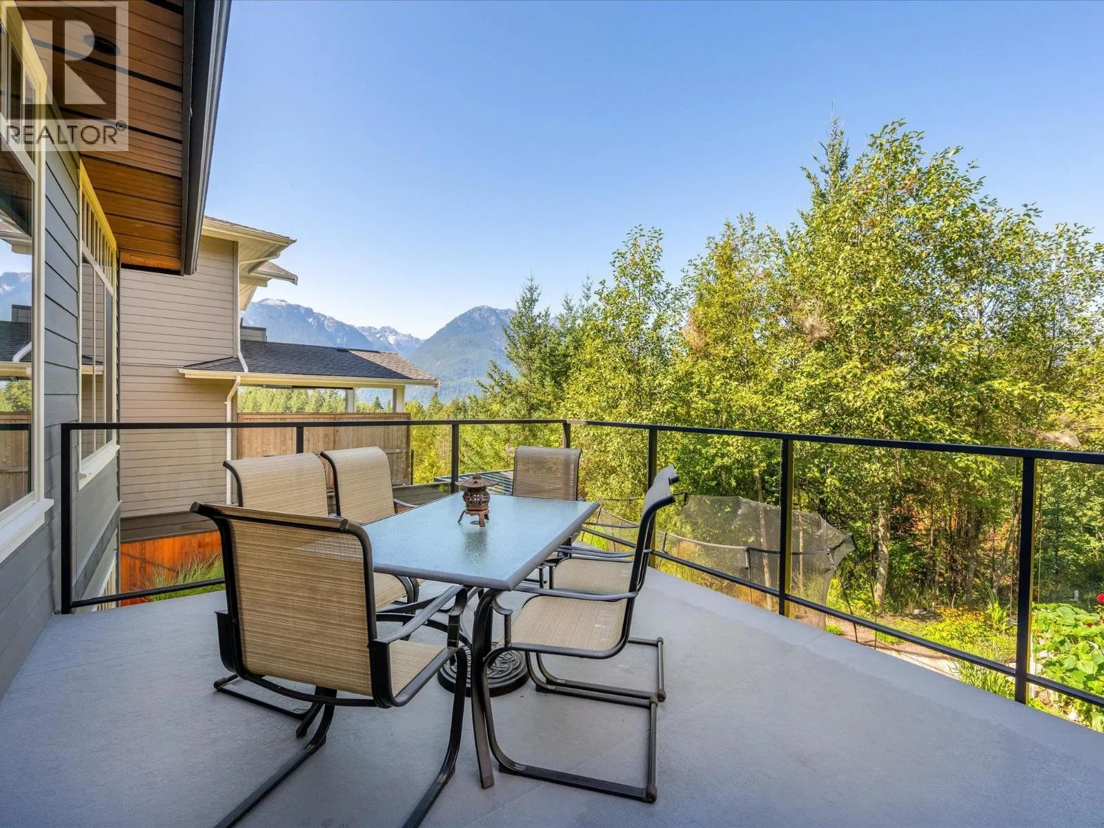 Located on one of the most coveted streets in University Highlands, this elegant 3-level home offers a rare blend of luxury, comfort, and natural beauty. Soaring ceilings and expansive windows frame breathtaking views of the Tantalus Mountain Range, filling the home with natural light. The chef-inspired kitchen features a generous island, walk-in pantry, and premium Bosch appliances-ideal for entertaining or everyday living. A main-floor bedroom and full bath provide flexibility for guests or multi-generational families. Upstairs, the primary suite is a private retreat with panoramic views, a spa-like ensuite, and a spacious dressing room. Two additional bedrooms complete the upper level. The lower level offers a versatile rec room opening to a covered patio, plus an additional bedroom and full bath-with potential to create a private suite. With Squamish´s renowned trail networks and parks just steps away, this home connects luxury living to the outdoors. SHOWINGS BY APPOINTMENT ONLY: Thurs 5-7, Sun 2-4. (id:27476)
