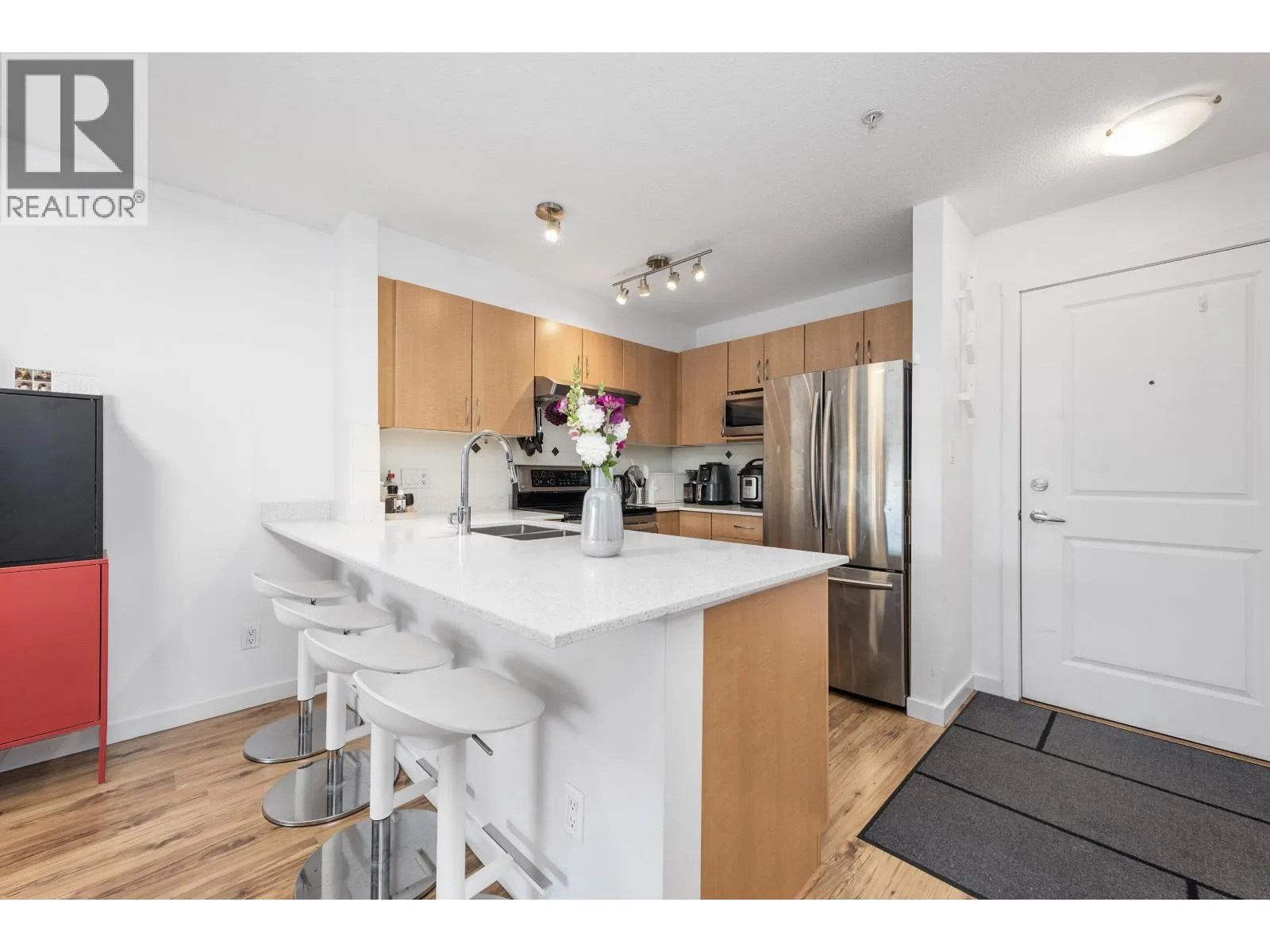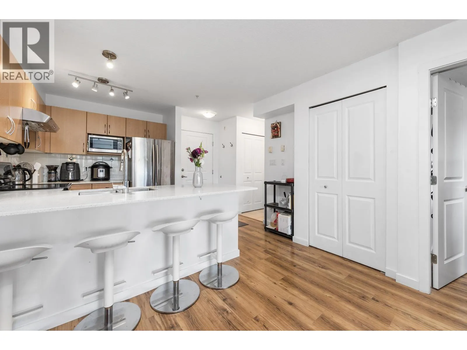 Bright and inviting 1 bed, 1 bath condo in the heart of downtown Squamish! This 628 square ft south-facing unit features a spacious layout, Caesarstone counters, stainless steel appliances, gas fireplace (gas included in fees), laminate flooring, and a deep soaker tub. Enjoy peek-a-boo views of the Chief from your large balcony. Comes with 1 parking stall and an oversized storage locker conveniently located across the hall. Steps to shops, cafes, trails, and more. A perfect fit for outdoor enthusiasts or remote workers seeking lifestyle and location! (id:27476)
