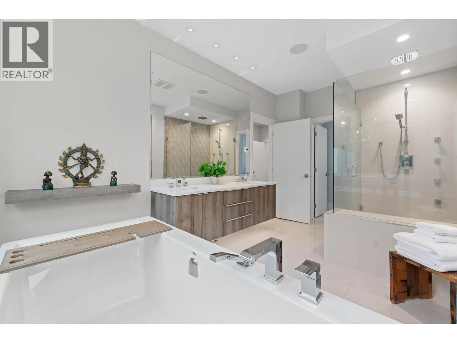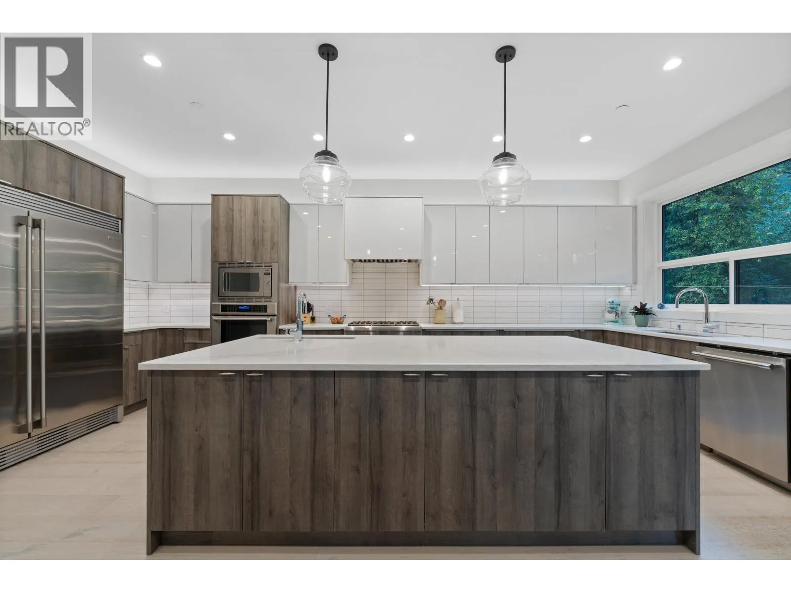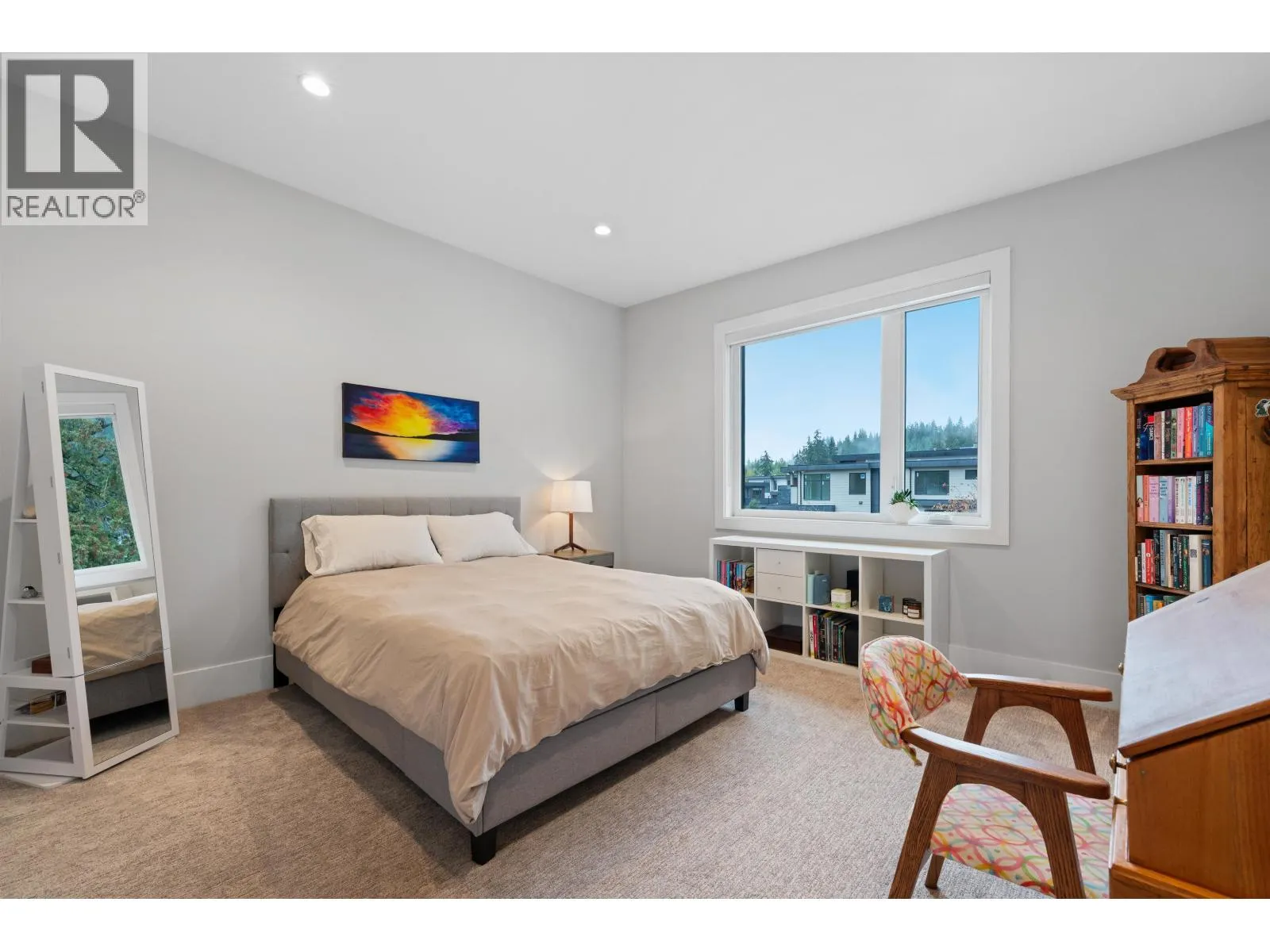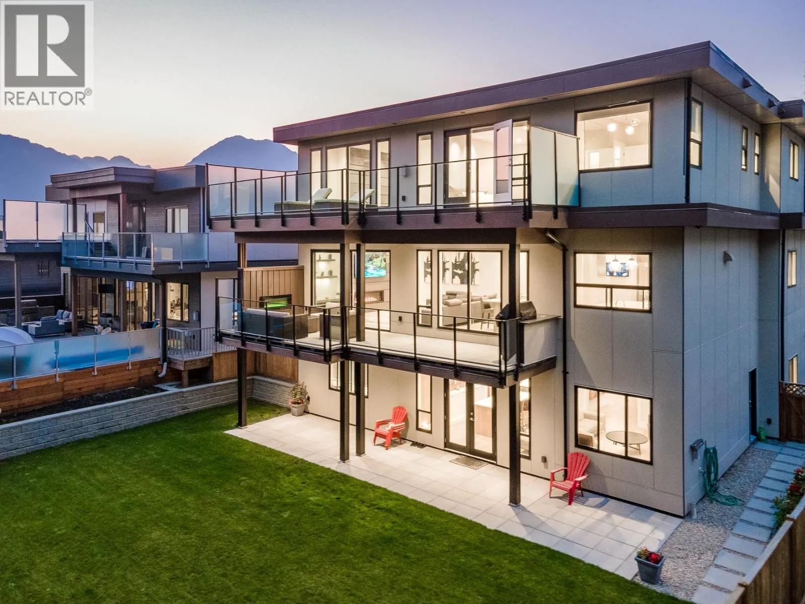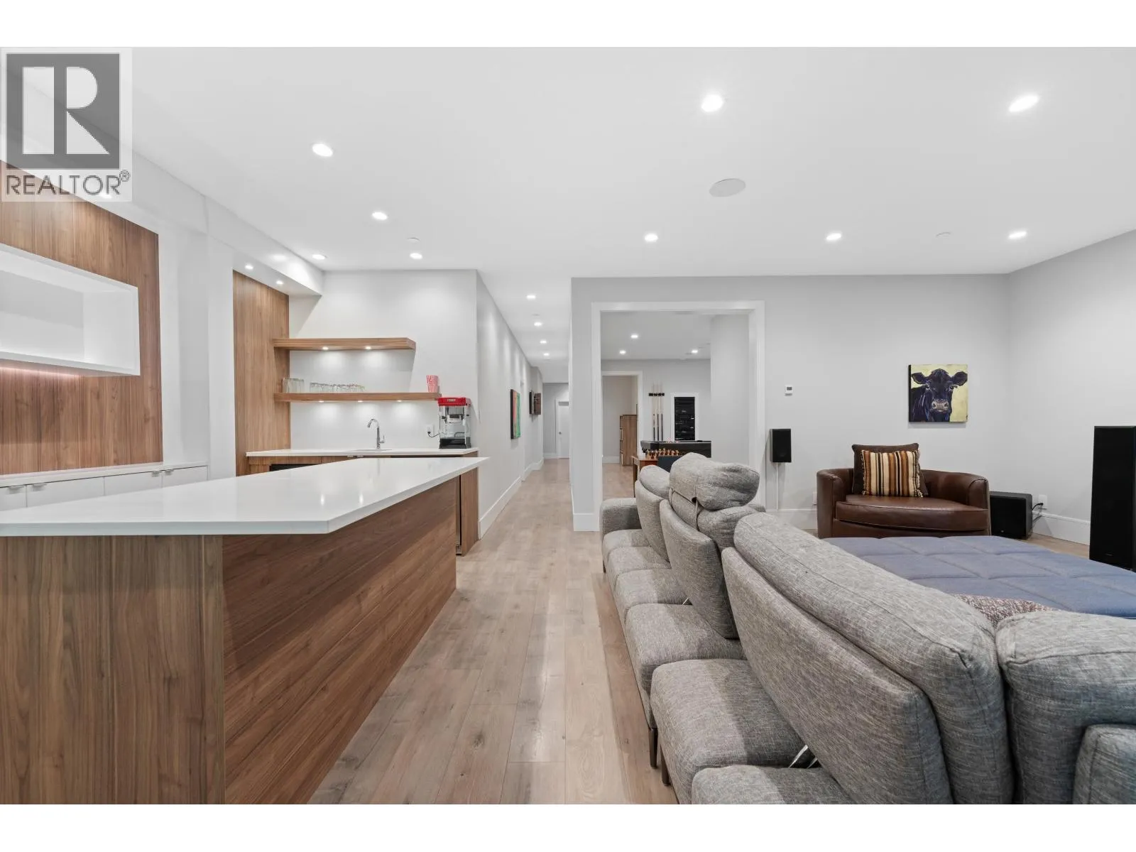 Experience luxury living in University Highlands! Set on a private 1/3-acre lot backing onto Ring Creek, this high-end home offers 4 bedrooms up, each with its own ensuite, including a spectacular primary with a dream walk-in closet and private deck. The main level features a second primary with sitting area, plus a chef-inspired kitchen with dual islands, a soaring 2-story custom concrete fireplace, and spacious dining. The lower level is built for entertaining with an included home theater system,gym area, games room, wet bar with dishwasher, steam shower, and abundant storage. Radiant floor heating, Control4 automation, and direct bike-in/bike-out access to world-class trails enhance the lifestyle. A legal 2-bedroom suite adds flexibility and income potential. (id:27476)