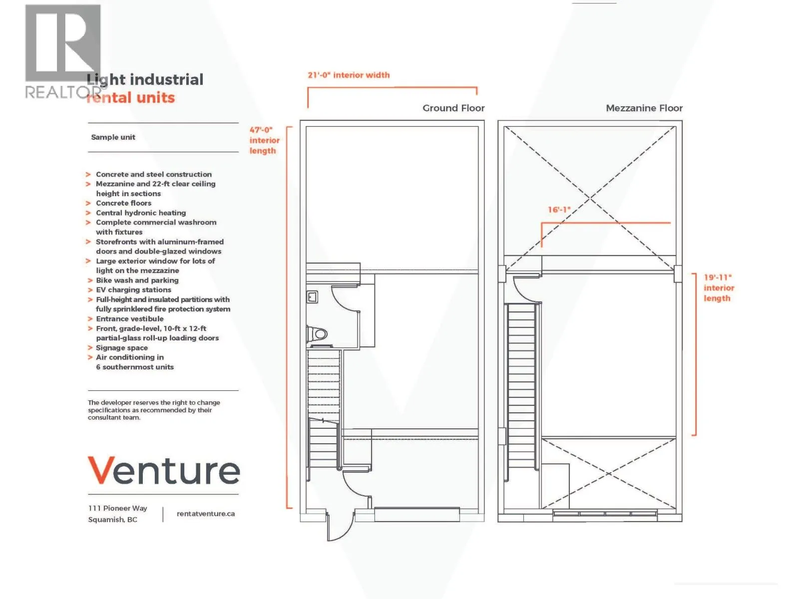 Venture Squamish is a new light industrial/mixed use complex in a central location in the Squamish Business Park offering industrial/office units from 1209 to 5628 square feet. High quality concrete construction, excellent transportation logistics, excellent neighbourhood anchors and a functional base unit demise make for a great opportunity to relocate or start your business in this tight light industrial market. Great value at $5000 per month for a limited time period. Call for more information. (id:27476)