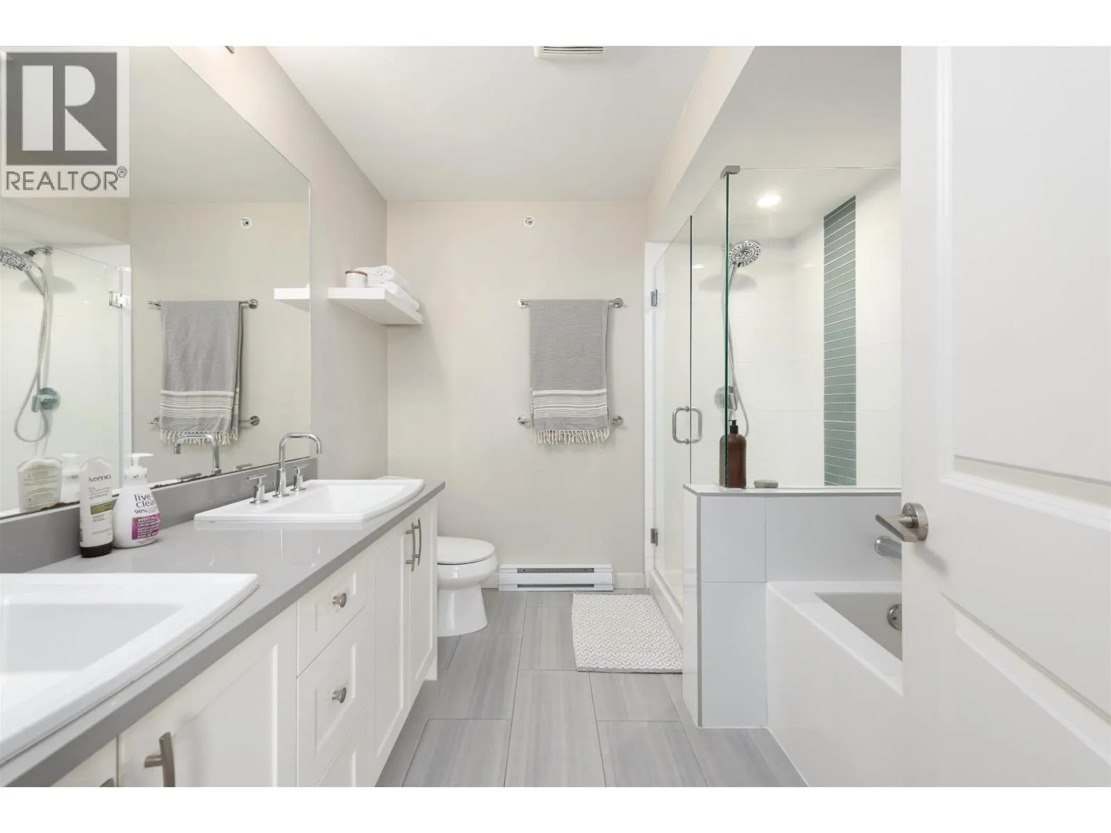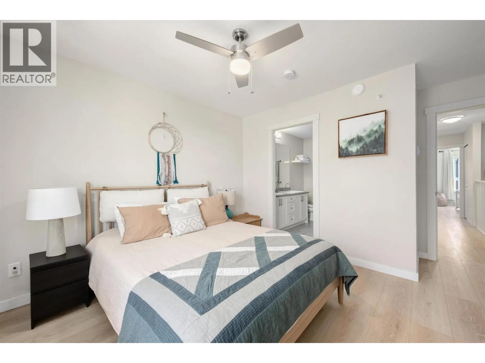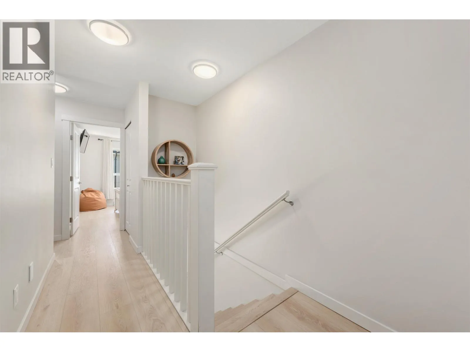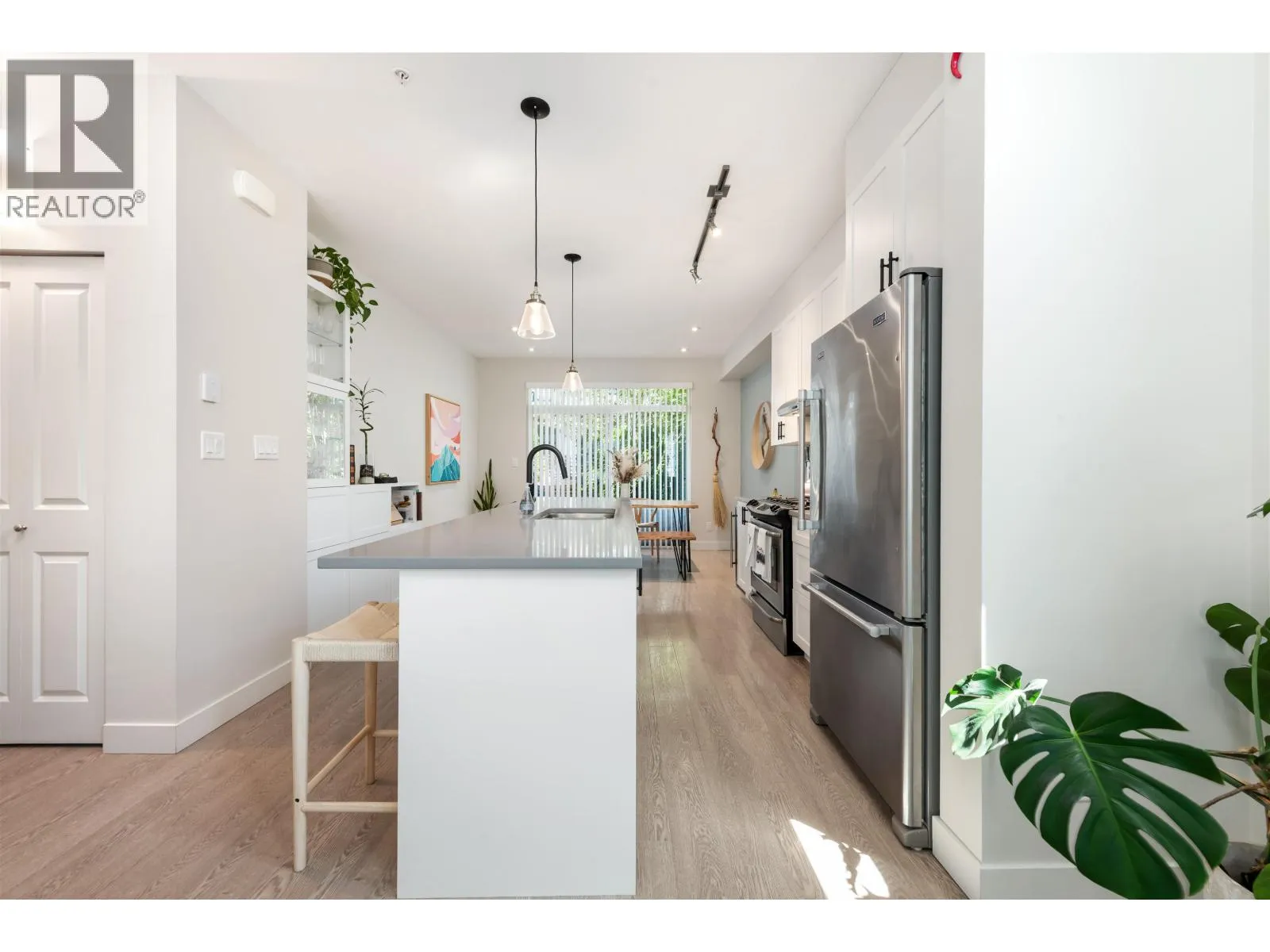 Bright end-unit townhome in the sought-after Eaglewind community. The open concept main floor features 9 ft ceilings, oversized windows, and a natural gas fireplace. The kitchen is equipped with quartz counters, stainless steel appliances, updated lighting, and a large island with seating for four. From the dining area, step directly into your private, fully fenced backyard, ideal for kids, pets, or outdoor entertaining. Upstairs offers three bedrooms, two bathrooms, and full-size laundry. The spacious primary bedroom includes an ensuite with heated tile floors, and an oversized tub and shower. A huge tandem garage provides ample space for parking and storage. (id:27476)