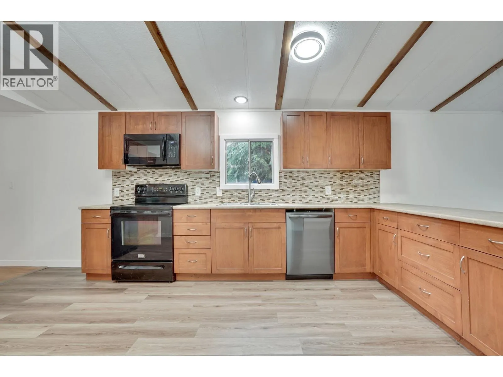 Affordable 3 bedroom home (1232 sqft) with open floor plan that feels like a modern rancher style home. Substantially upgraded; flooring, windows, lighting, fixtures, plumbing, electrical, kitchen, bathroom, insulation and drywall. More recently, new high efficiency WETT inspected wood stove and full-size appliances, new roof 2022 with warranty. Includes custom built sauna & gym area, lovely yard with new turf & large patio area, detached office/workshop/garden shed/storage, parking for 2 vehicles plus RV parking, includes 2-year supply of cut firewood. A great place to call home and a great alternative to condo living. (id:27476)