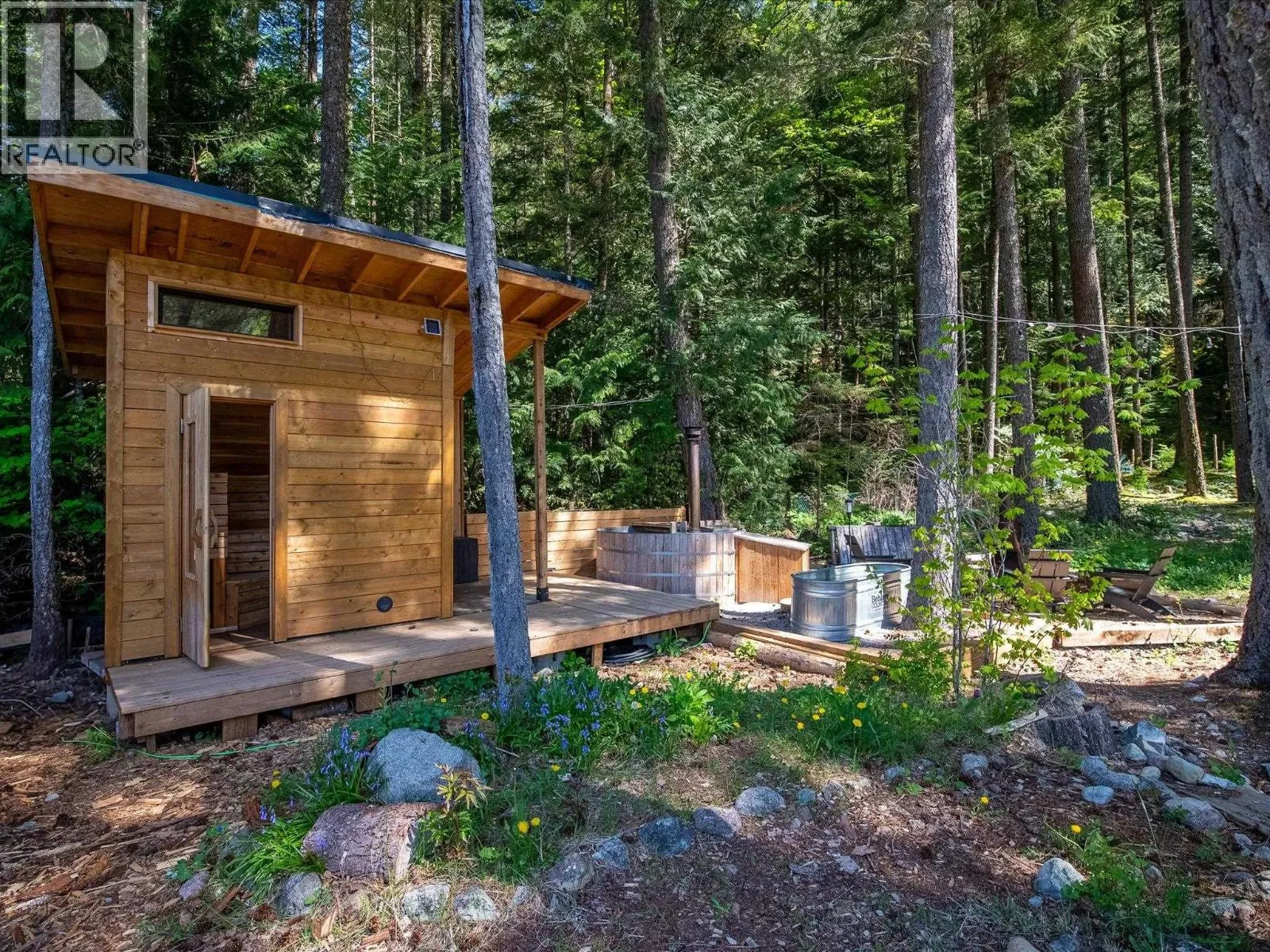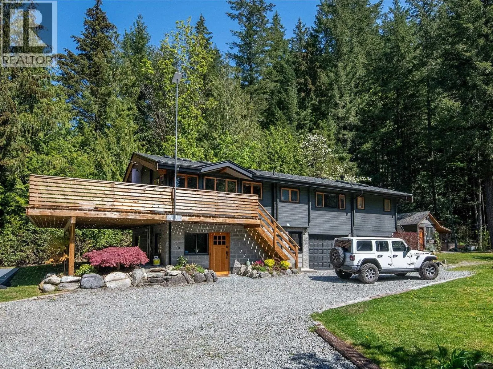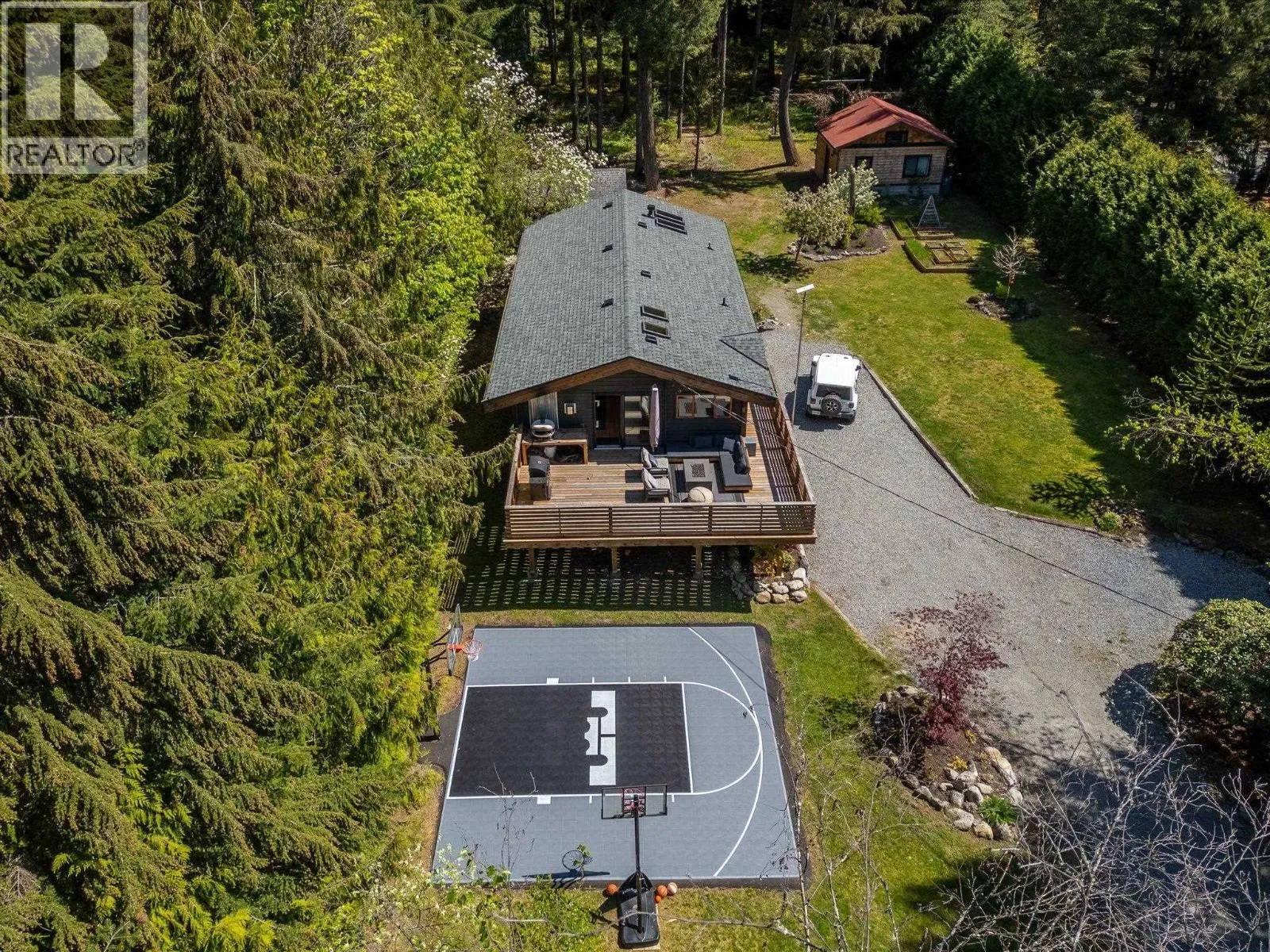 Scandinavian-inspired retreat in Paradise Valley! This renovated 5-bed, 3-bath Pan-Abode home sits on a fully fenced 36,721 square ft lot with a detached studio cabin. Enjoy a forest spa with wood-fired sauna, hot tub, cold plunge & firepit overlooking natural rock formations and mature natural forest. Entertain on the large sun drenched front deck. Recent updates include roof, vibrant landscaping with maple trees & garden beds. Kids will love exploring in the untouched forested backyard-rare for this area. Inside, the light-filled primary ensuite features a freestanding tub. Detached rental suite, 2-car garage, sports court, raised garden beds & root cellar, and detached work space complete this special property. Peaceful, private close to lakes, rivers, recreation and just a few minutes to Squamish. (id:27476)